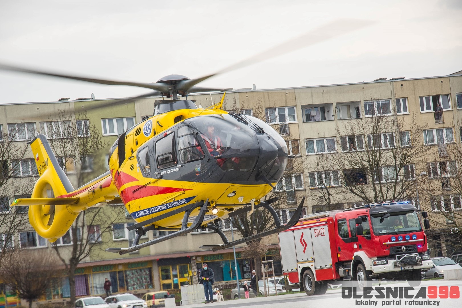 Dziś około godziny 14:20, Służba Dyżurna Stanowiska Kierowania Komendanta Powiatowego w Oleśnicy odebrała zgłoszenie dotyczące potrzeby wsparcia systemu Państwowe Ratownictwo Medyczne przy izolowanym zdarzeniu medycznym. Z uwagi na brak wolnych zespołów Ratownictwa Medycznego w pobliżu miasta, do pomocy starszej osobie bez funkcji życiowych, jaką ujawniono w jednym z mieszkań przy ulicy 11 Listopada, zadysponowane zostały dwa zastępy z oleśnickiej Jednostki Ratowniczo- Gaśniczej. Do zdarzenia zadysponowany został również śmigłowiec Lotniczego Pogotowia Ratunkowego – Ratownik13.