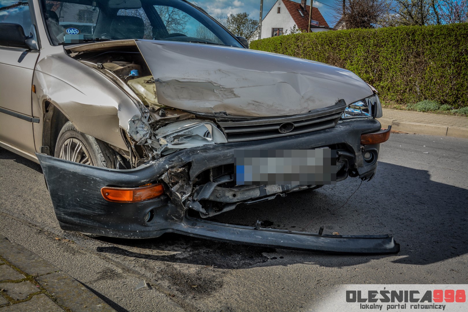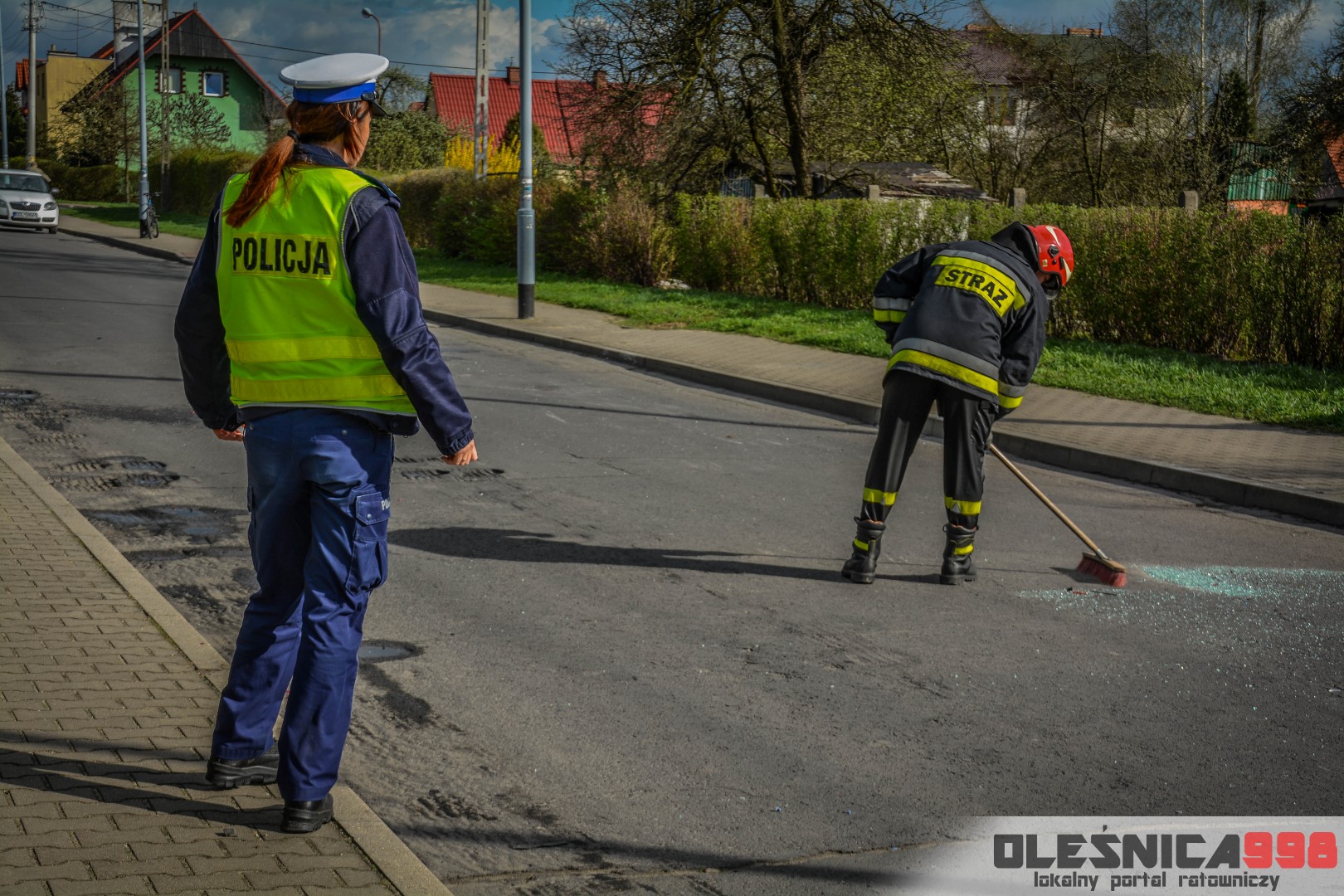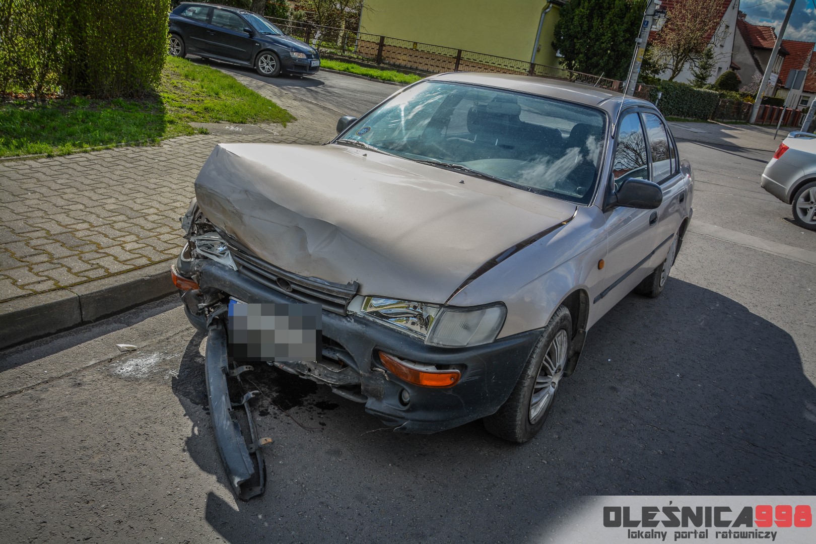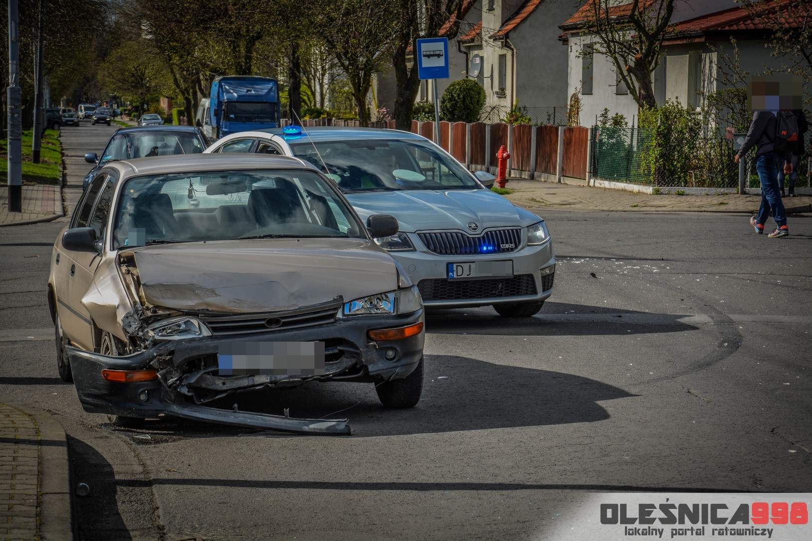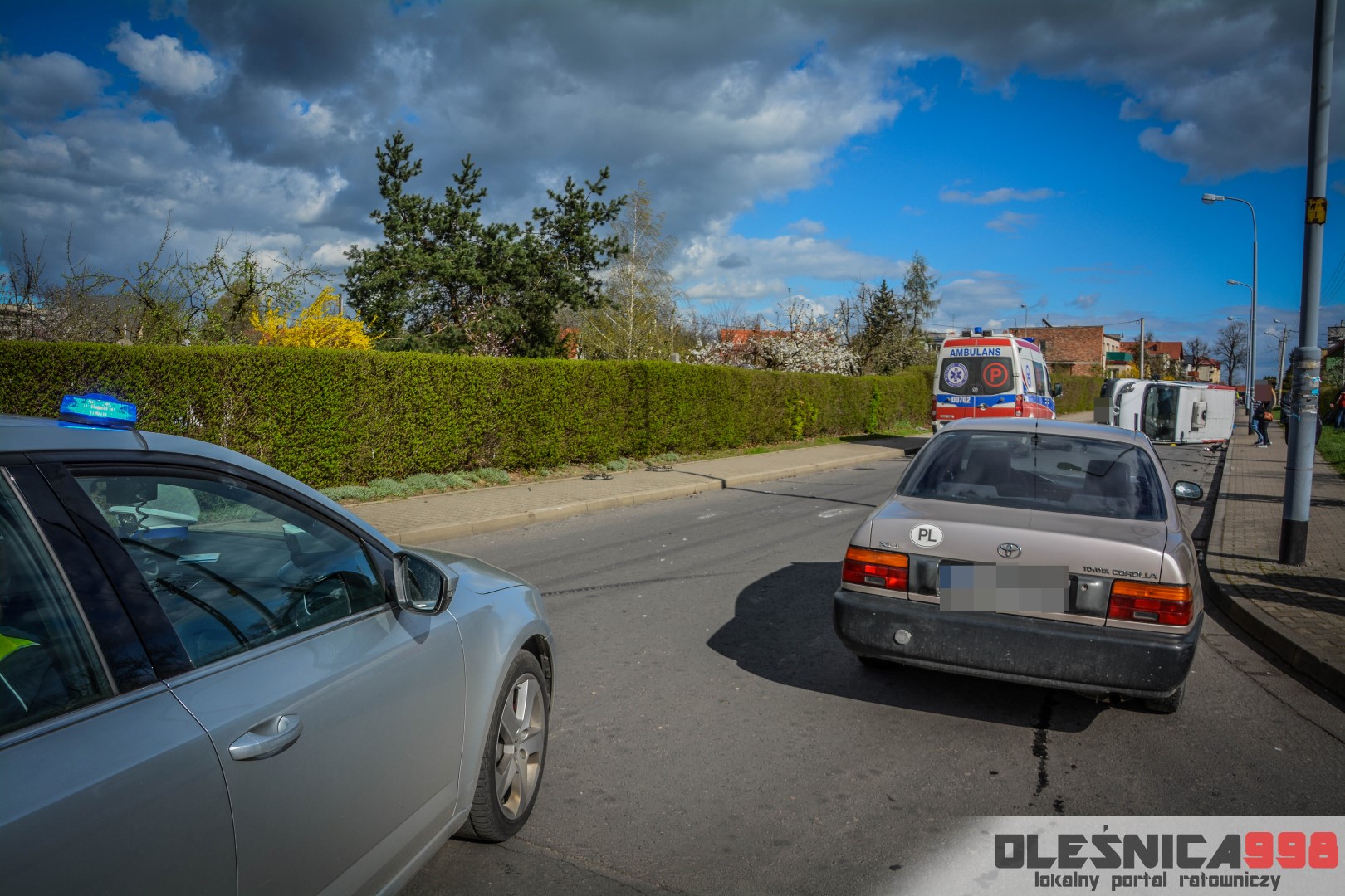 Około godziny 15:30 Oficer Dyżurny Komendy Powiatowej Policji w Oleśnicy otrzymał zgłoszenie o zdarzeniu drogowym z udziałem samochodu osobowego oraz dostawczego, na skrzyżowaniu ulicy Armii Krajowej i Krzywej. Na miejsce niezwłocznie zadysponował on patrol Policjantów Wydziału Ruchu Drogowego a także powiadomił Pogotowie Ratunkowe, które również zjawiło się na miejscu.