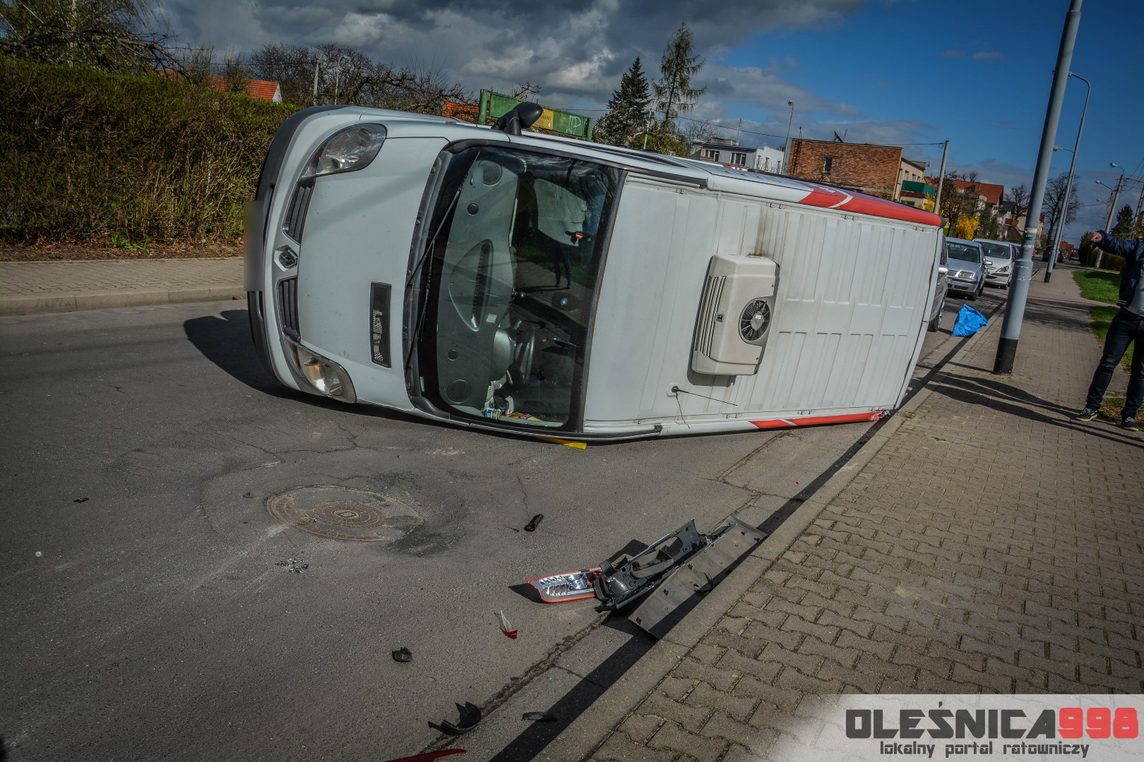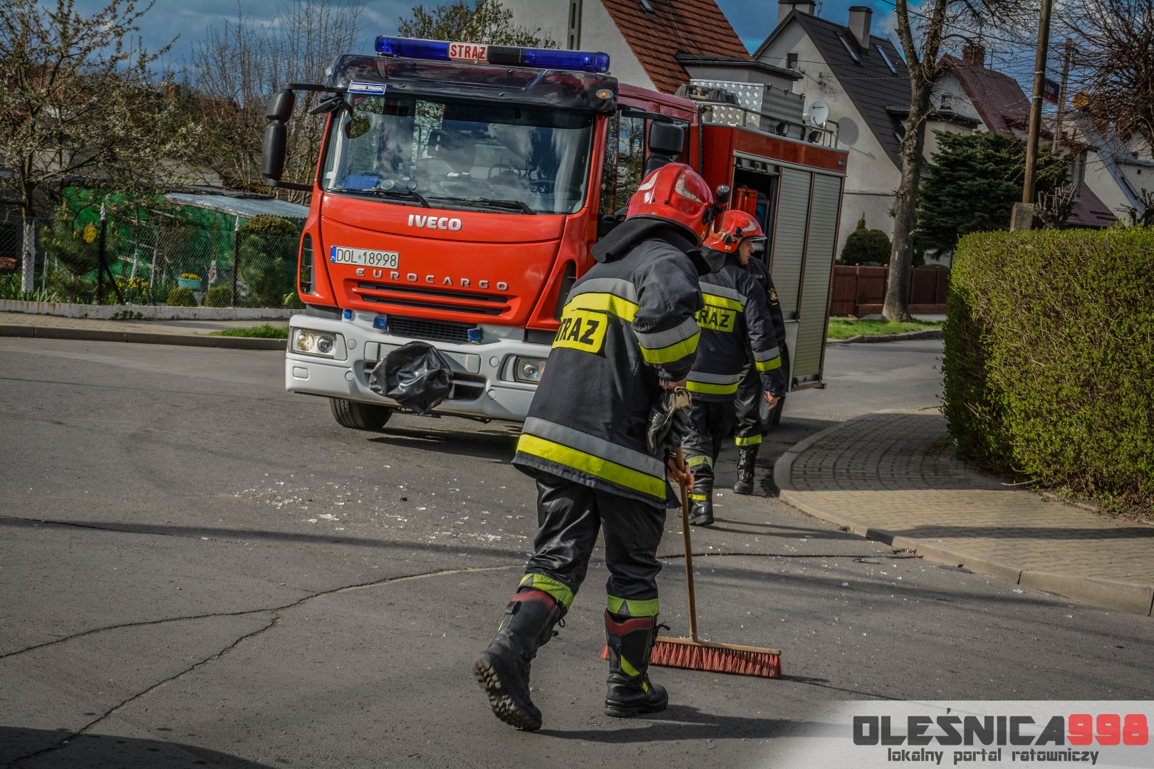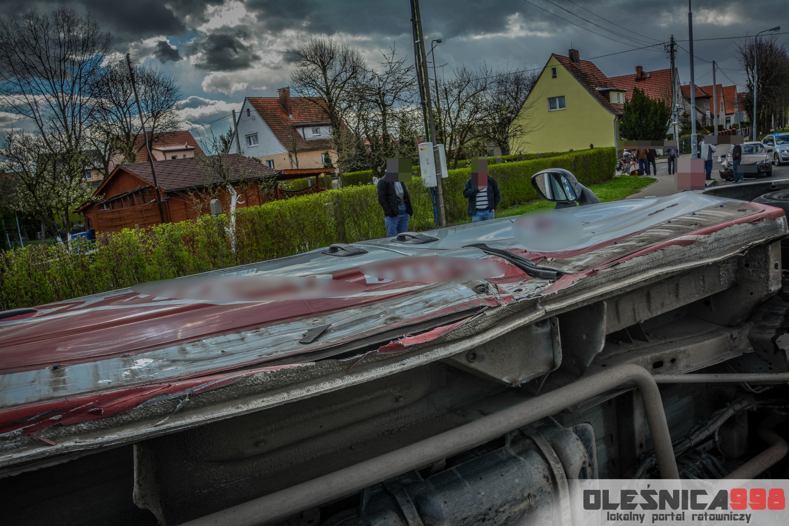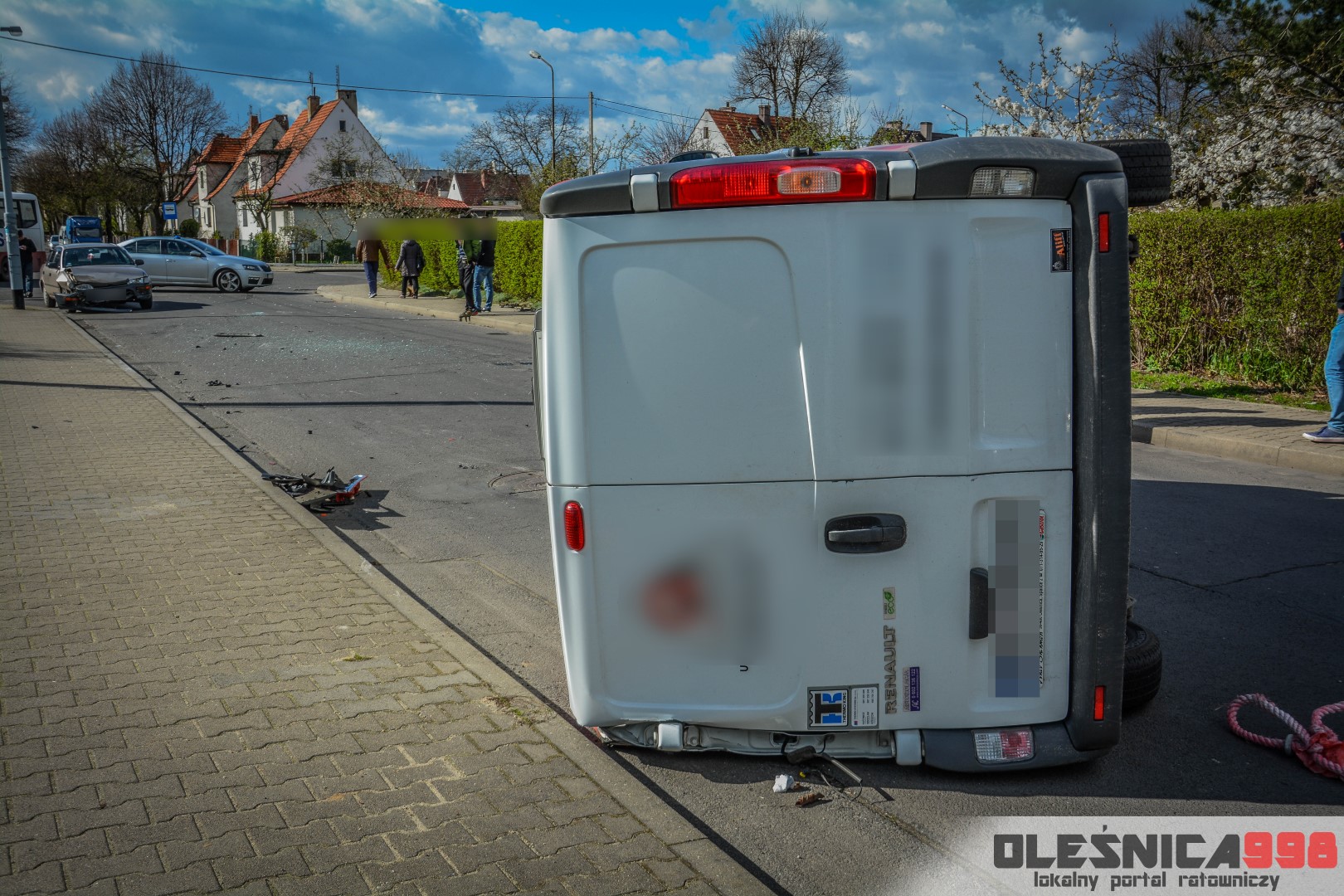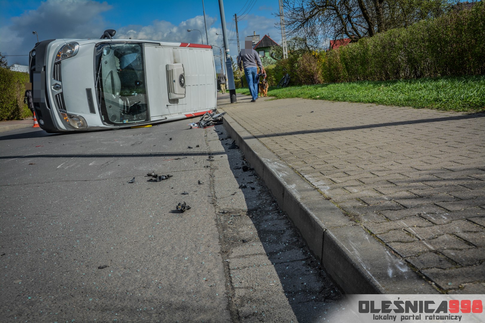 Około godziny 15:30 Oficer Dyżurny Komendy Powiatowej Policji w Oleśnicy otrzymał zgłoszenie o zdarzeniu drogowym z udziałem samochodu osobowego oraz dostawczego, na skrzyżowaniu ulicy Armii Krajowej i Krzywej. Na miejsce niezwłocznie zadysponował on patrol Policjantów Wydziału Ruchu Drogowego a także powiadomił Pogotowie Ratunkowe, które również zjawiło się na miejscu.