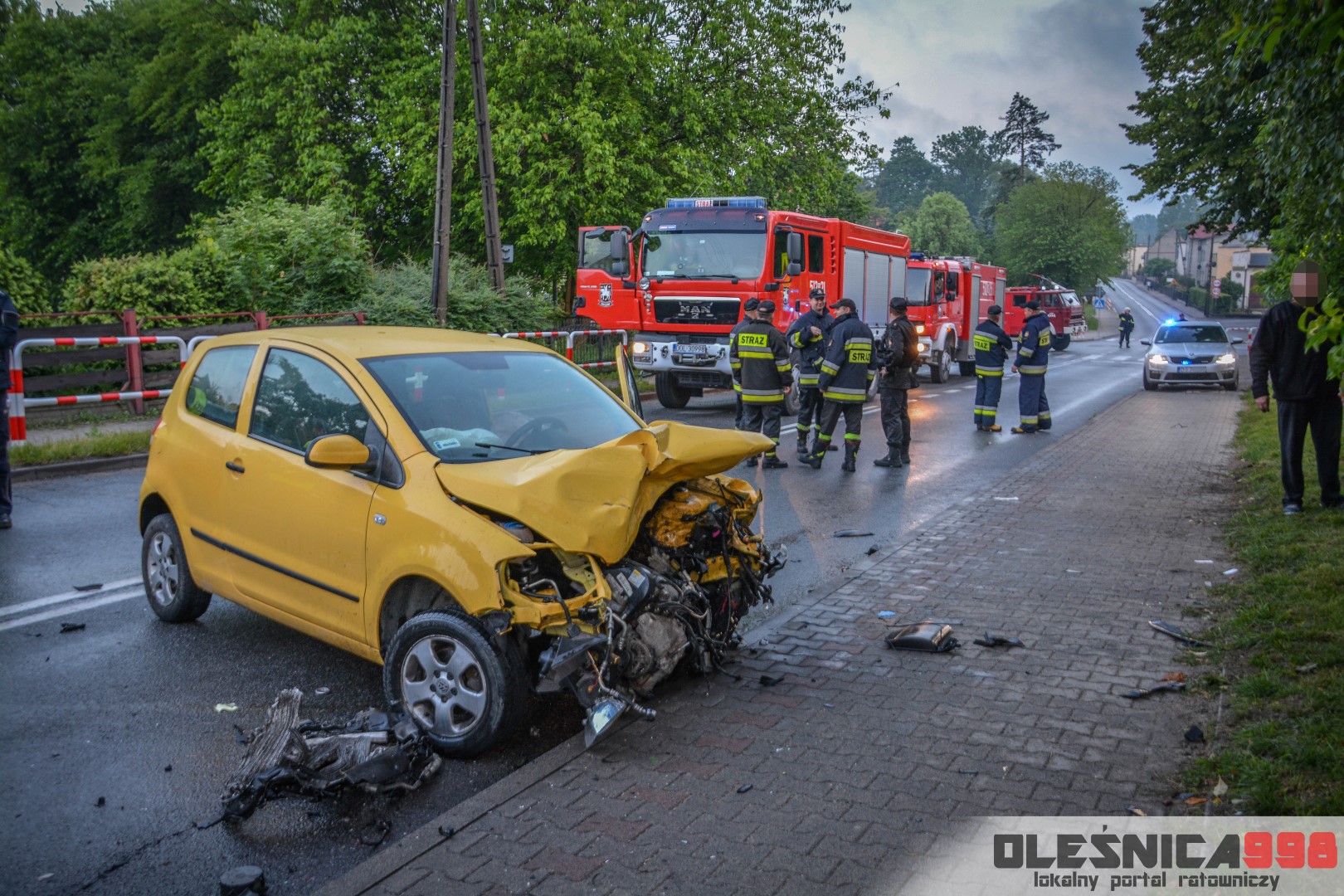 Pierwszy zastęp Strażaków, który dotarł na miejsce zdarzenia stwierdził, że w wypadku udział biorą dwa pojazdy marki Opel Meriva oraz Volkswagen Fox, pomiędzy którymi doszło do czołowego zderzenia. W pierwszym z pojazdów podróżowała pięcioosobowa rodzina wraz z dwójką dzieci. Dwójka dorosłych oraz dzieci odniosły poważne obrażenia. Do 10-letniego chłopca przyleciał śmigłowiec LPR z Wrocławia. Ten doznał urazu czaszkowo-mózgowego oraz urazu jamy brzusznej. Trafił do jednego z wrocławskich szpitali.