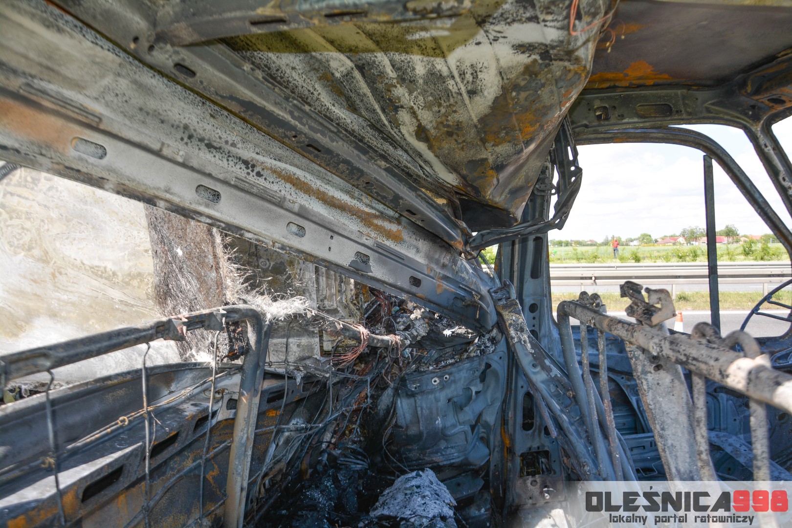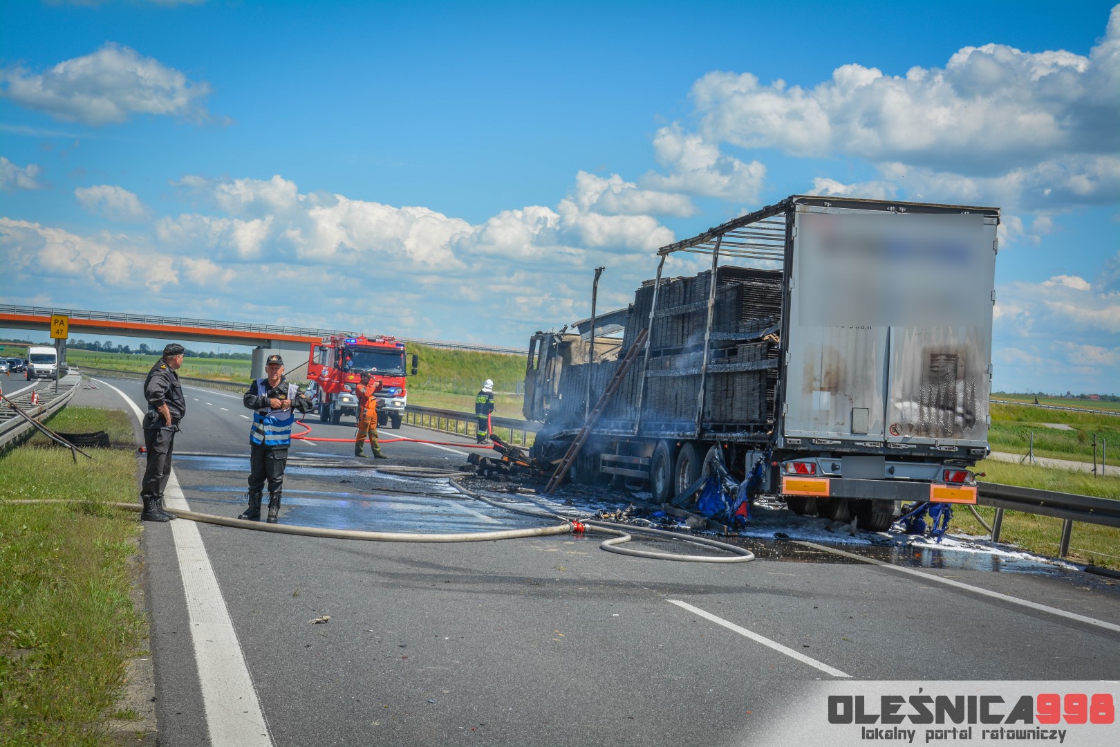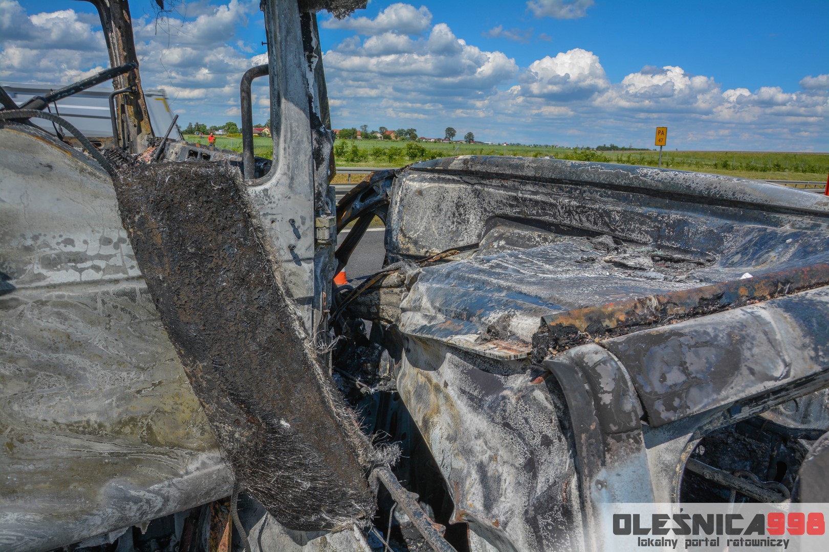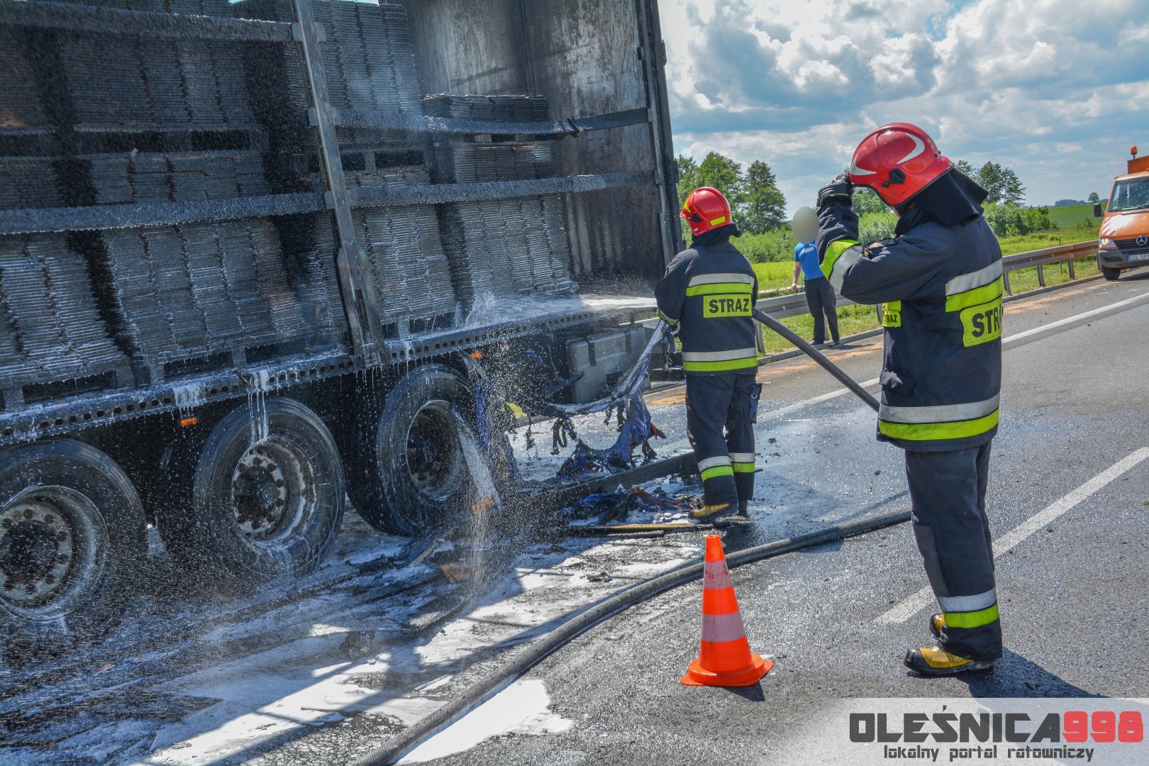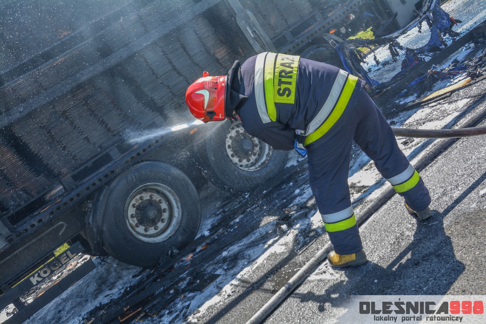 W trakcie dojazdu okazało się jednak, że w wyniku zderzenia oba pojazdy stanęły w ogniu. W momencie przybycia pierwszego zastępu na miejsce zdarzenia, oba samochody były całkowicie objęte ogniem. Początkowo zachodziła również obawa, że w zmiażdżonym busie mogli znajdować się ludzie. Ta informacja na szczęście nie potwierdziła się.