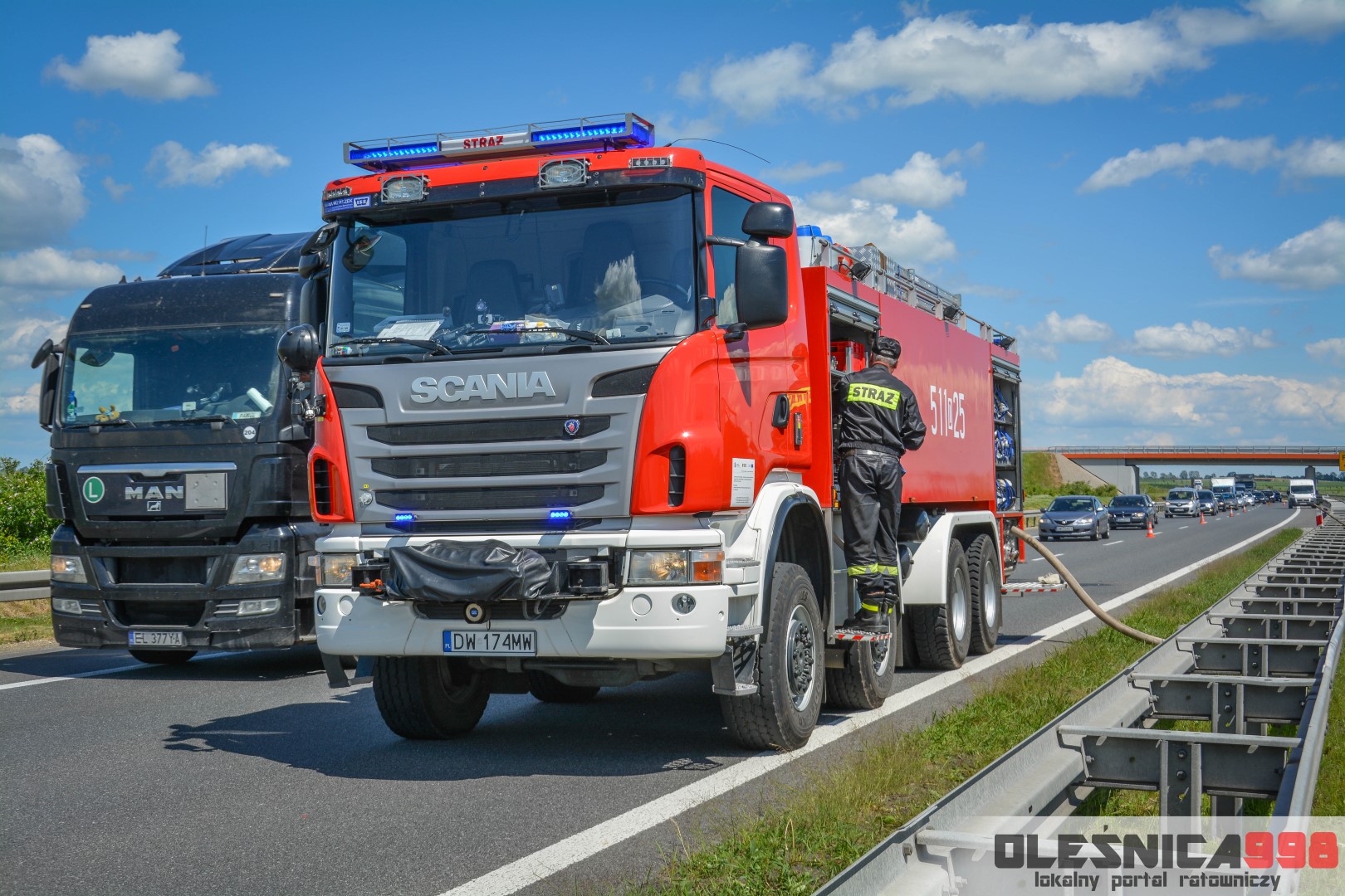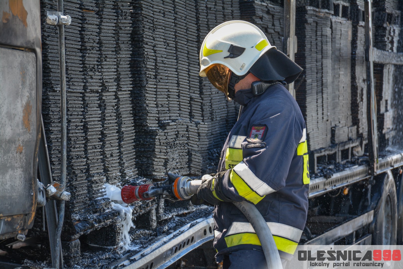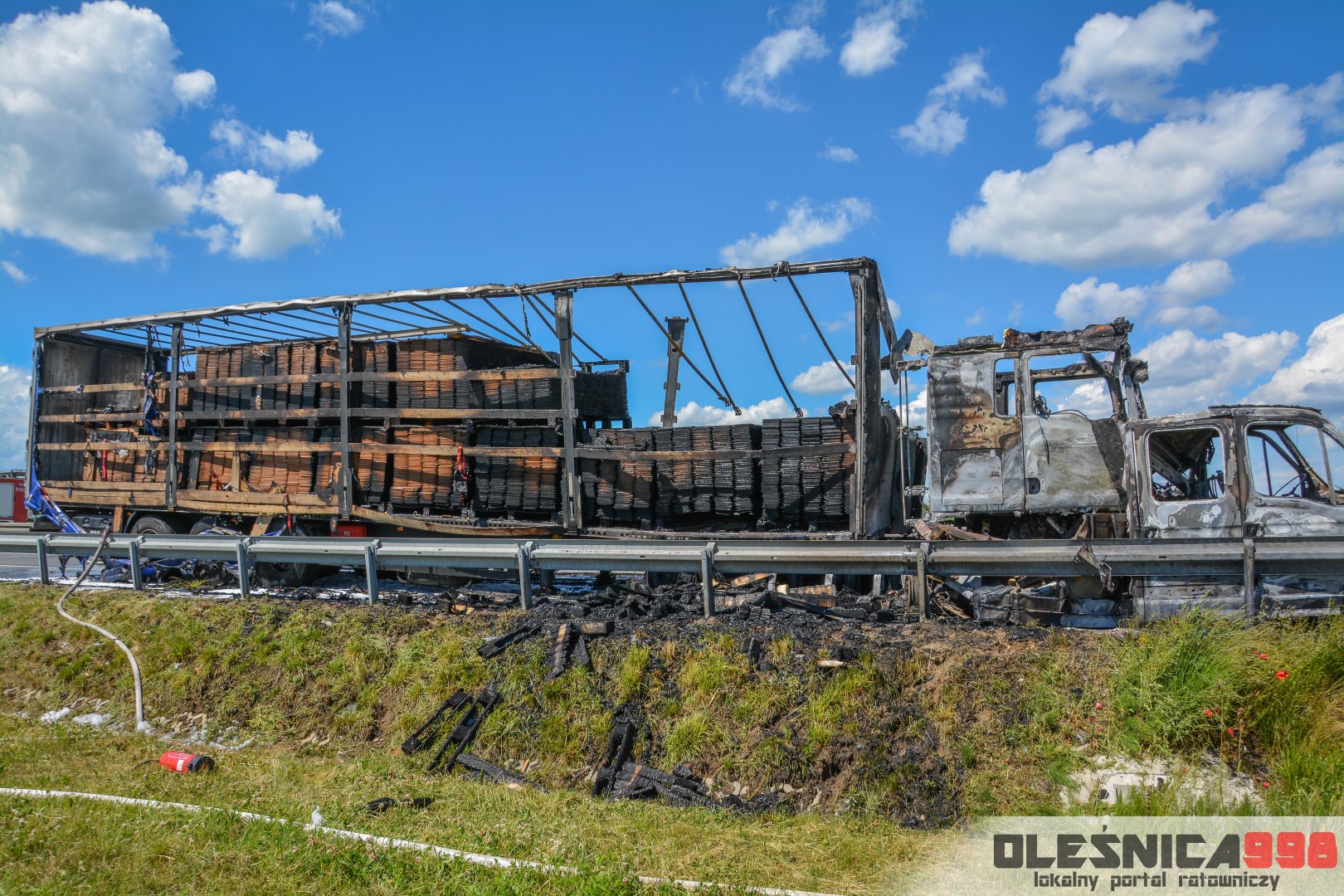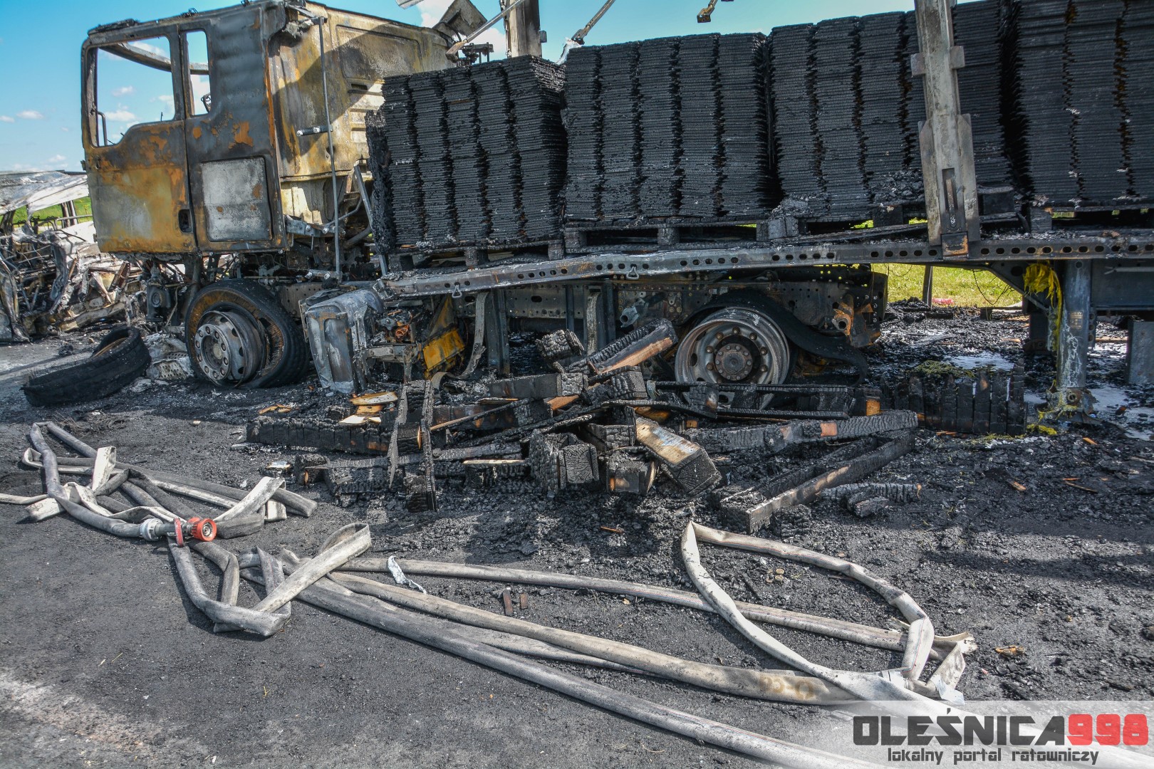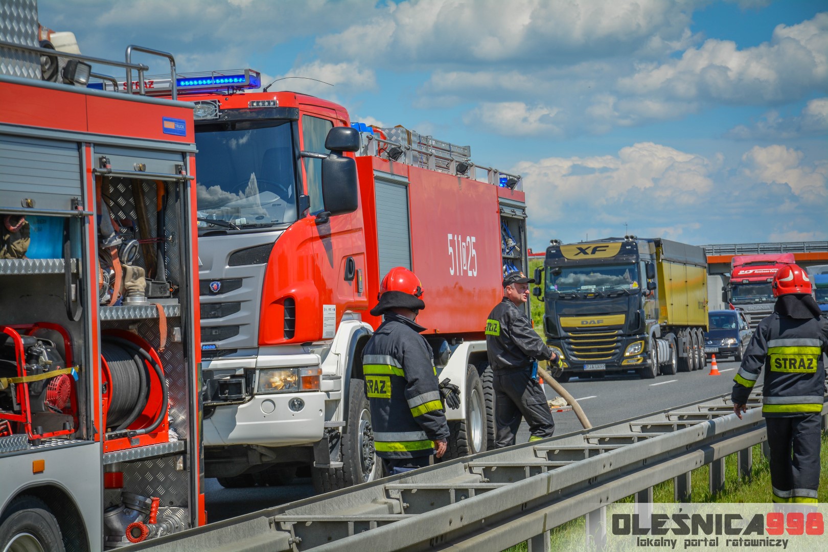 W trakcie dojazdu okazało się jednak, że w wyniku zderzenia oba pojazdy stanęły w ogniu. W momencie przybycia pierwszego zastępu na miejsce zdarzenia, oba samochody były całkowicie objęte ogniem. Początkowo zachodziła również obawa, że w zmiażdżonym busie mogli znajdować się ludzie. Ta informacja na szczęście nie potwierdziła się.