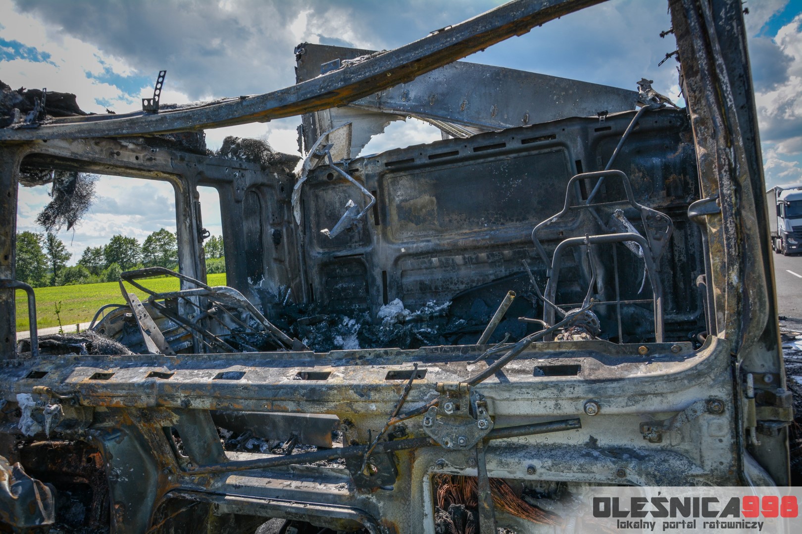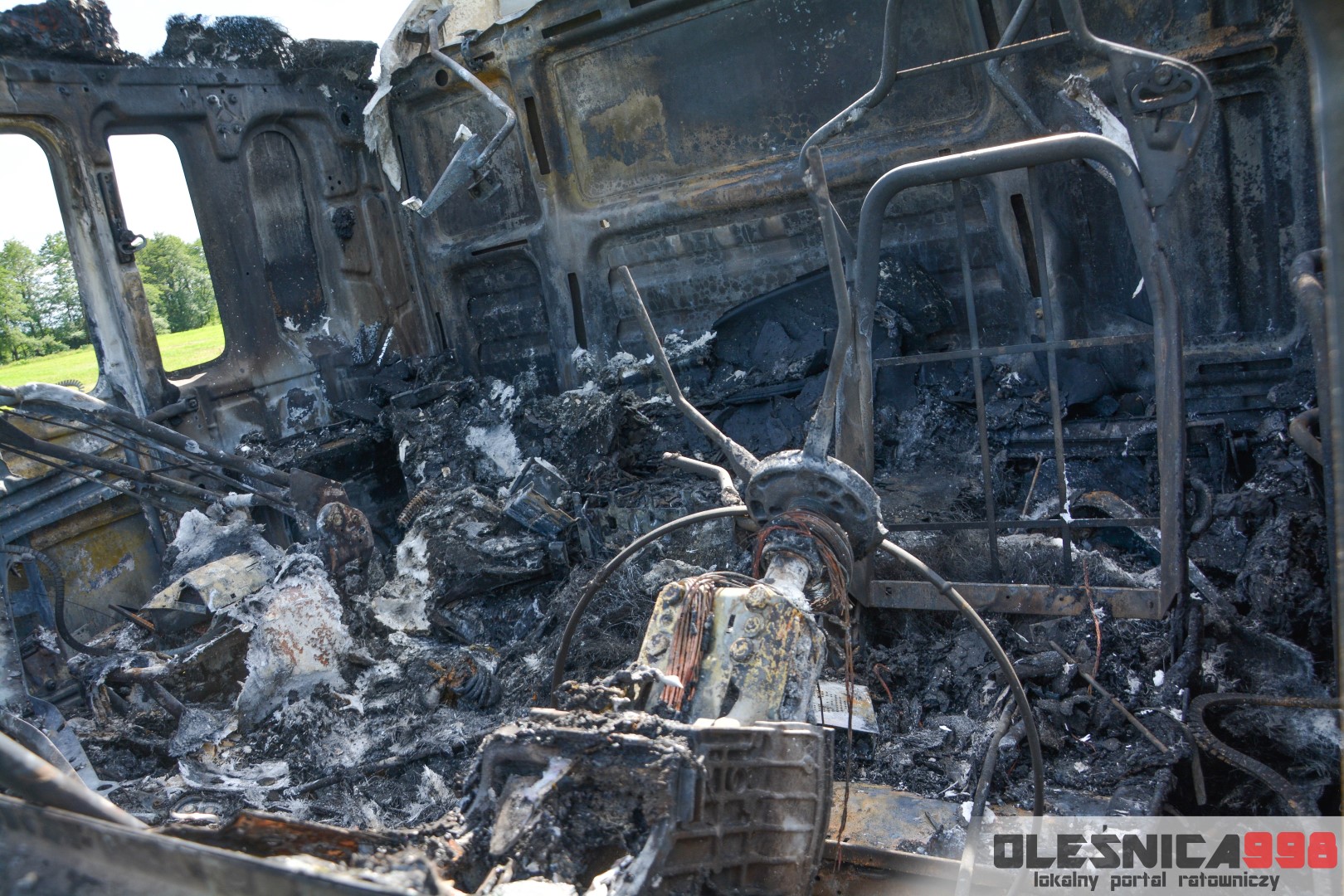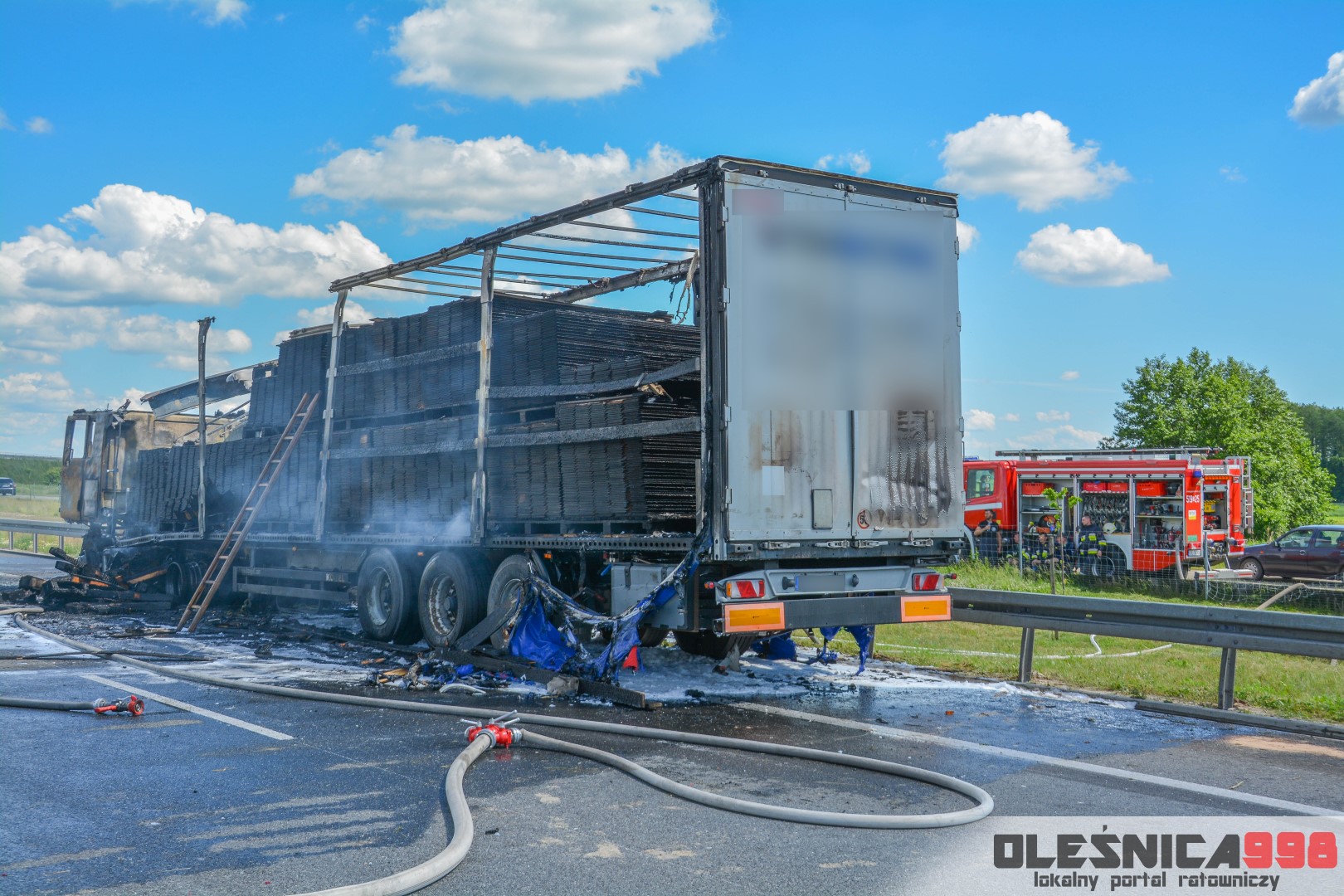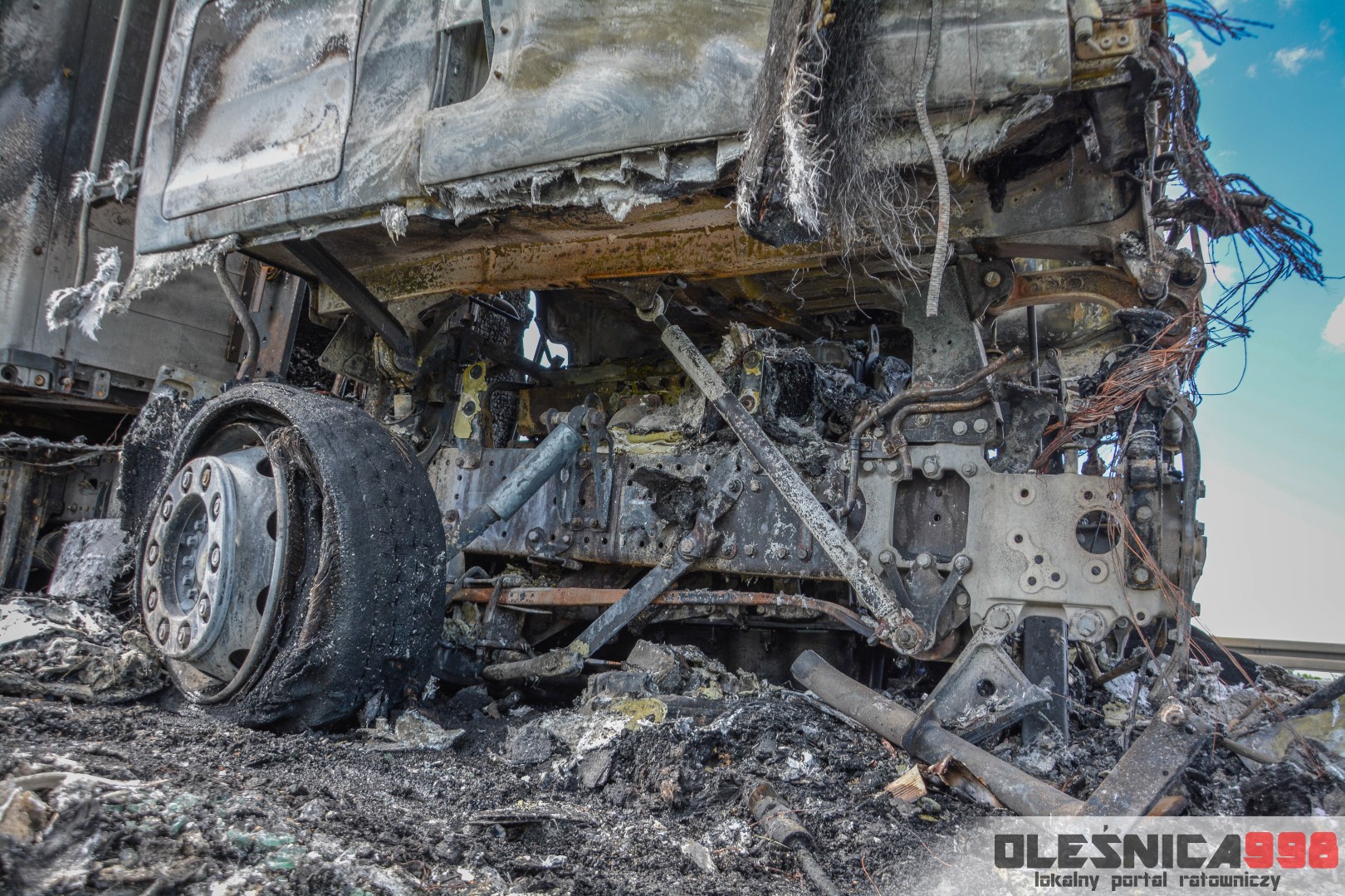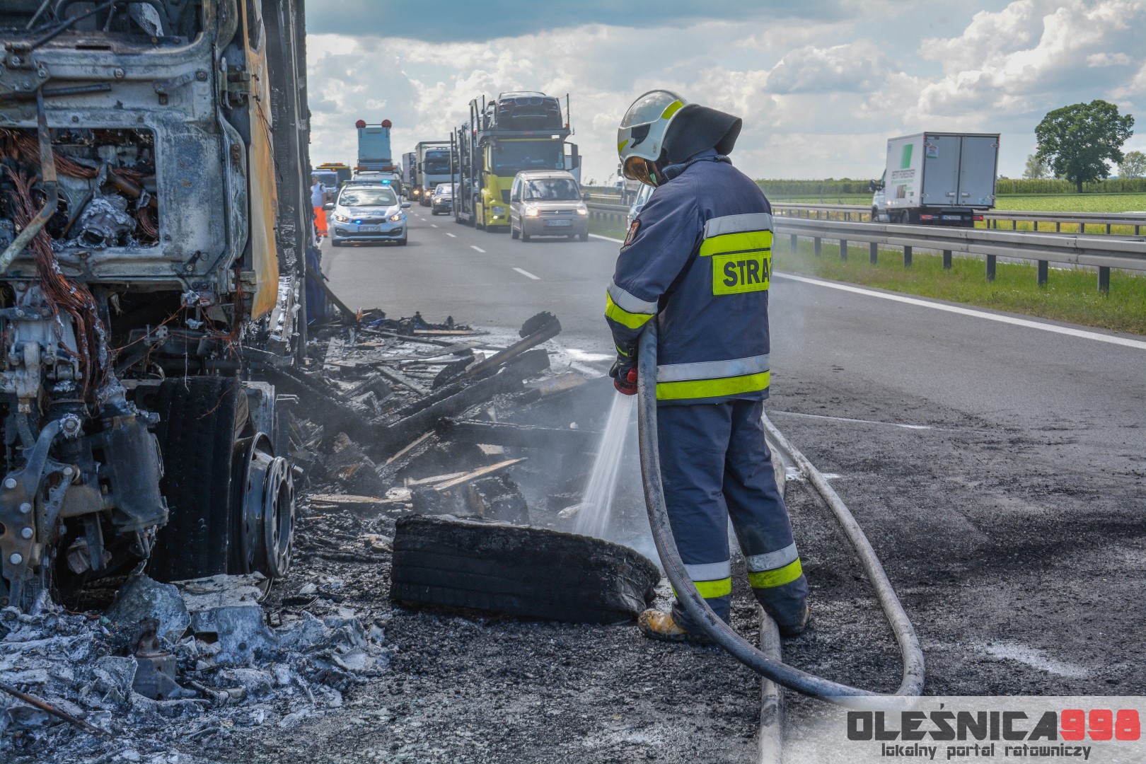 W trakcie dojazdu okazało się jednak, że w wyniku zderzenia oba pojazdy stanęły w ogniu. W momencie przybycia pierwszego zastępu na miejsce zdarzenia, oba samochody były całkowicie objęte ogniem. Początkowo zachodziła również obawa, że w zmiażdżonym busie mogli znajdować się ludzie. Ta informacja na szczęście nie potwierdziła się.