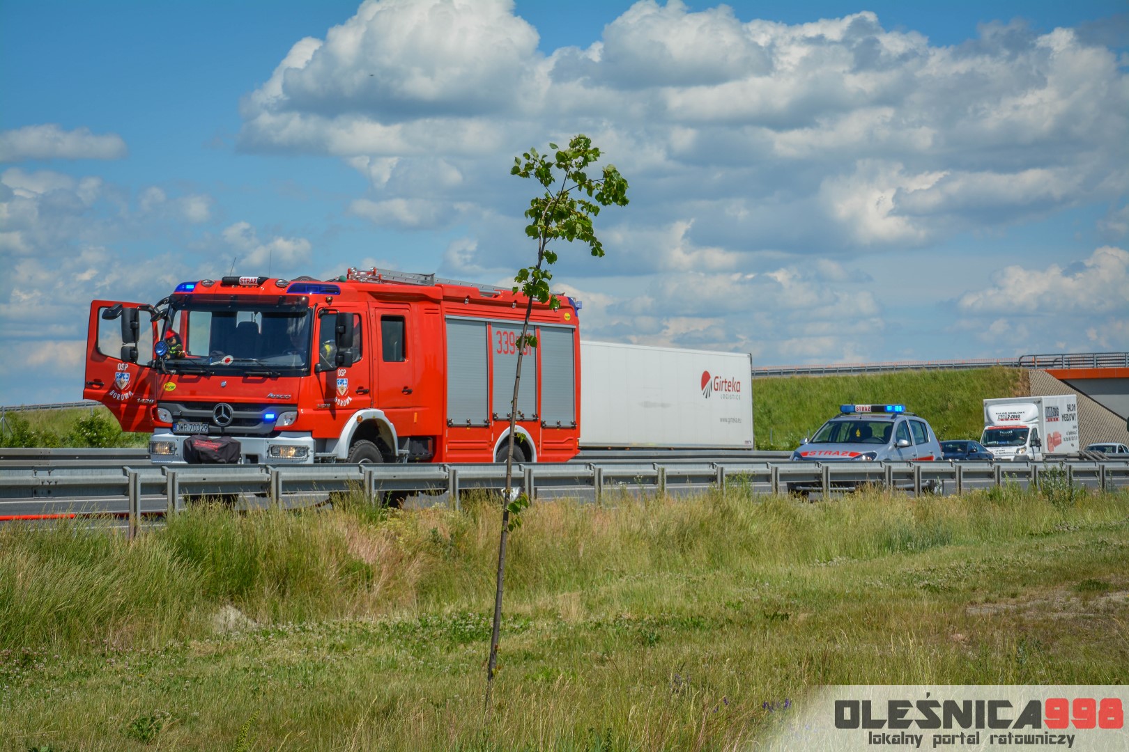 Po rozpoznaniu sytuacji na miejscu, kierujący działaniami ratowniczymi polecił zadysponowanie dodatkowych sił i środków. Wkrótce w akcji ratowniczej brały już udział trzy zastępy z JRG Oleśnica, zastęp JRG 8 Wrocław, zastęp OSP Dobroszyce, zastęp OSP Borowa a także samochód operacyjny Komendy Powiatowej PSP wraz z Komendantem – Jackiem Noworyckim, który przejął dowodzenie nad działaniami.