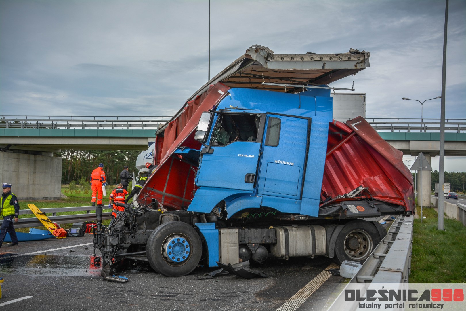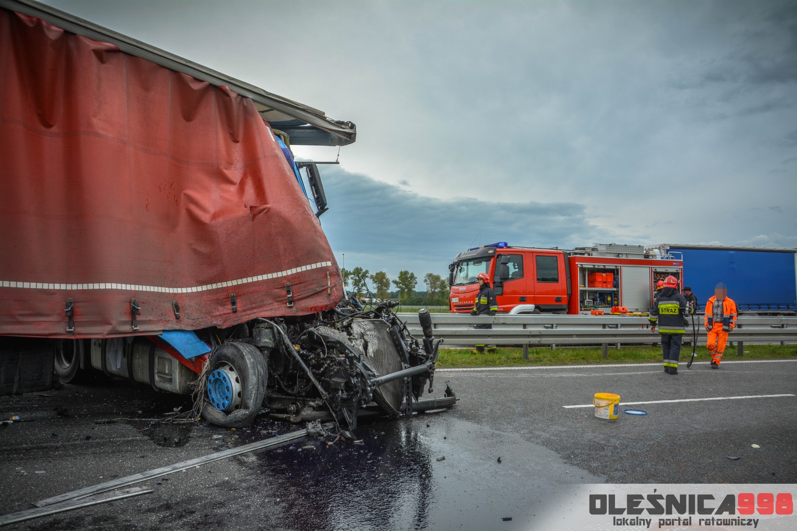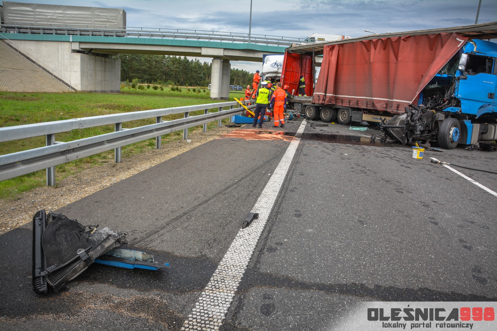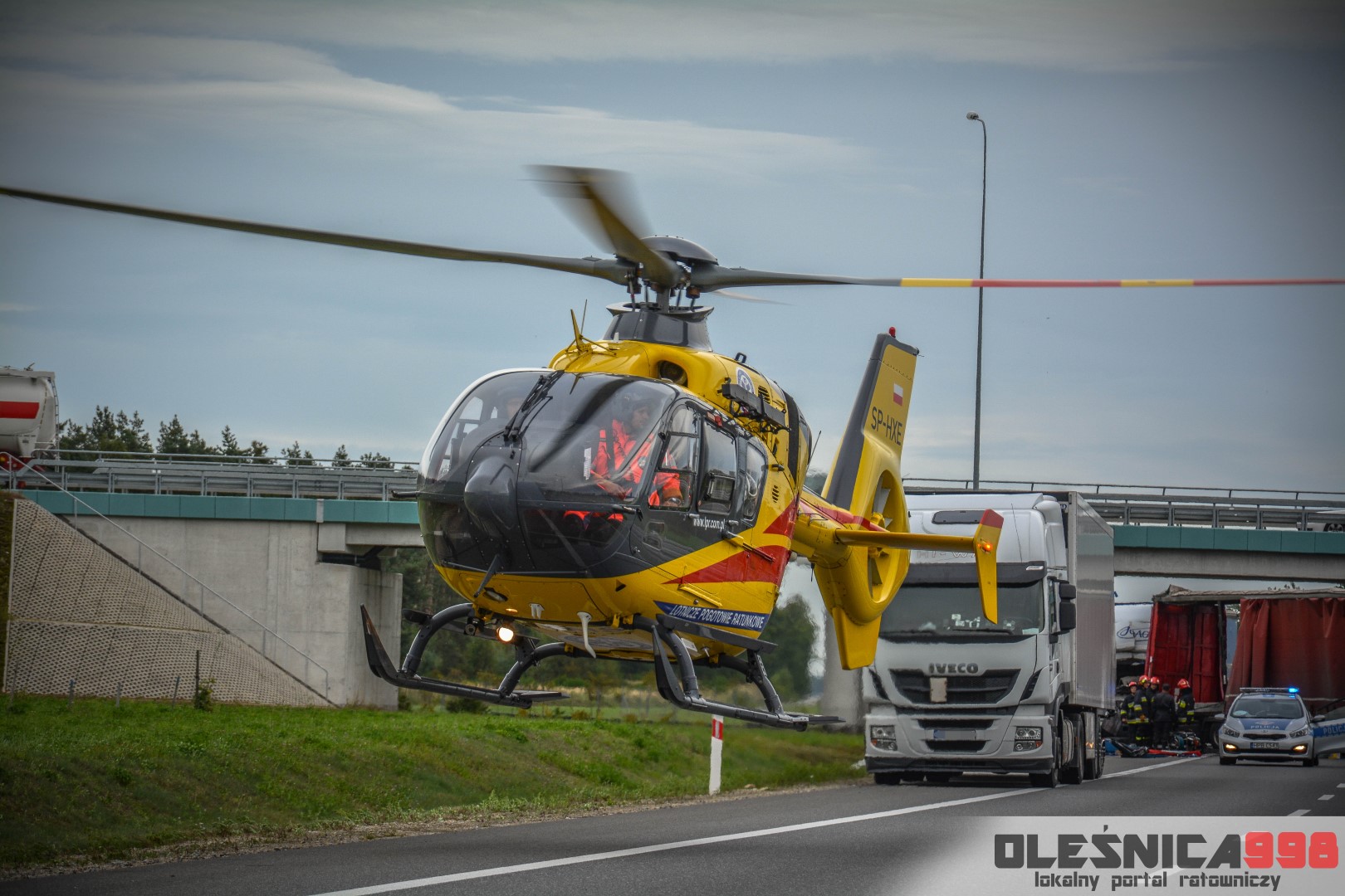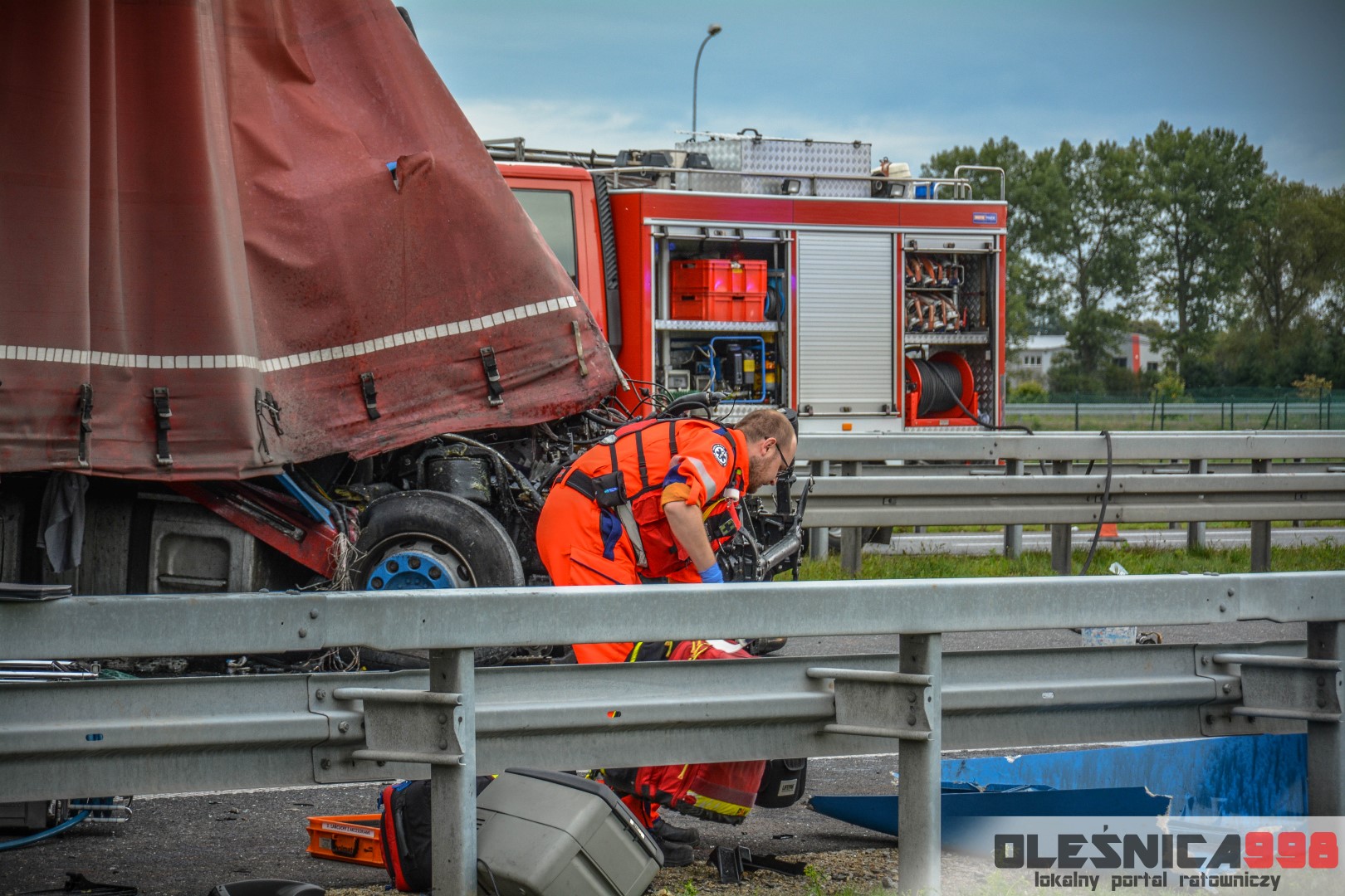 Dzisiejszego popołudnia, tuż przed godziną 15:30, na 59 kilometrze drogi S8 w kierunku Wrocławia doszło do bardzo poważnego zdarzenia drogowego. Zderzyły się tam trzy samochody ciężarowe. Trzy osoby zostały poszkodowane, z czego jedna z nich zakleszczona wewnątrz rozbitej kabiny. Informację o zdarzeniu odebrały wszystkie lokalne służby, a po chwili do akcji wyruszyły dwa zastępy z JRG Oleśnica, zespół Ratownictwa Medycznego oraz patrol Policji.
