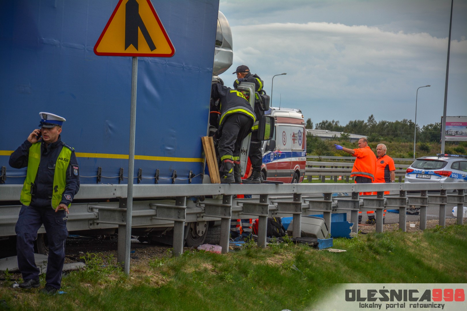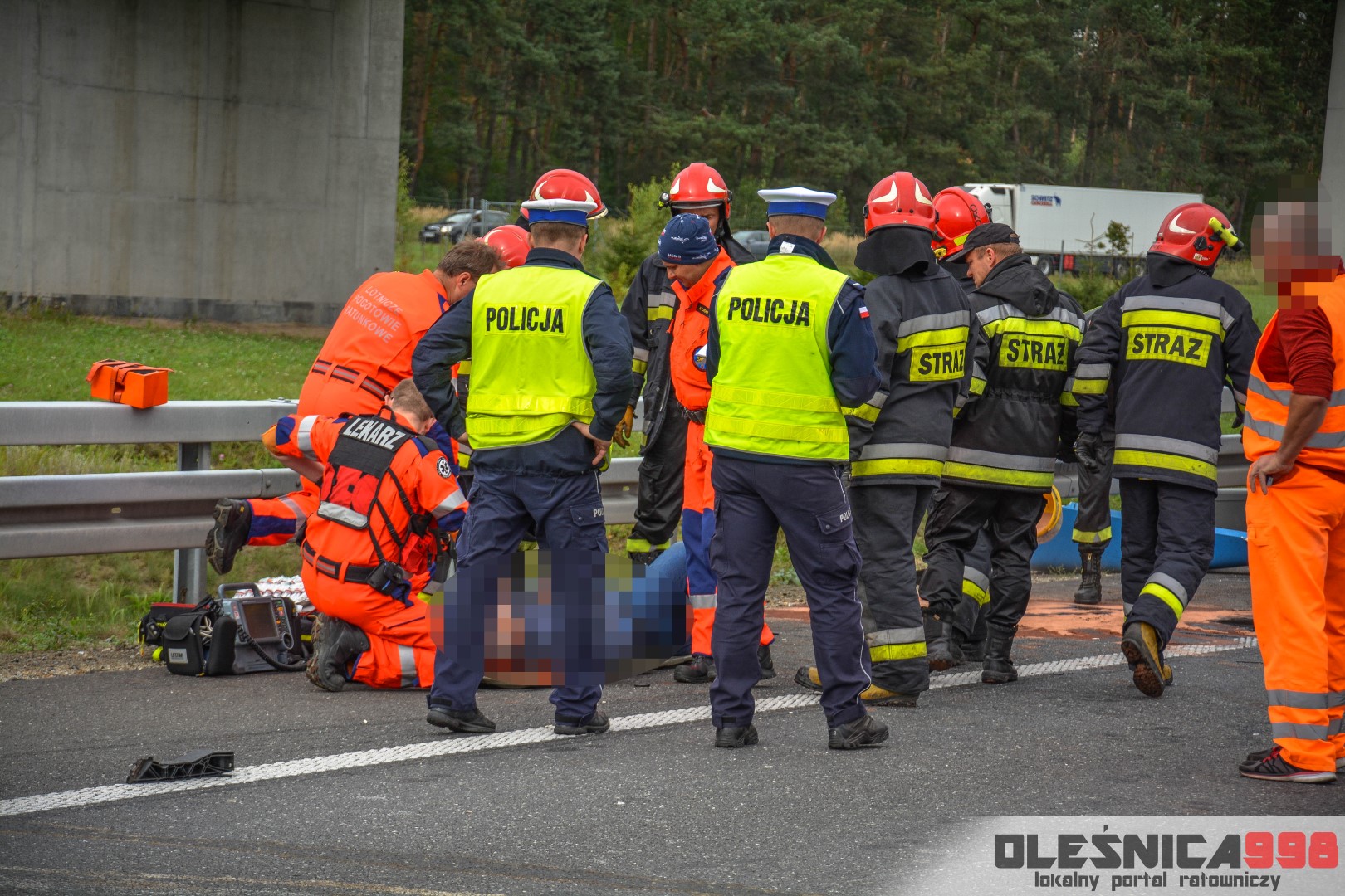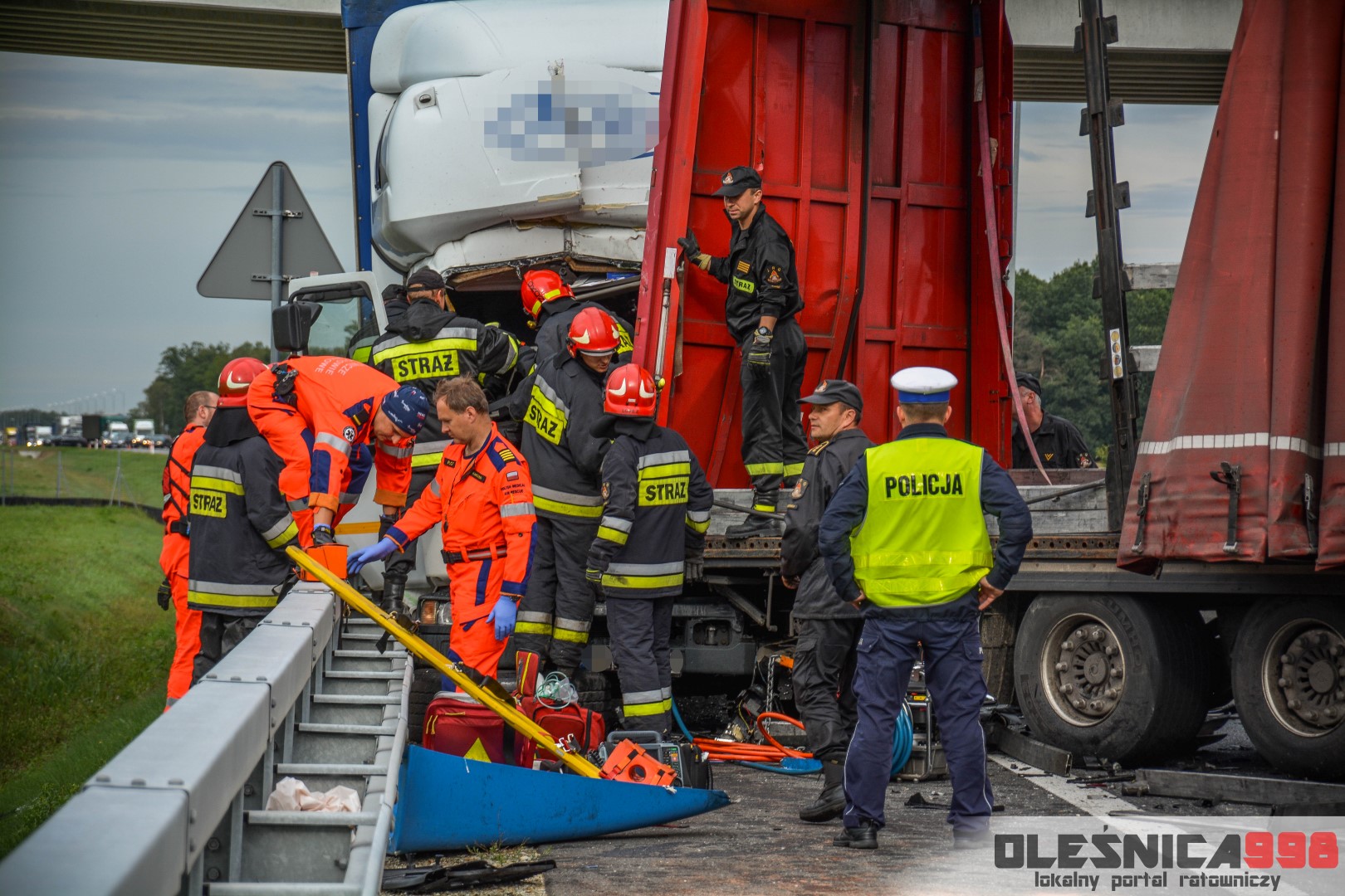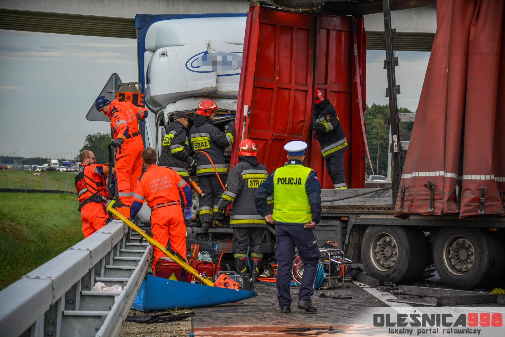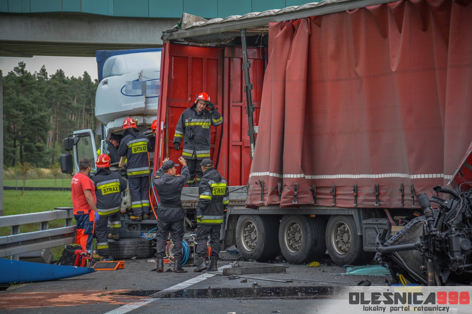 Dzisiejszego popołudnia, tuż przed godziną 15:30, na 59 kilometrze drogi S8 w kierunku Wrocławia doszło do bardzo poważnego zdarzenia drogowego. Zderzyły się tam trzy samochody ciężarowe. Trzy osoby zostały poszkodowane, z czego jedna z nich zakleszczona wewnątrz rozbitej kabiny. Informację o zdarzeniu odebrały wszystkie lokalne służby, a po chwili do akcji wyruszyły dwa zastępy z JRG Oleśnica, zespół Ratownictwa Medycznego oraz patrol Policji.
