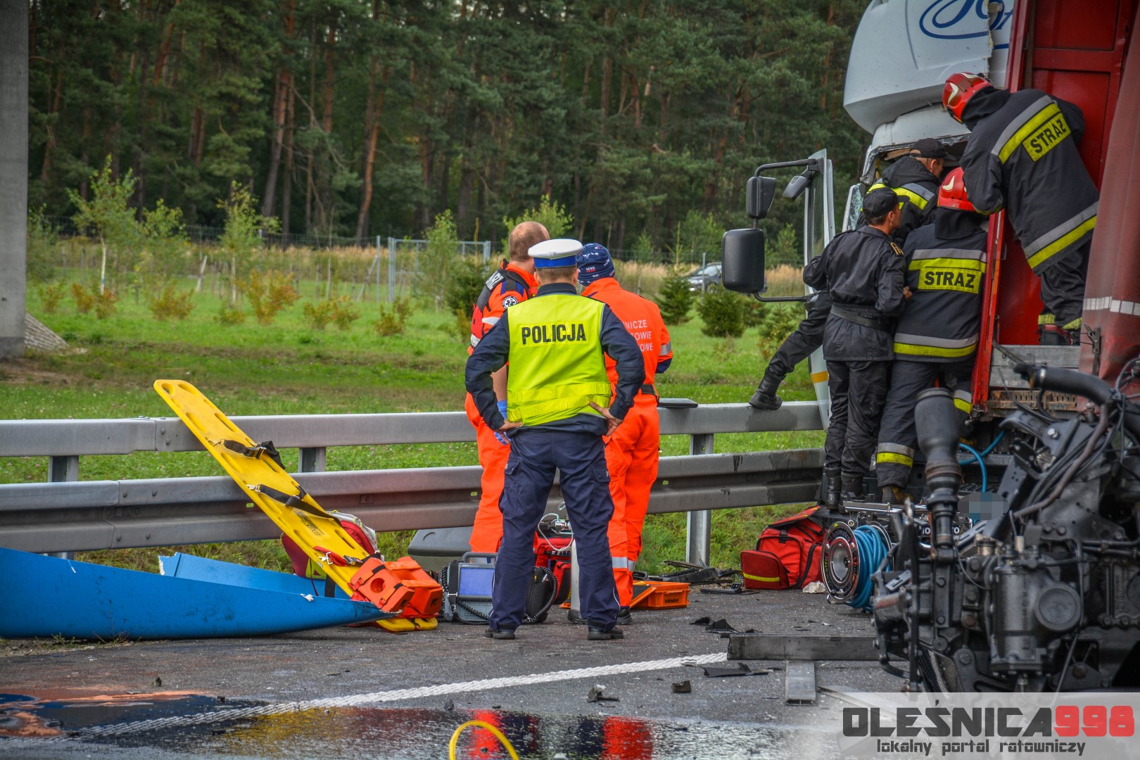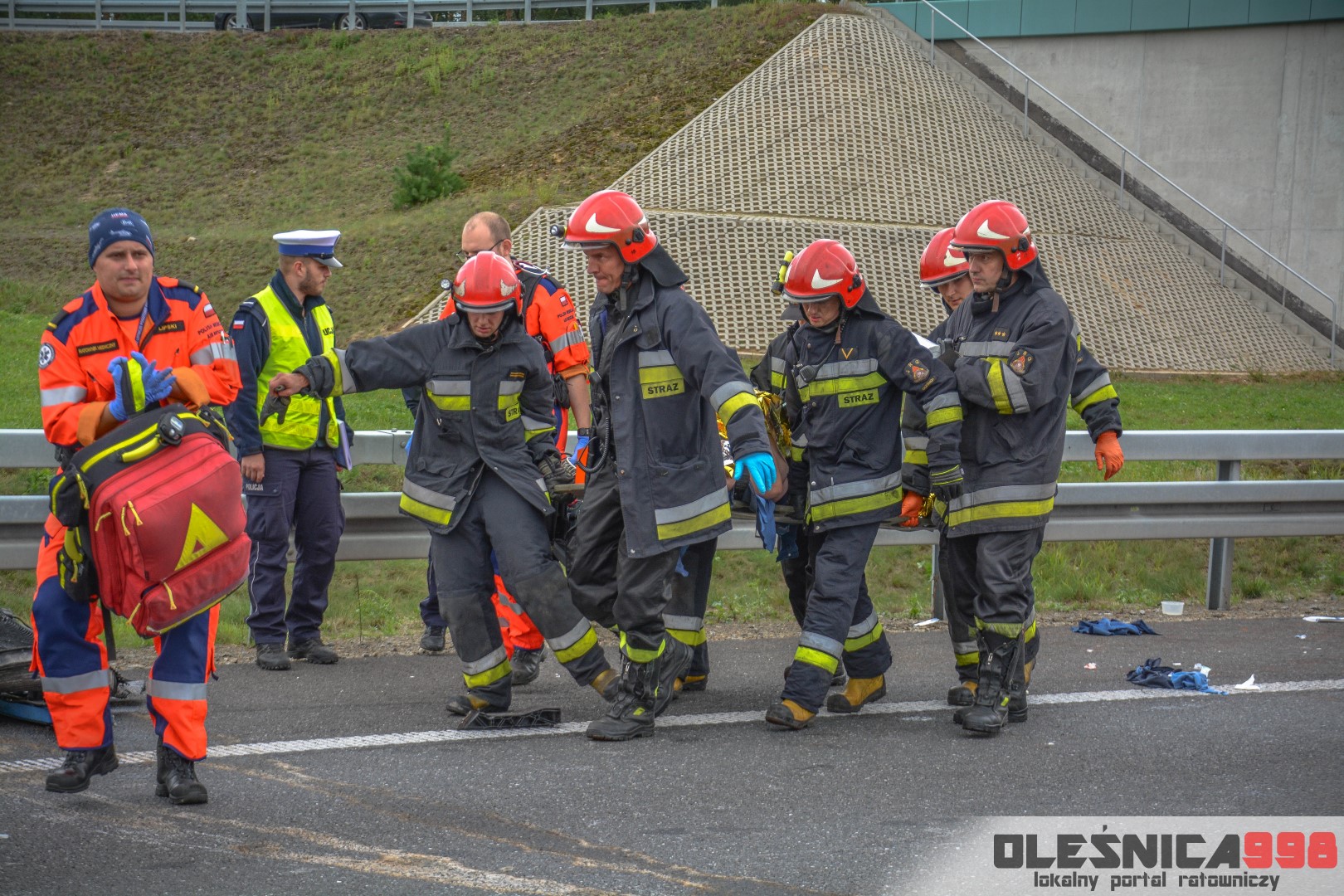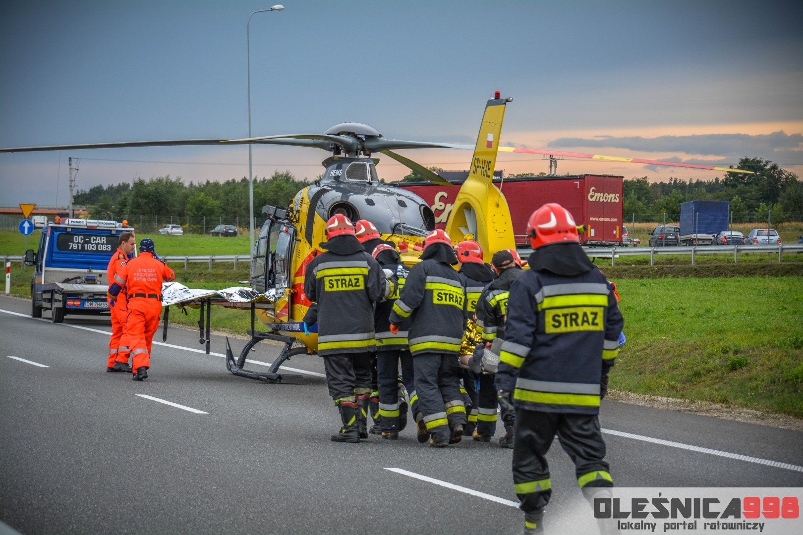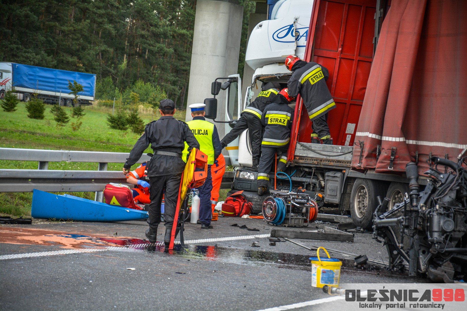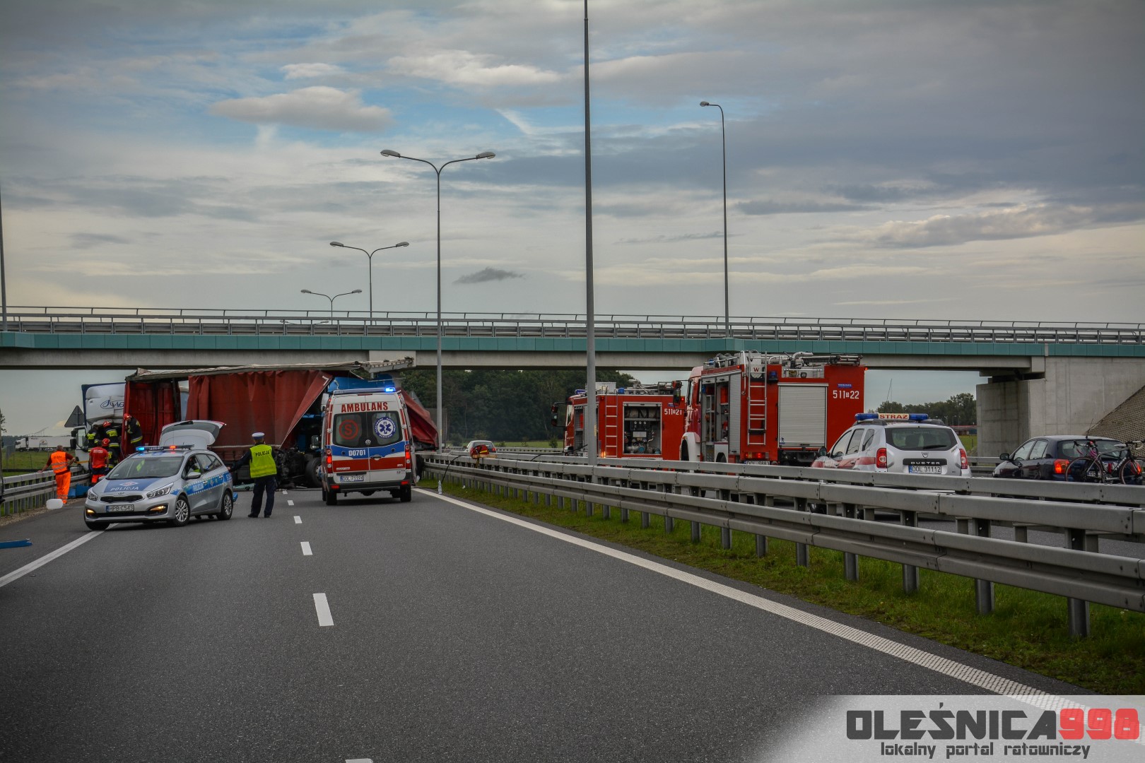 Dzisiejszego popołudnia, tuż przed godziną 15:30, na 59 kilometrze drogi S8 w kierunku Wrocławia doszło do bardzo poważnego zdarzenia drogowego. Zderzyły się tam trzy samochody ciężarowe. Trzy osoby zostały poszkodowane, z czego jedna z nich zakleszczona wewnątrz rozbitej kabiny. Informację o zdarzeniu odebrały wszystkie lokalne służby, a po chwili do akcji wyruszyły dwa zastępy z JRG Oleśnica, zespół Ratownictwa Medycznego oraz patrol Policji.