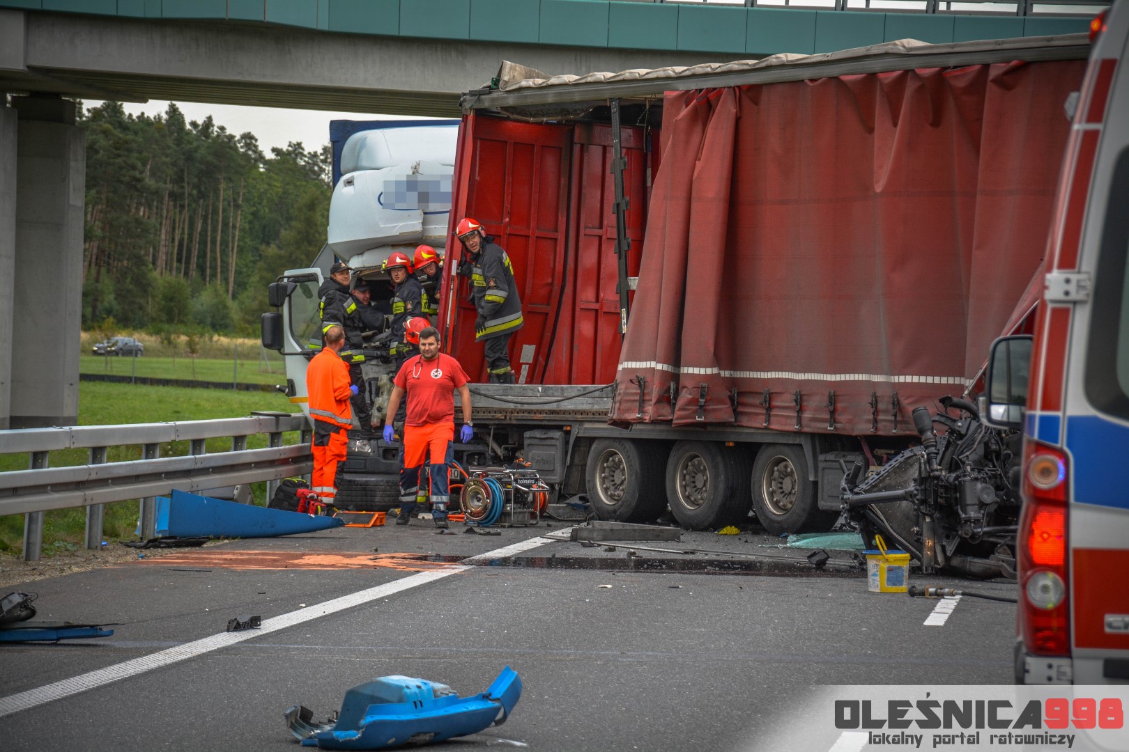 Ruch na jezdni w kierunku Wrocławia jest całkowicie zablokowany. Na chwilę obecną nie jest znana godzina jego wznowienia. Jak powiedzieli nam obecni na miejscu Policjanci, czynności na miejscu zdarzenia mogą potrwać do godzin wieczornych. Na chwilę obecną nie są znane okoliczności wypadku. Trwa ustalanie jego przebiegu przez Mundurowych.