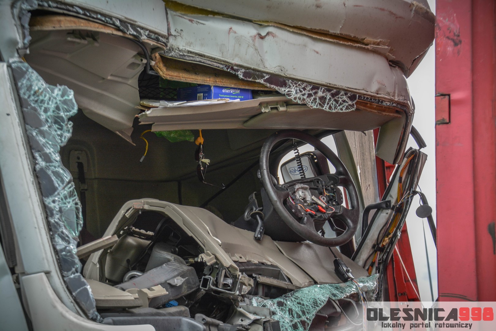 Wspólnymi siłami oraz dzięki determinacji Ratowników po ponad 40 minutach udało się uwolnić rannego kierowcę ciężarówki. Został on ewakuowany z wraku pojazdu, a opiekę nad nim przejęła załoga śmigłowca Lotniczego Pogotowia Ratunkowego. Wiemy, że doznał ona poważnego urazu klatki piersiowej oraz otwartego złamania lewej nogi. Przytomny trafił do specjalistycznego szpitala przy ul. Borowskiej we Wrocławiu.