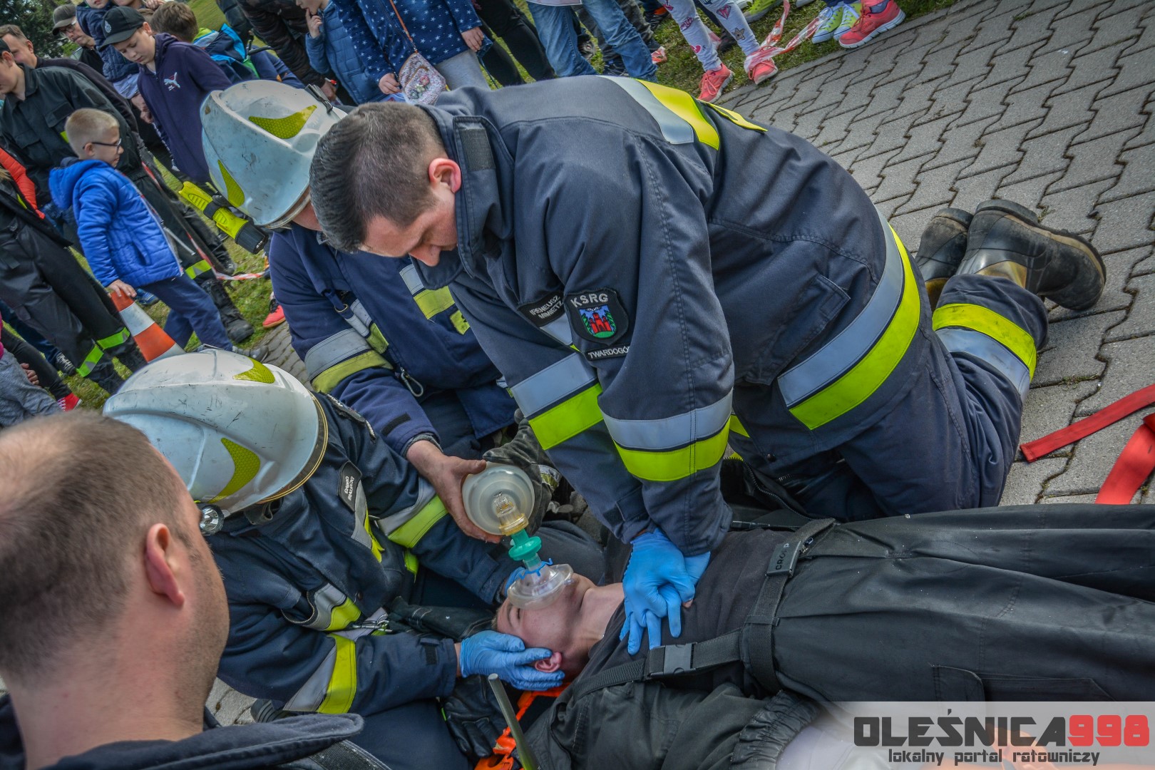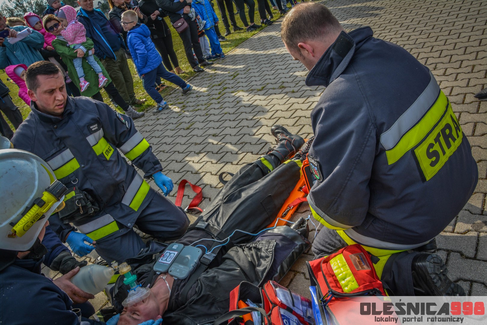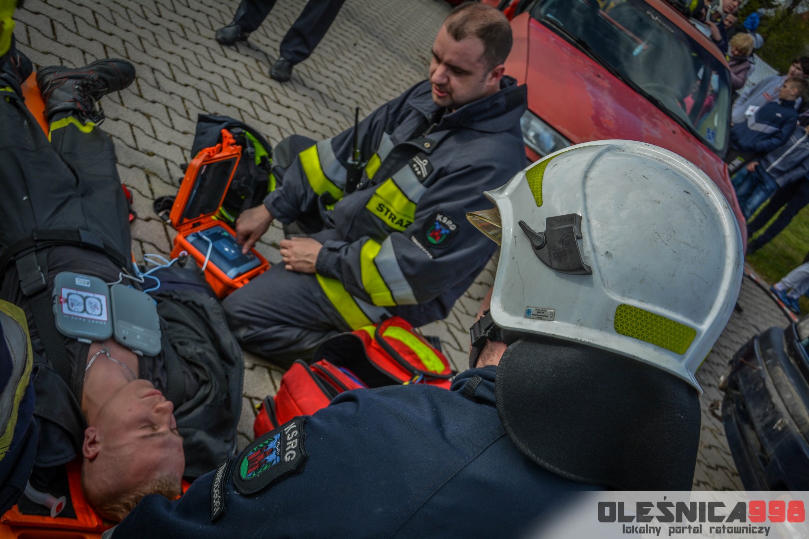 Na sam koniec imprezy przygotowany został pokaz ratownictwa drogowego. W symulowanym wypadku drogowym udział wzięły dwa pojazdy osobowe, w których zakleszczone zostały osoby poszkodowane. Aby możliwa była ich ewakuacja Strażacy musieli wykonać do nich dostęp przy pomocy narzędzi hydraulicznych. Następnie udzielona została im pomoc.
