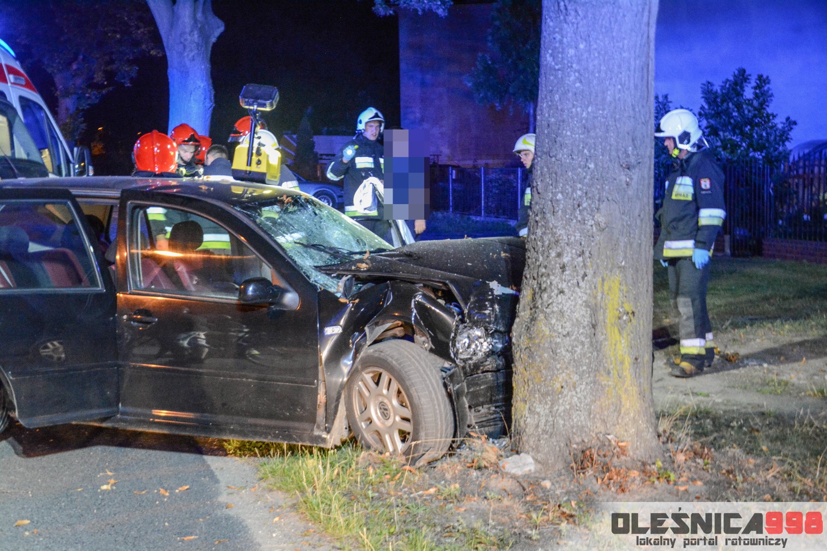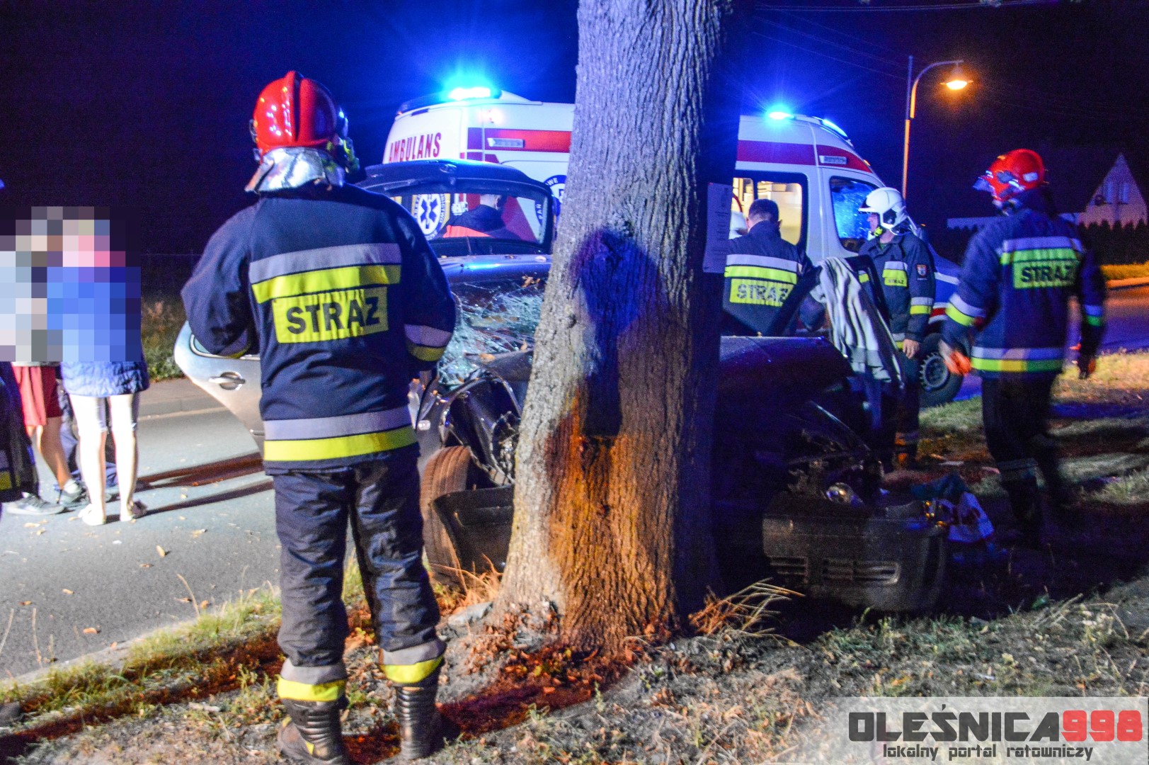 Dziś, późnym wieczorem, tuż przed godziną 21:00 Dyżurny Operacyjny SK KP PSP w Oleśnicy odebrał zgłoszenie o wypadku drogowym z udziałem jednego samochodu osobowego, który miał uderzyć w przydrożne drzewo, na ulicy Kolejowej w Dobroszycach. Do zdarzenia niezwłocznie zadysponowane zostały dwa zastępy z oleśnickiej Jednostki Ratowniczo – Gaśniczej, zastęp z OSP KSRG Dobroszyce, zespół Ratownictwa Medycznego a także patrole Policji. Po dotarciu służb na miejsce potwierdzono treść zgłoszenia.
