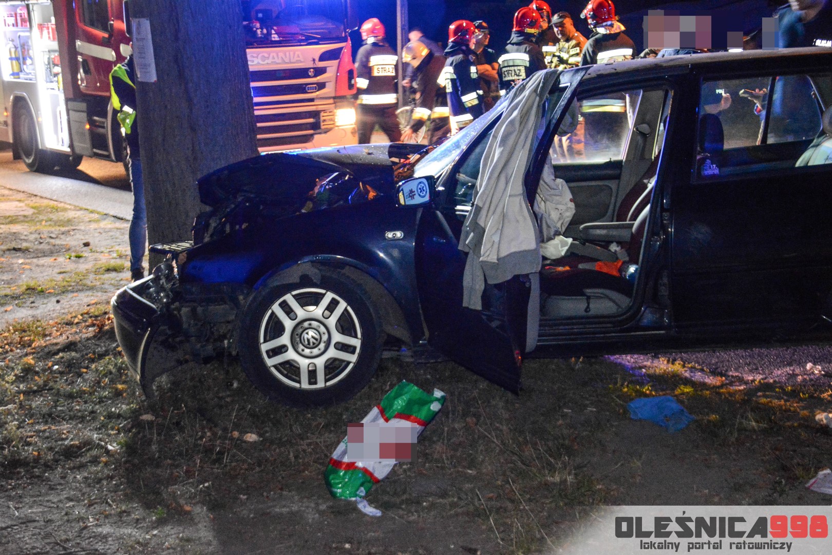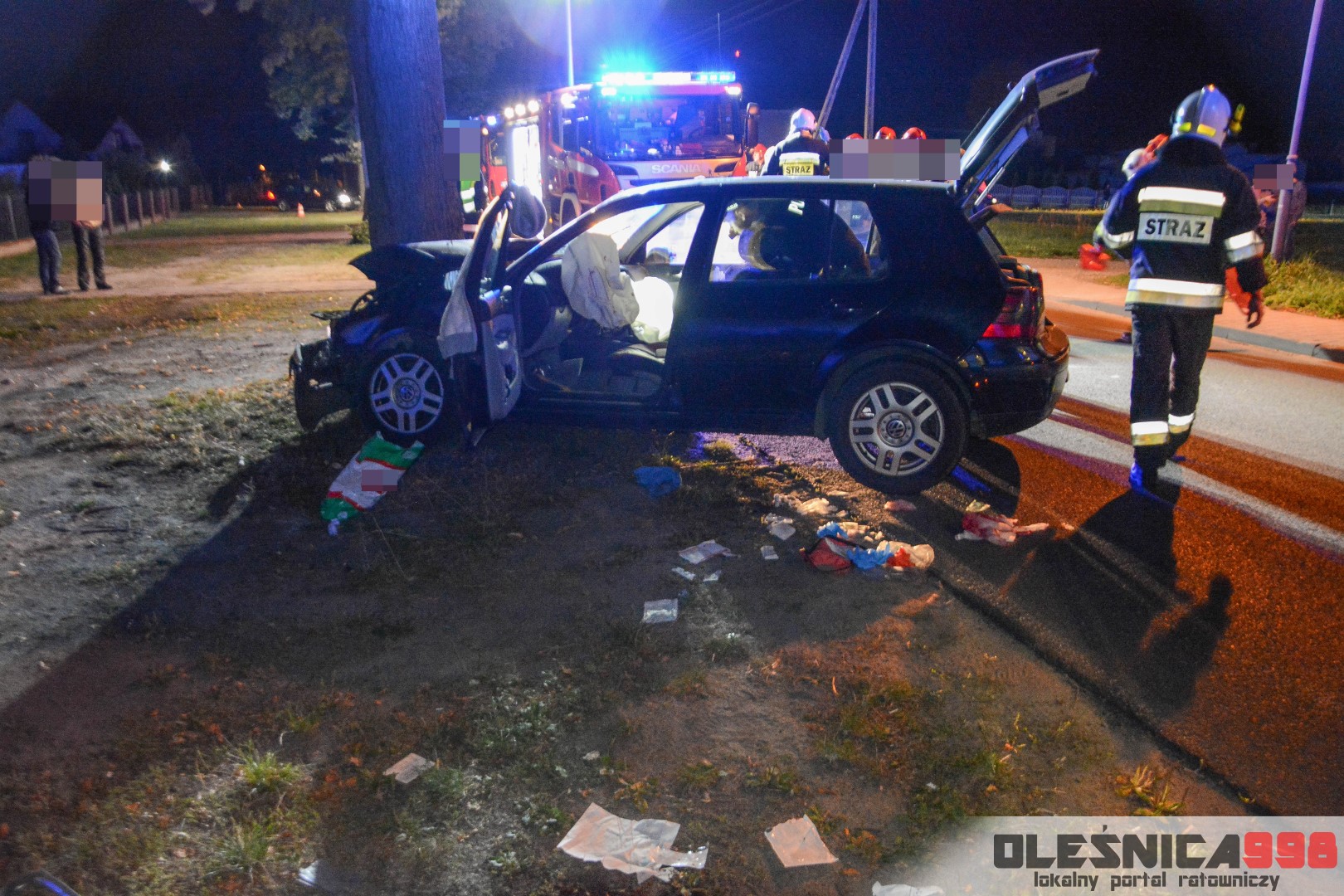Golf uderzył w przydrożne drzewo. Wieczorny wypadek w Dobroszycach
