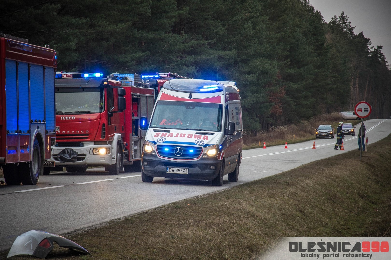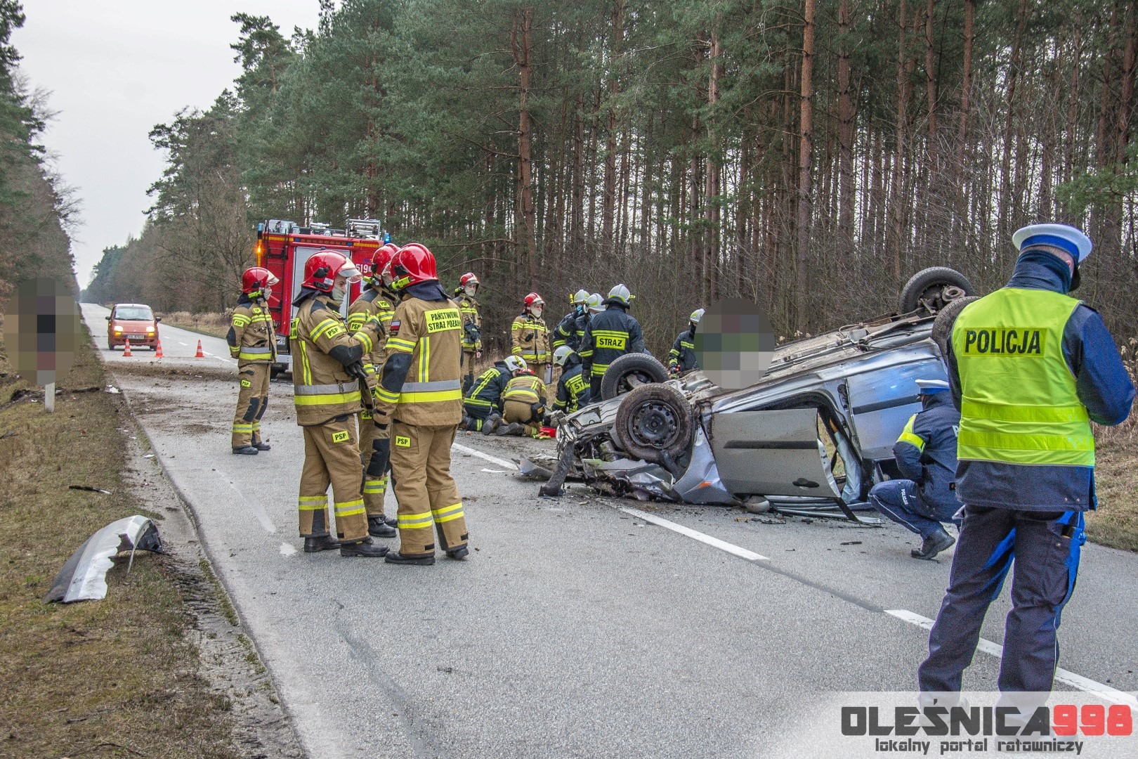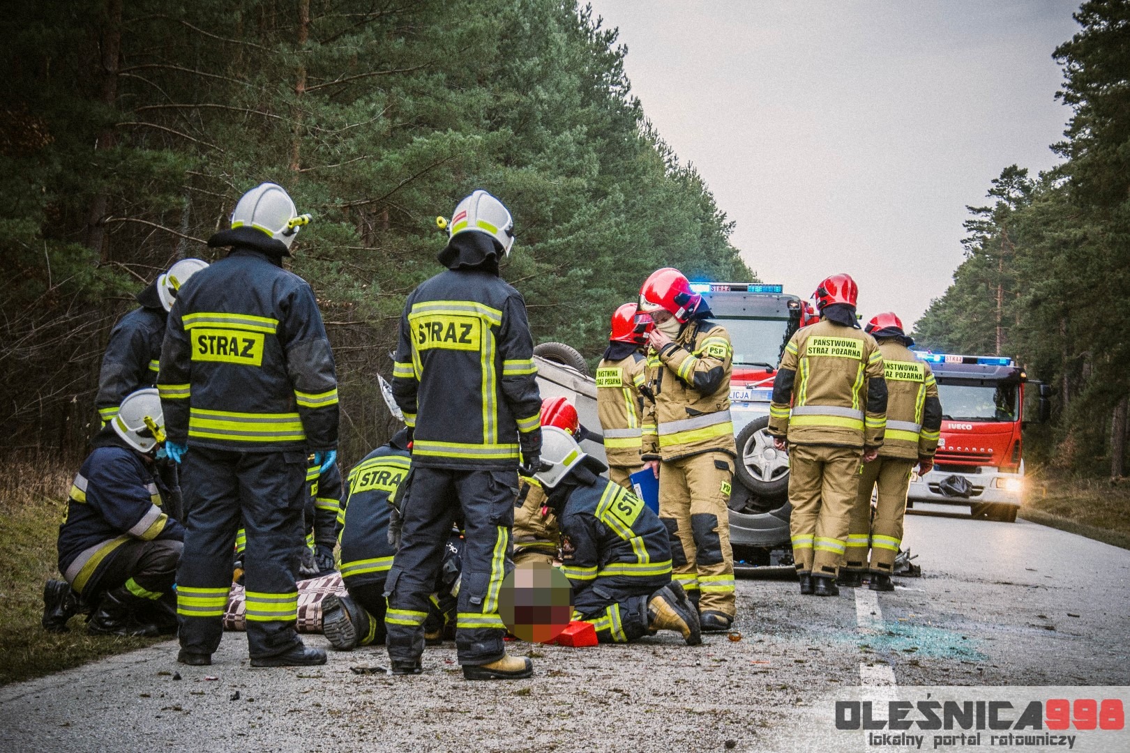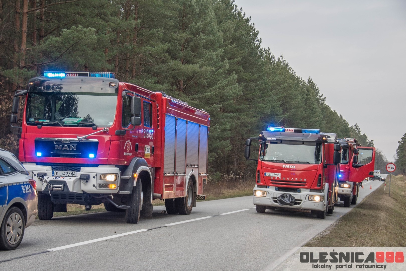 Dzisiejszego popołudnia, tuż po godzinie 15:00, Dyżurny Operacyjny Stanowiska Kierowania Komendanta Powiatowego Państwowej Straży Pożarnej w Oleśnicy odebrał zgłoszenie z Wojewódzkiego Centrum Powiadamia Ratunkowego, dotyczące dachowania samochodu osobowego na drodze wojewódzkiej nr 396 w miejscowości Karwiniec (gm. Bierutów). Ze wstępnych informacji wynikało, że poszkodowana jest jedna osoba, która został uwięziona wewnątrz wraku. Po doprecyzowaniu zgłoszenia okazało się, że poszkodowany kierowca osobówki został ewakuowany na zewnątrz i znajduje się pod opieką osób postronnych. Na miejsce zostały niezwłocznie zadysponowane po dwa zastępy z Jednostki Ratowniczo – Gaśniczej w Oleśnicy oraz miejscowej Ochotniczej Straży Pożarnej z Bierutowa. Do zdarzenia zostali także skierowani oleśniccy Policjanci Wydziału Ruchu Drogowego a także Ratownicy Medyczny wrocławskiego Pogotowia Ratunkowego.