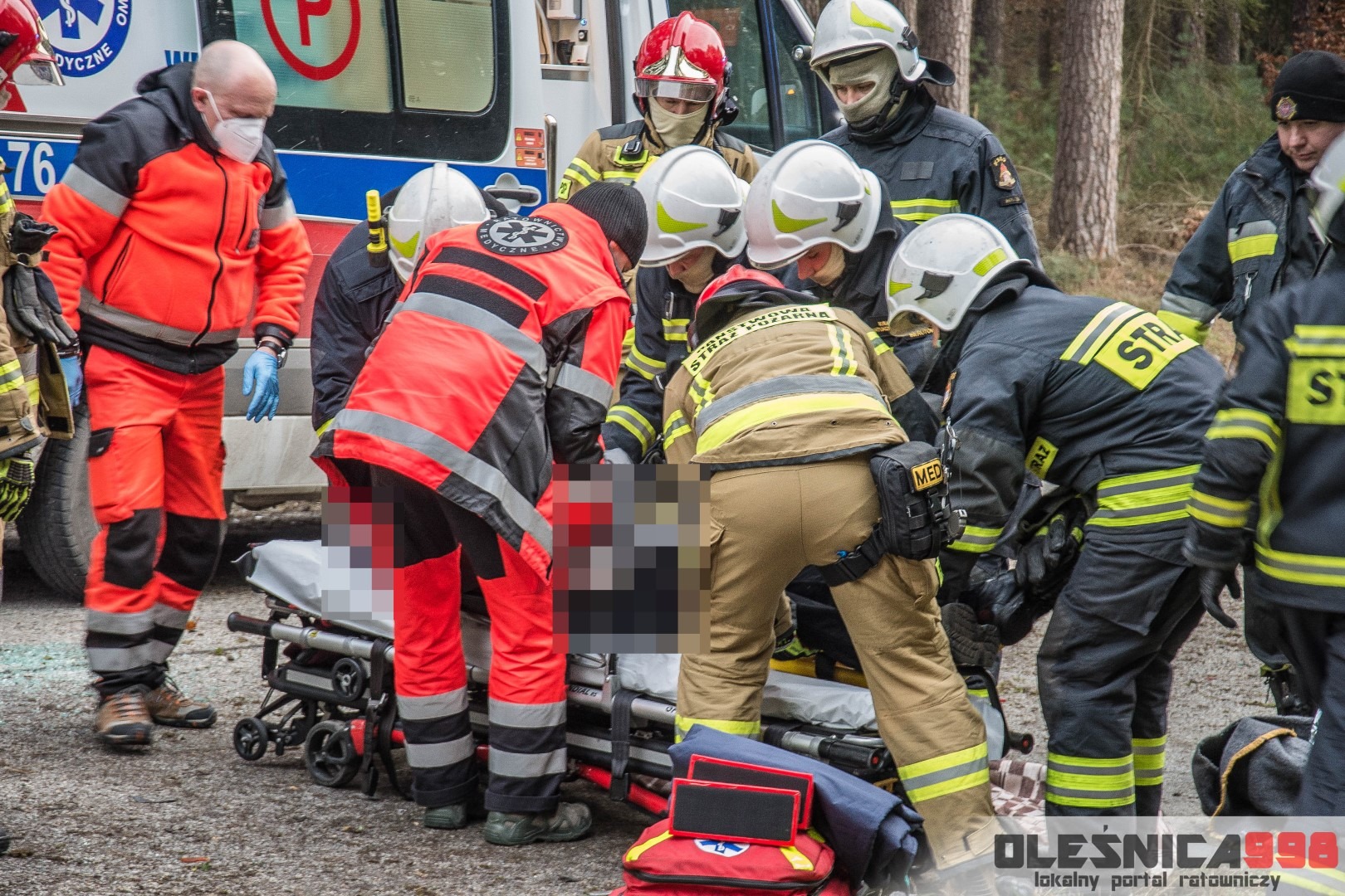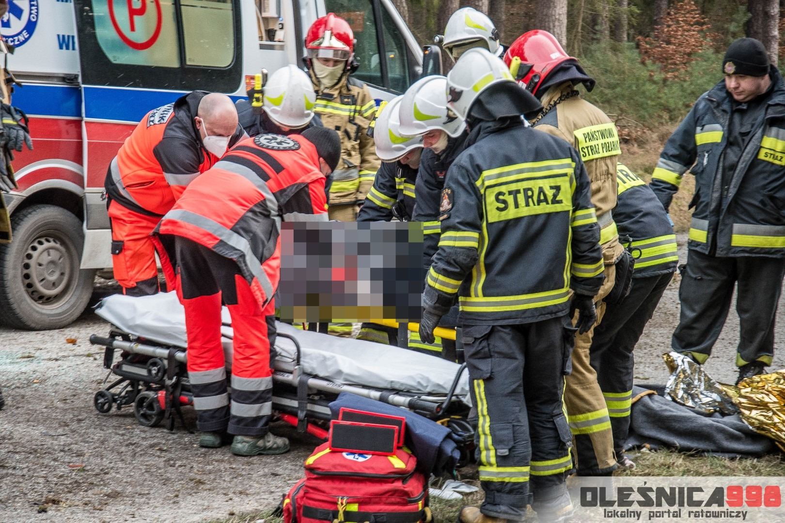 Przystąpiono do zabezpieczania miejsce zdarzenia oraz pojazdu biorącego w nim udział, a także udzielania pomocy poszkodowanemu kierowcy. Do czasu przybycia zespołu Ratownictwa Medycznego mężczyzna znajdował się pod opieką Strażaków – został wstępnie zaopatrzony oraz zabezpieczony przed wychłodzeniem. Po przekazaniu poszkodowanego załodze ambulansu trafił on do szpitala.