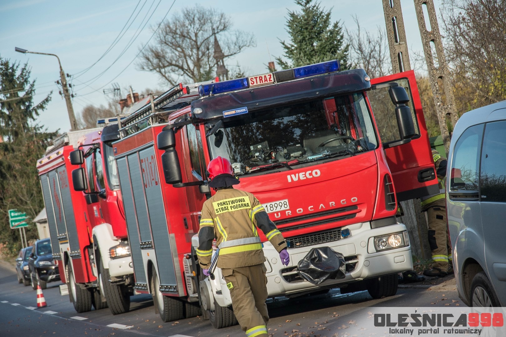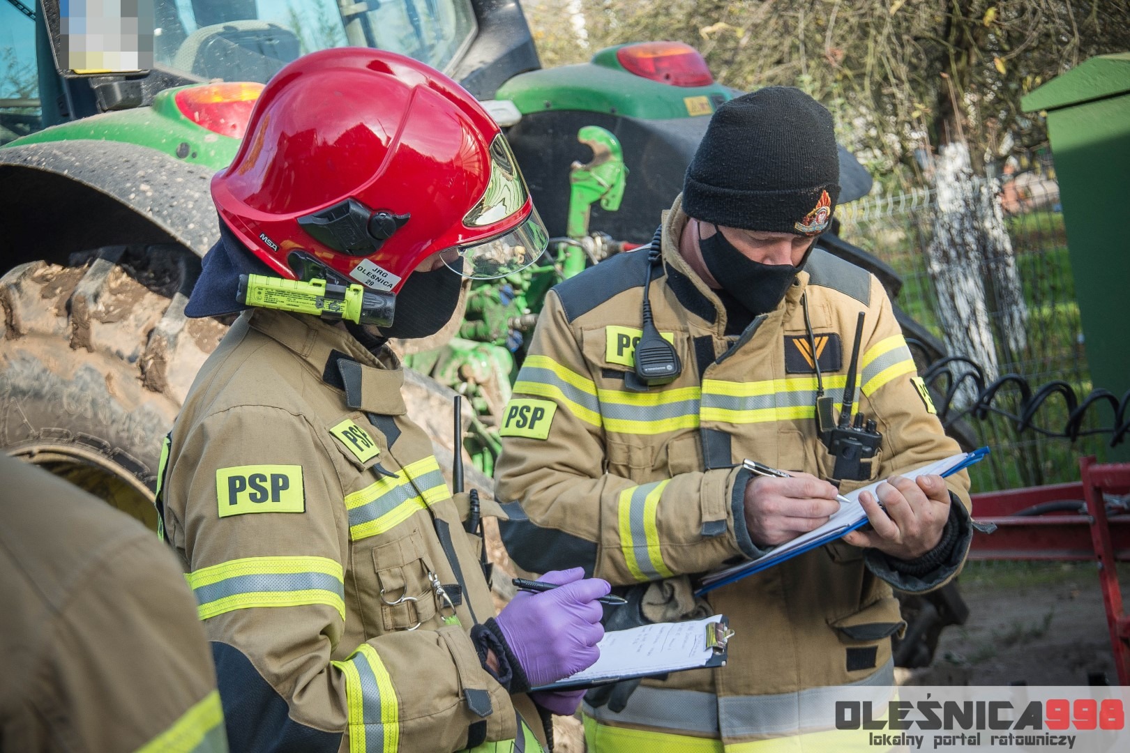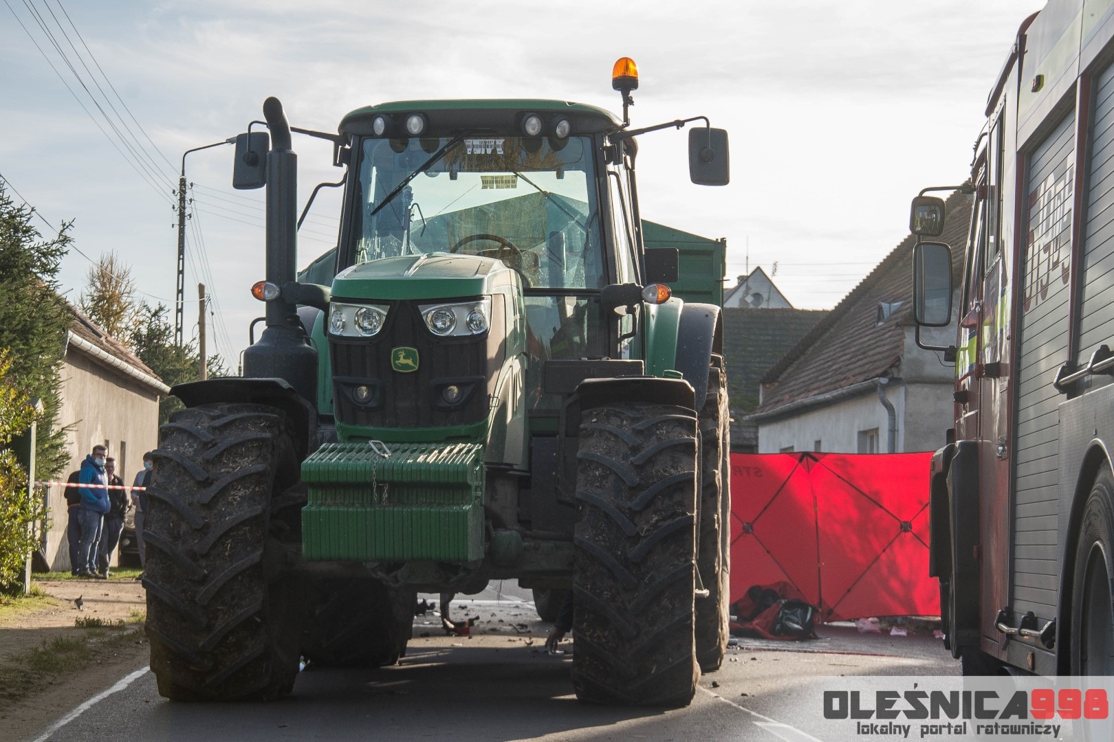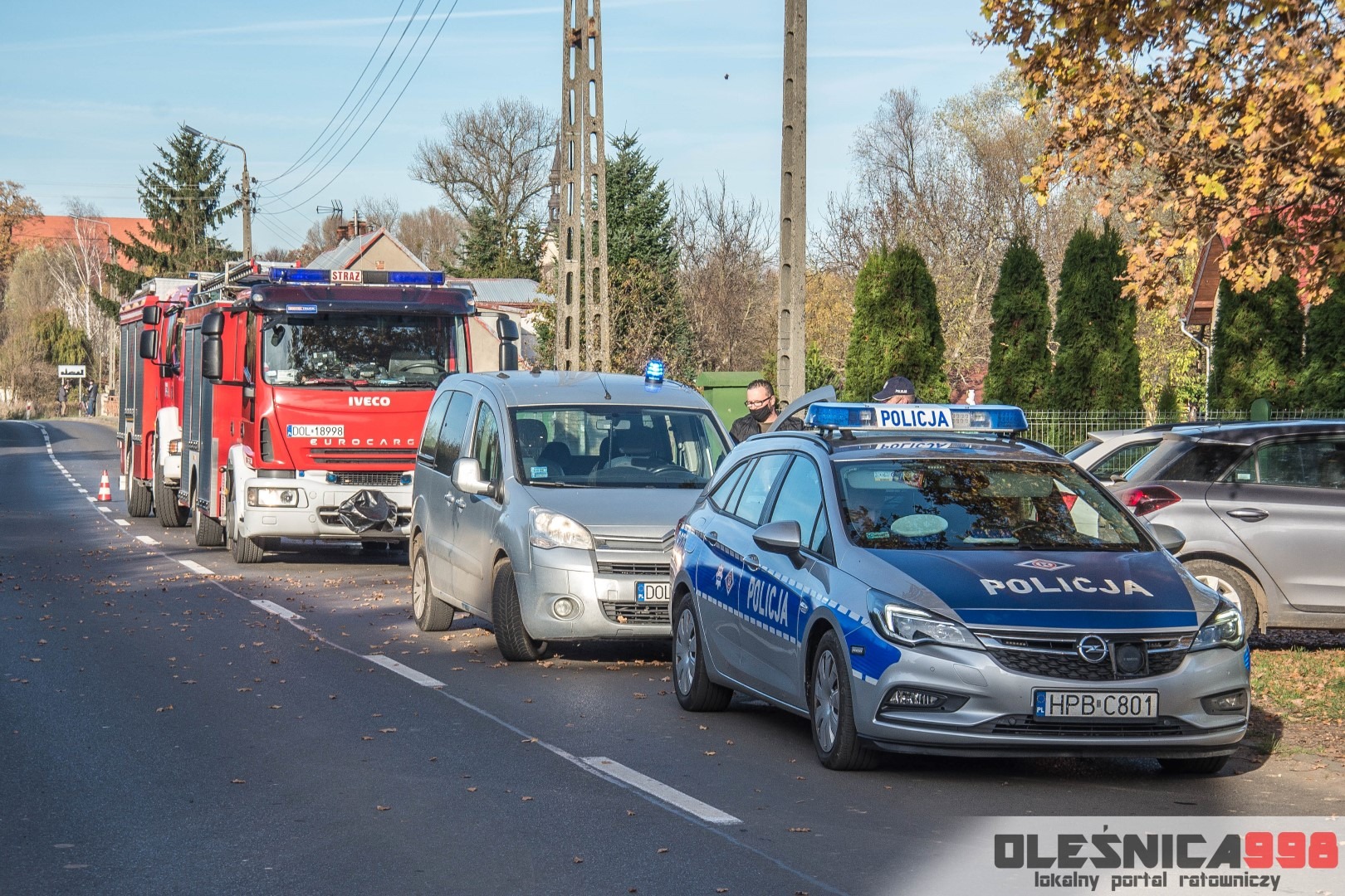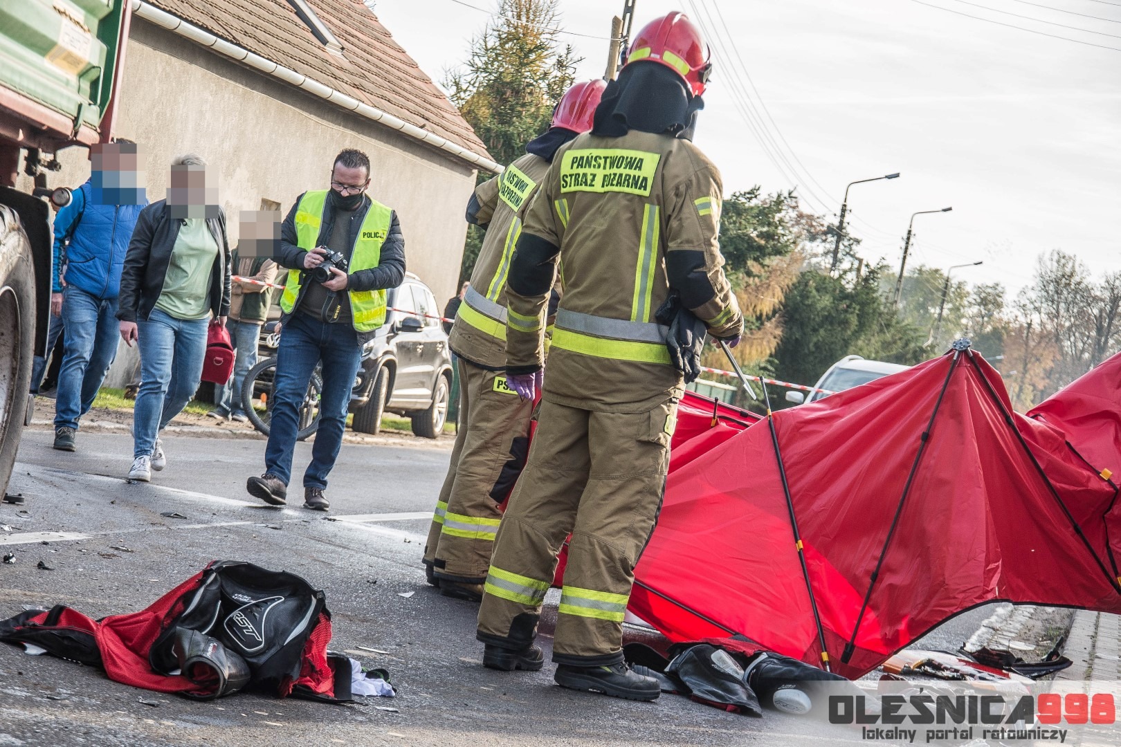 Dziś około południa, Dyżurny Operacyjny Stanowiska Kierowania Komendanta Powiatowego Państwowej Straży Pożarnej w Oleśnicy odebrał zgłoszenie o groźnym wypadku komunikacyjnym z udziałem motocyklisty i ciągnika rolniczego, do jakiego doszło na drodze wojewódzkiej nr 396 w miejscowości Karwiniec. Ze wstępnych informacji wynikało, że ciężko ranny został kierowca jednośladu. Na miejsce niezwłocznie zostały zadysponowane po dwa zastępy z Jednostki Ratowniczo- Gaśniczej z Oleśnicy oraz pobliskiej jednostki OSP w Bierutowie. Do zdarzenia skierowano również śmigłowiec Lotniczego Pogotowia Ratunkowego z Wrocławia i patrole Policji.