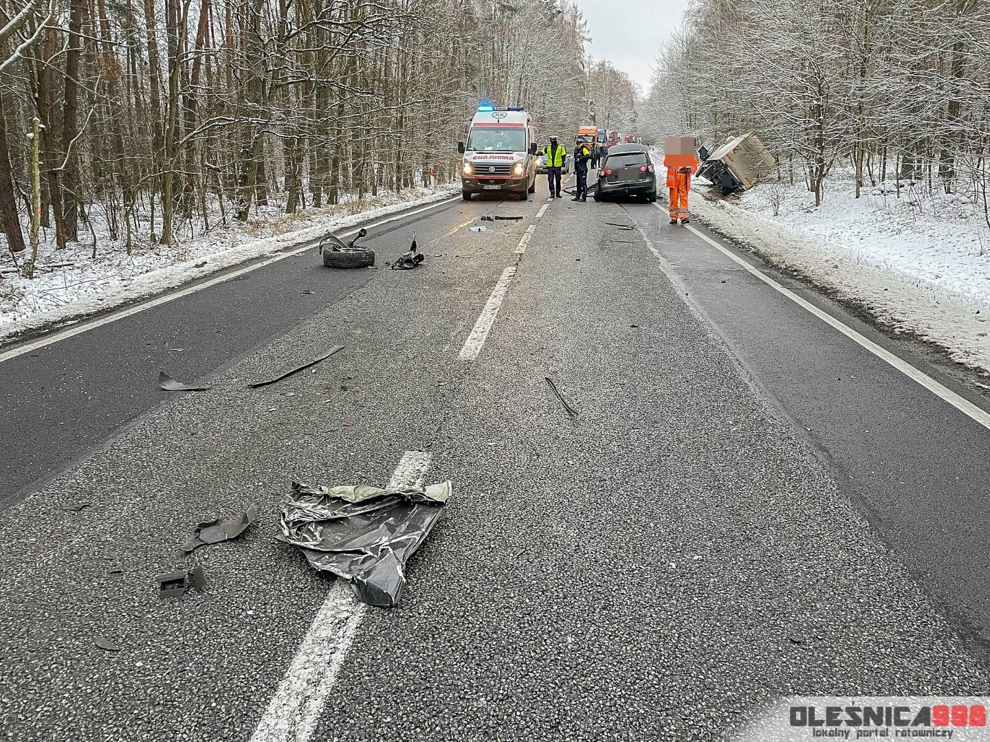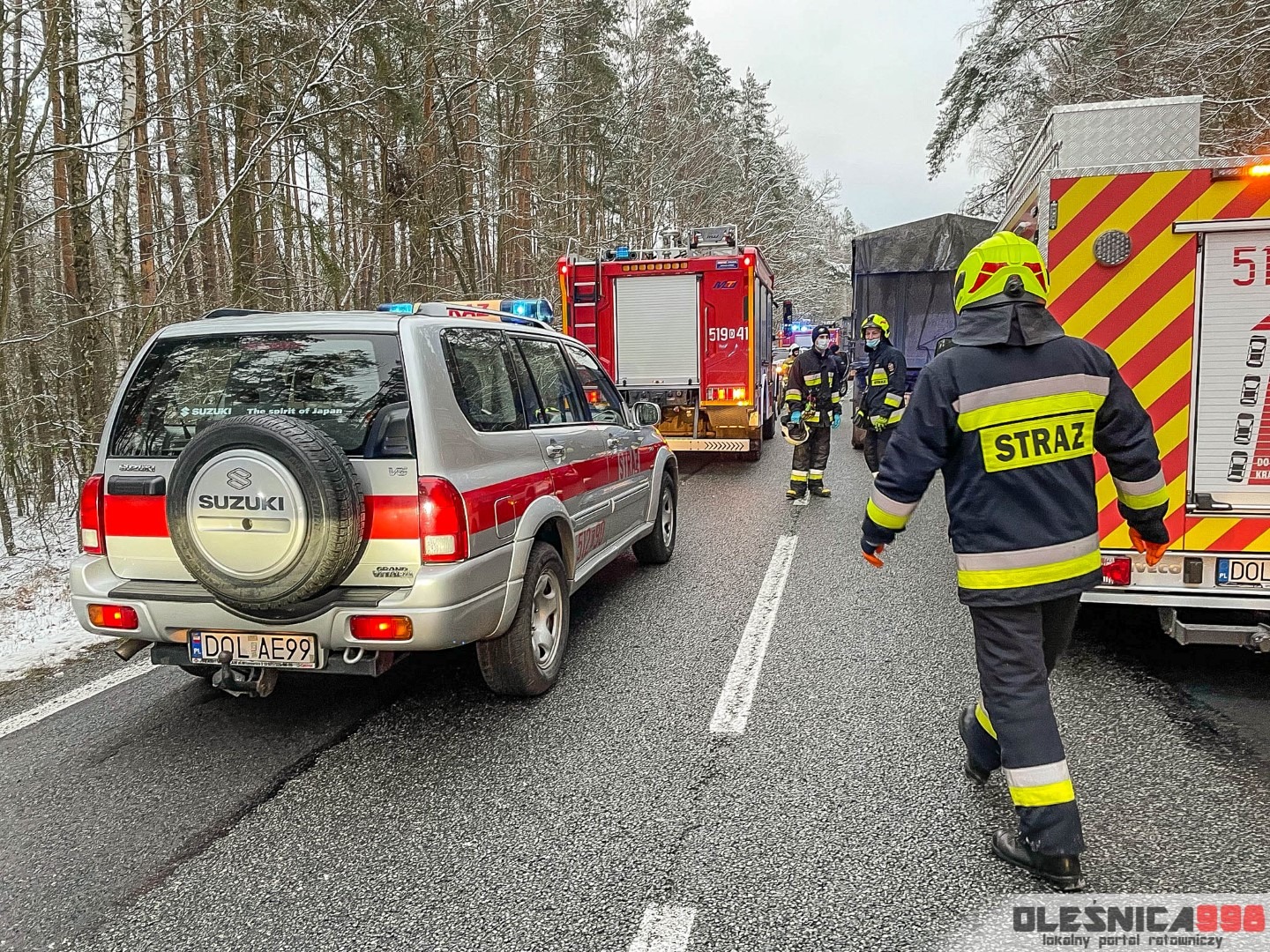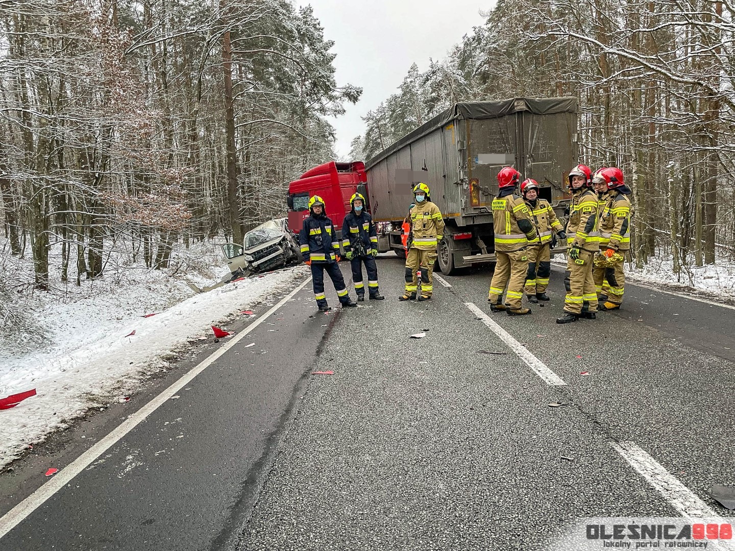 Dzisiejszego poranka, po godzinie 7:00, oleśnickie służby otrzymały informacje o groźnym wypadku komunikacyjnym, do jakiego doszło na drodze krajowej nr 25. Ze wstępnych informacji wynikało, że na wysokości miejscowości Ostrowina doszło do zderzenia czterech samochodów, w tym dwóch ciężarowych. Formatki dotyczące zdarzenia wpłynęły między innymi do Stanowiska Kierowania KP PSP w Oleśnicy. Pełniący służbę Dyżurny zadysponował na miejsce łącznie 5 zastępów Straży Pożarnej z Oleśnicy, Ligoty Polskiej i Sokołowic. Do zdarzenia udały się także dwa podstawowe zespoły Ratownictwa Medycznego z Twardogóry i Sycowa oraz patrole Policji.