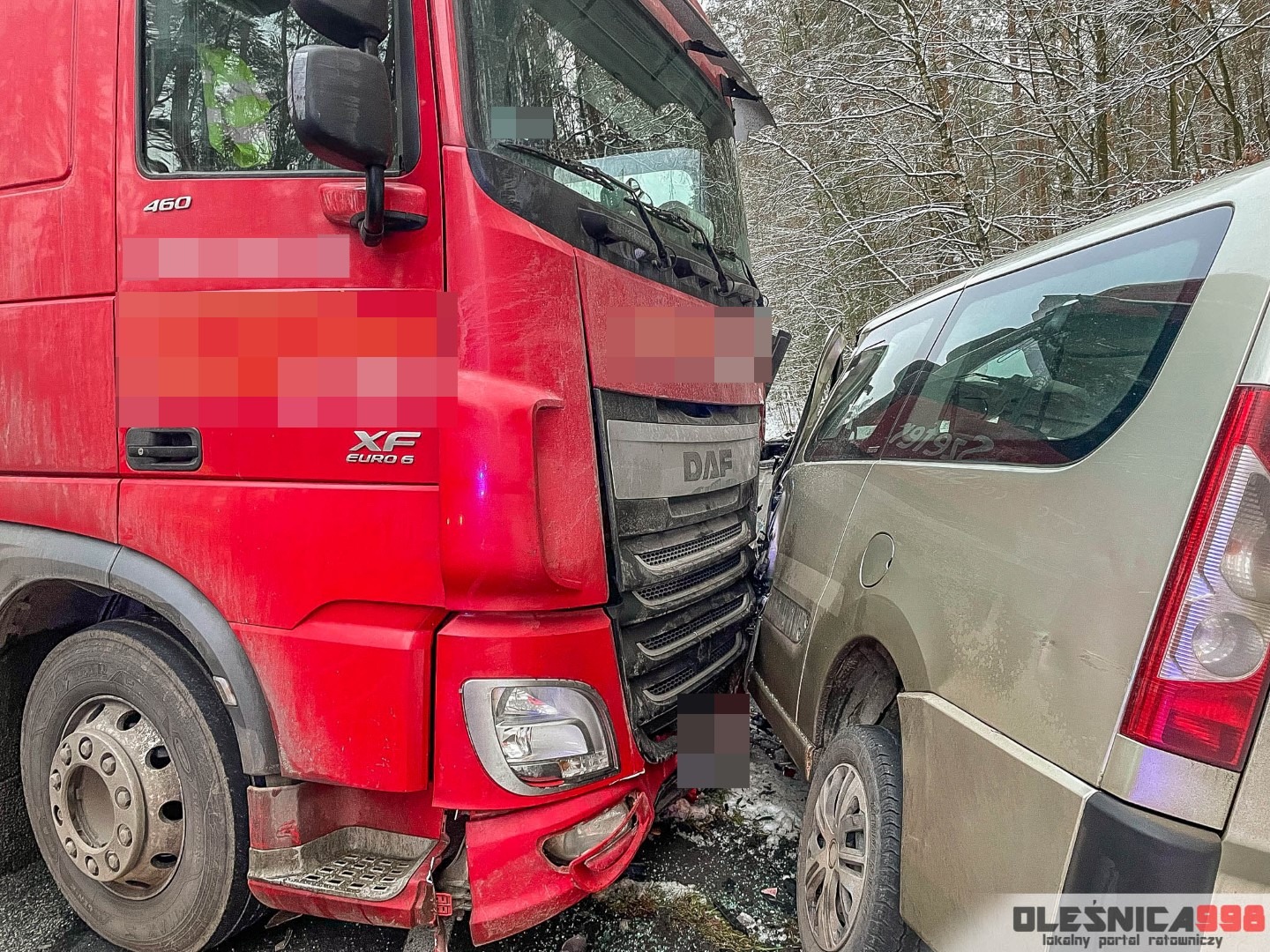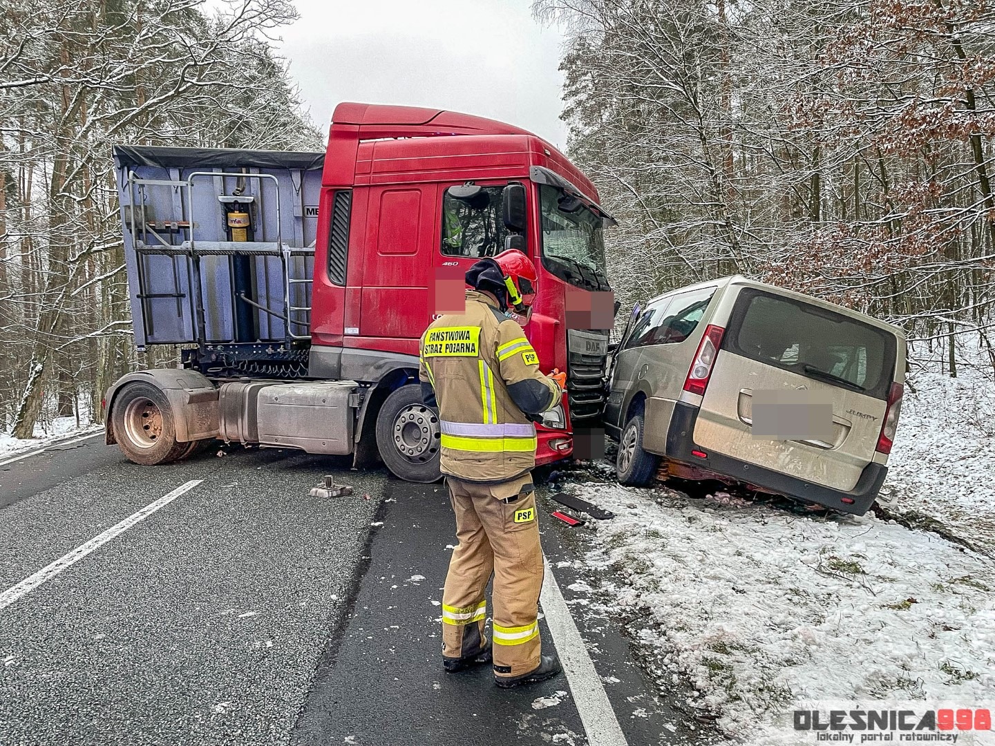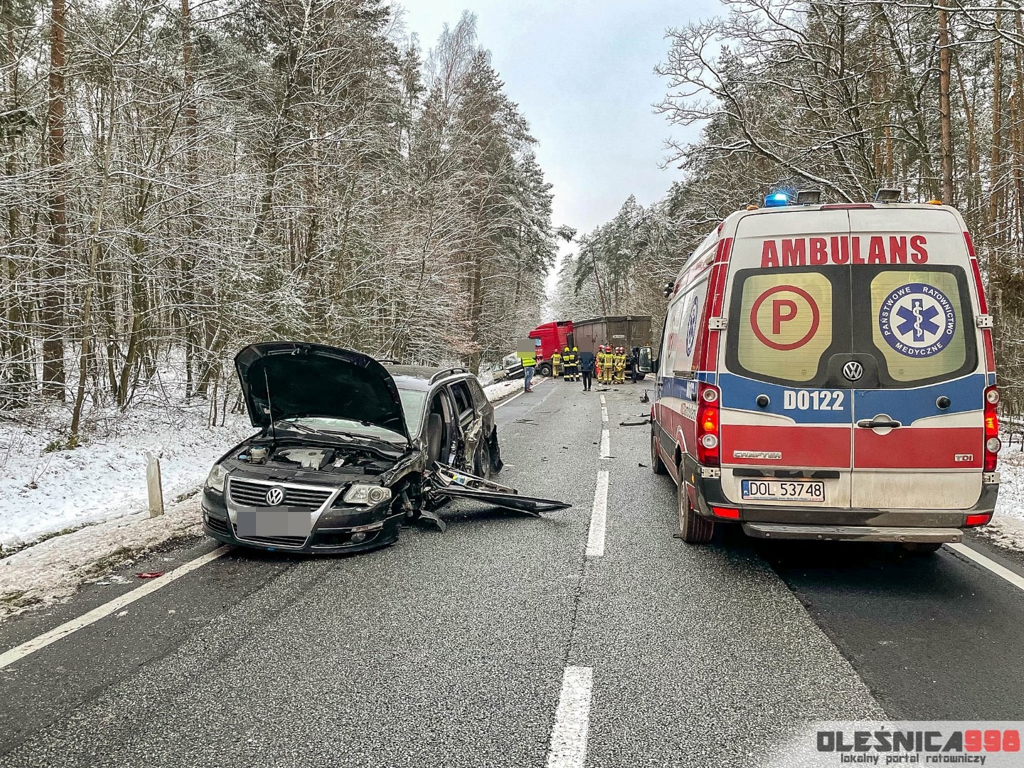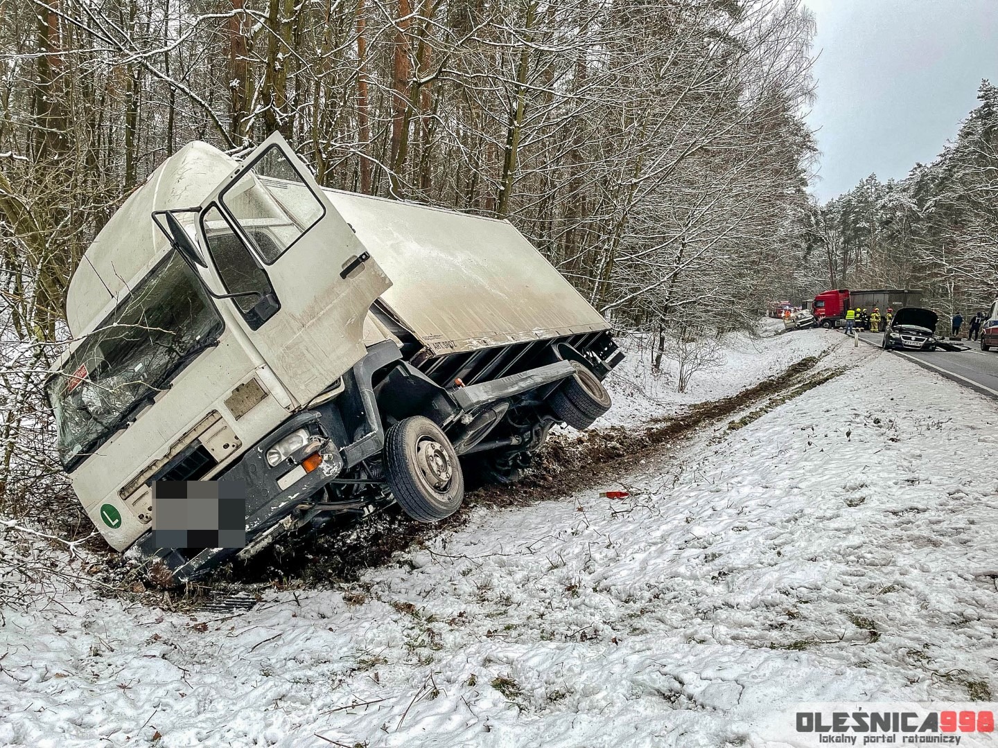 Dzisiejszego poranka, po godzinie 7:00, oleśnickie służby otrzymały informacje o groźnym wypadku komunikacyjnym, do jakiego doszło na drodze krajowej nr 25. Ze wstępnych informacji wynikało, że na wysokości miejscowości Ostrowina doszło do zderzenia czterech samochodów, w tym dwóch ciężarowych. Formatki dotyczące zdarzenia wpłynęły między innymi do Stanowiska Kierowania KP PSP w Oleśnicy. Pełniący służbę Dyżurny zadysponował na miejsce łącznie 5 zastępów Straży Pożarnej z Oleśnicy, Ligoty Polskiej i Sokołowic. Do zdarzenia udały się także dwa podstawowe zespoły Ratownictwa Medycznego z Twardogóry i Sycowa oraz patrole Policji.