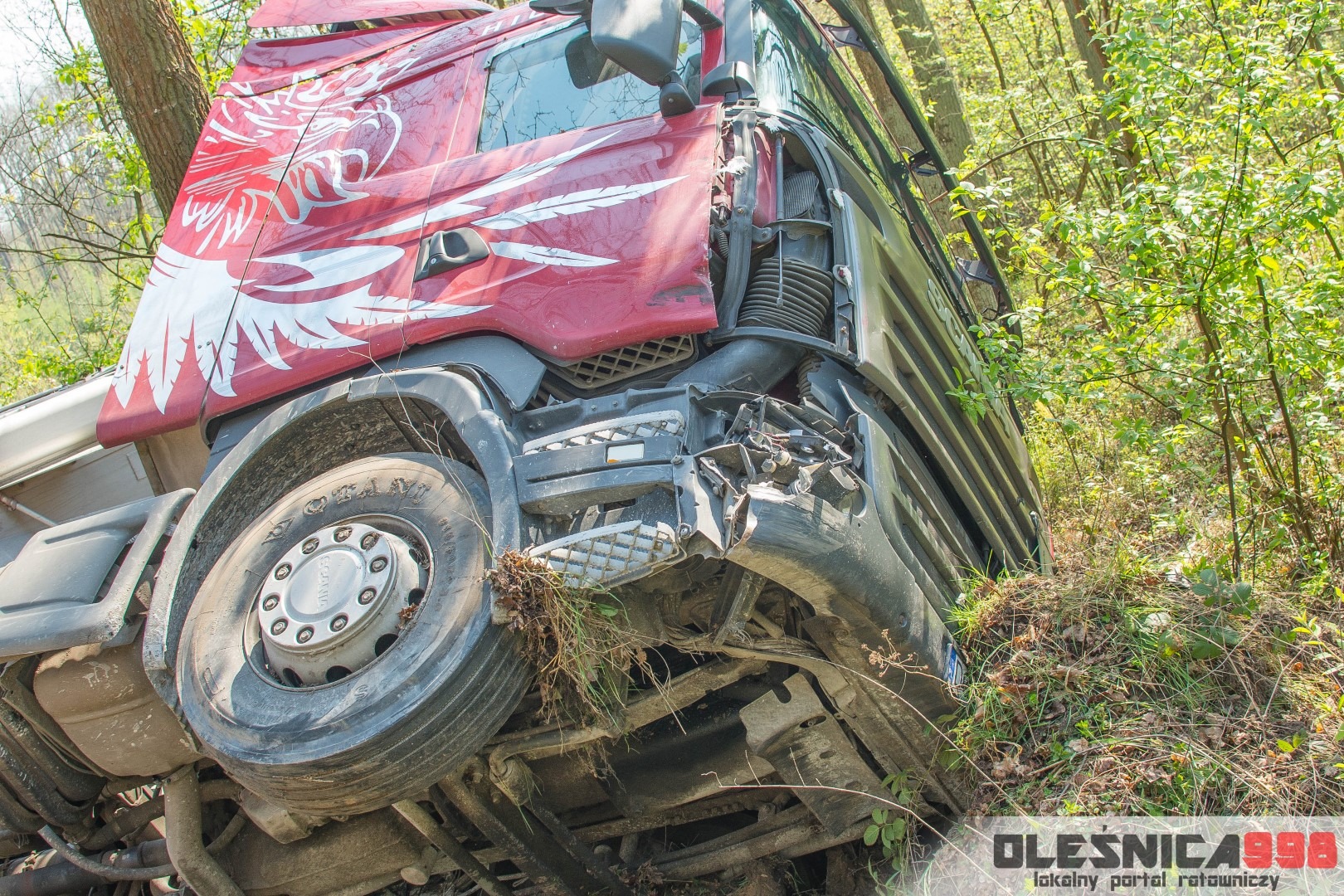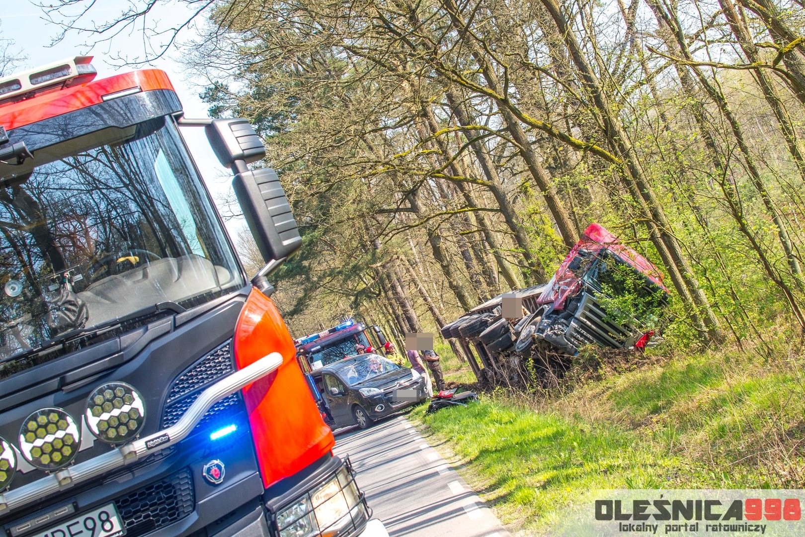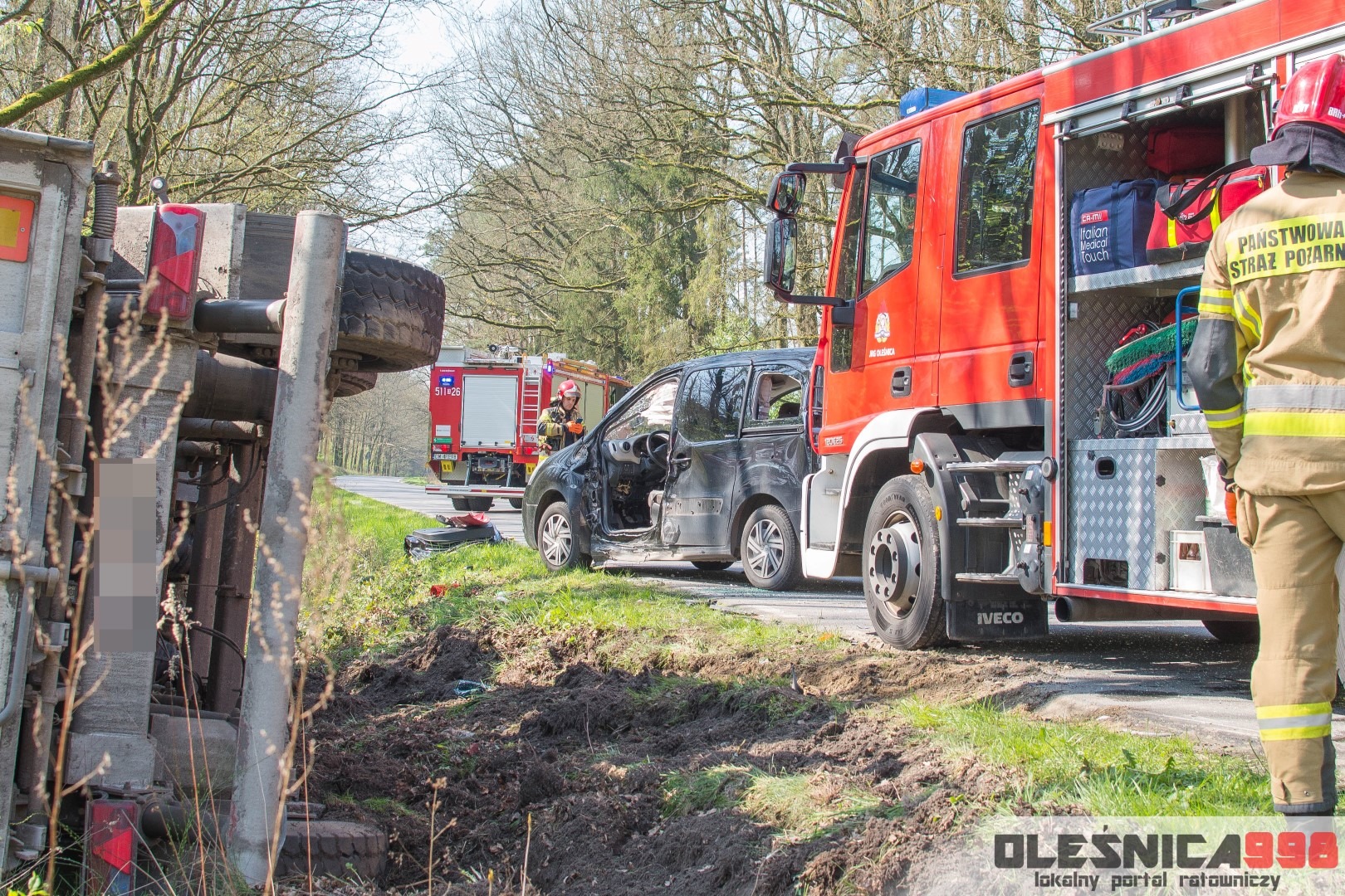 Groźny wypadek pod Oleśnicą. Zderzyły się ciężarówka i samochód osobowy