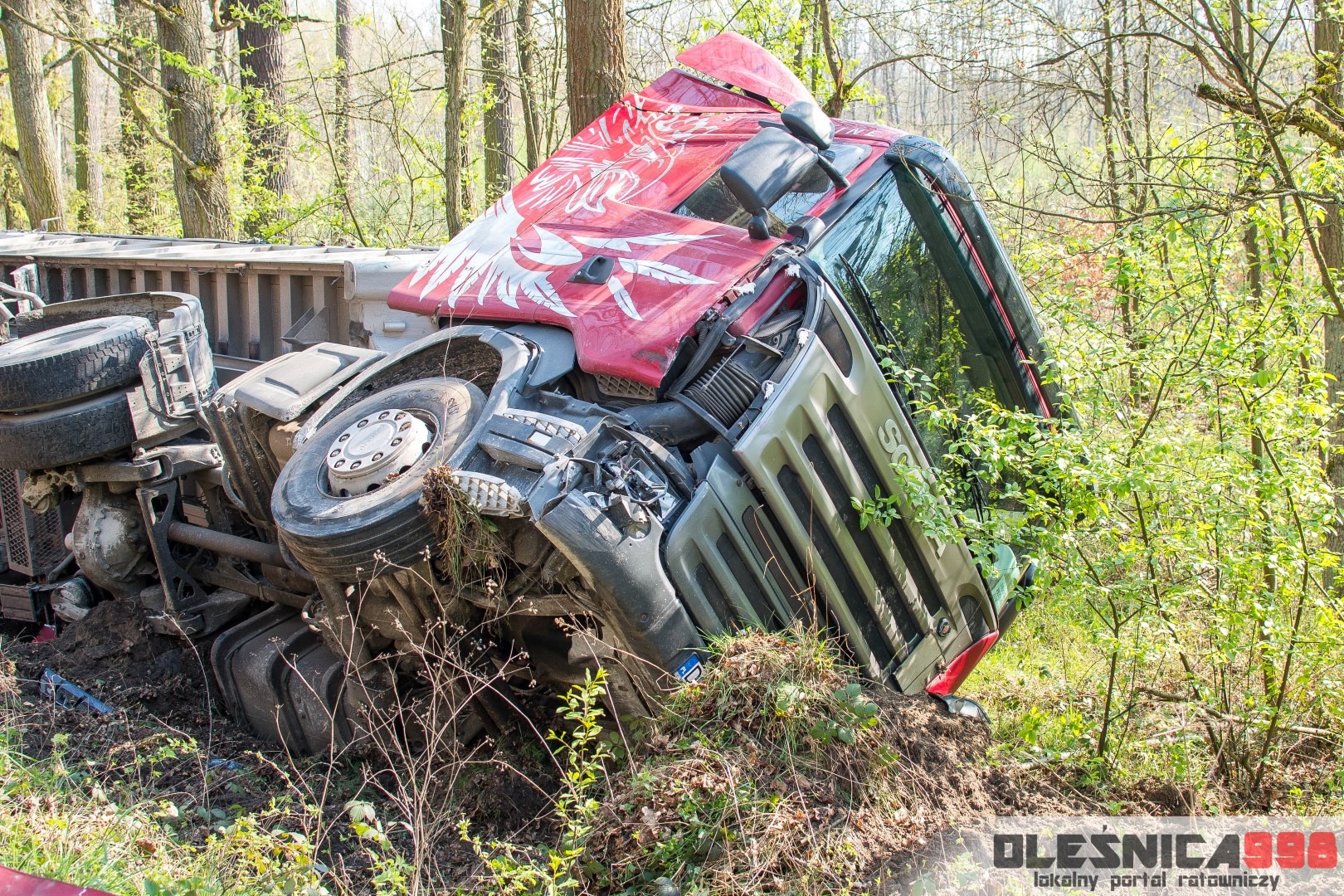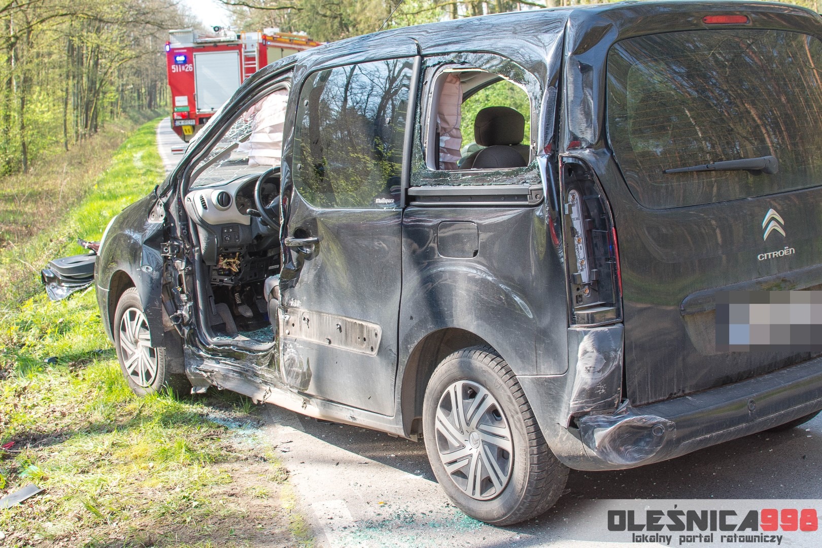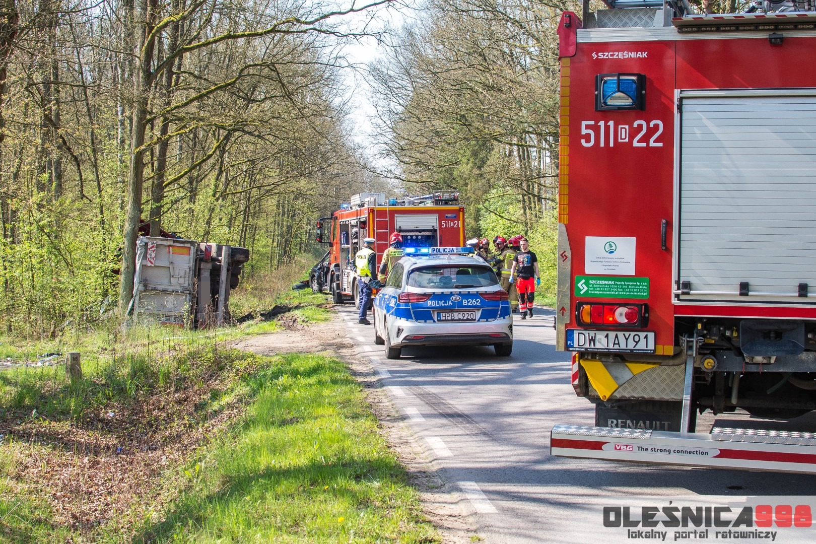 Groźny wypadek pod Oleśnicą. Zderzyły się ciężarówka i samochód osobowy