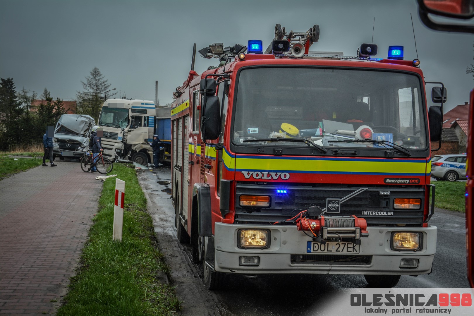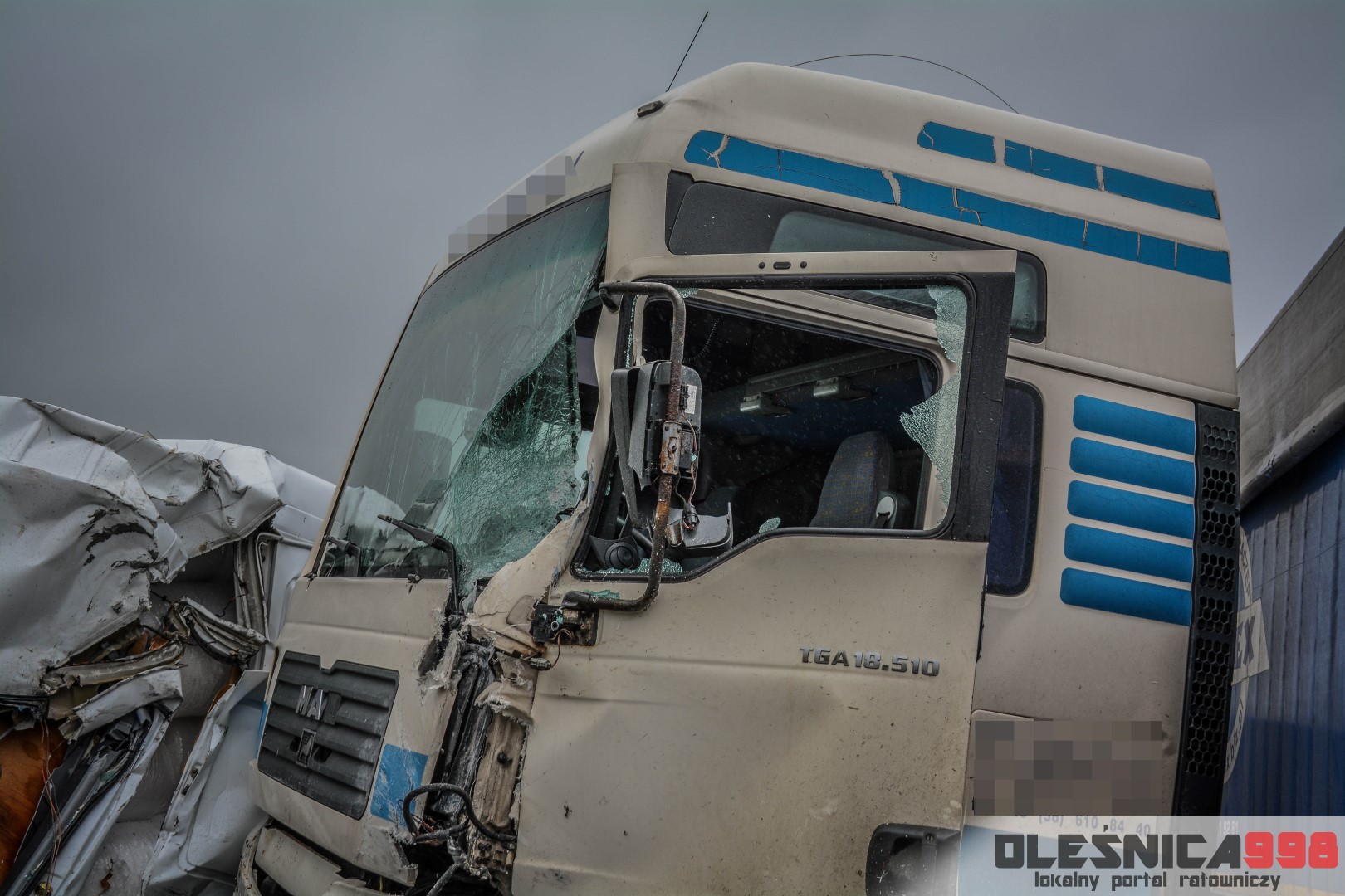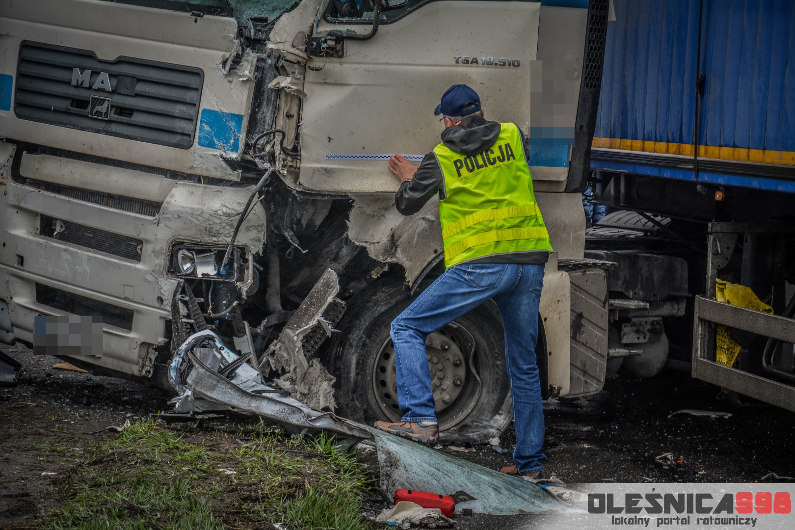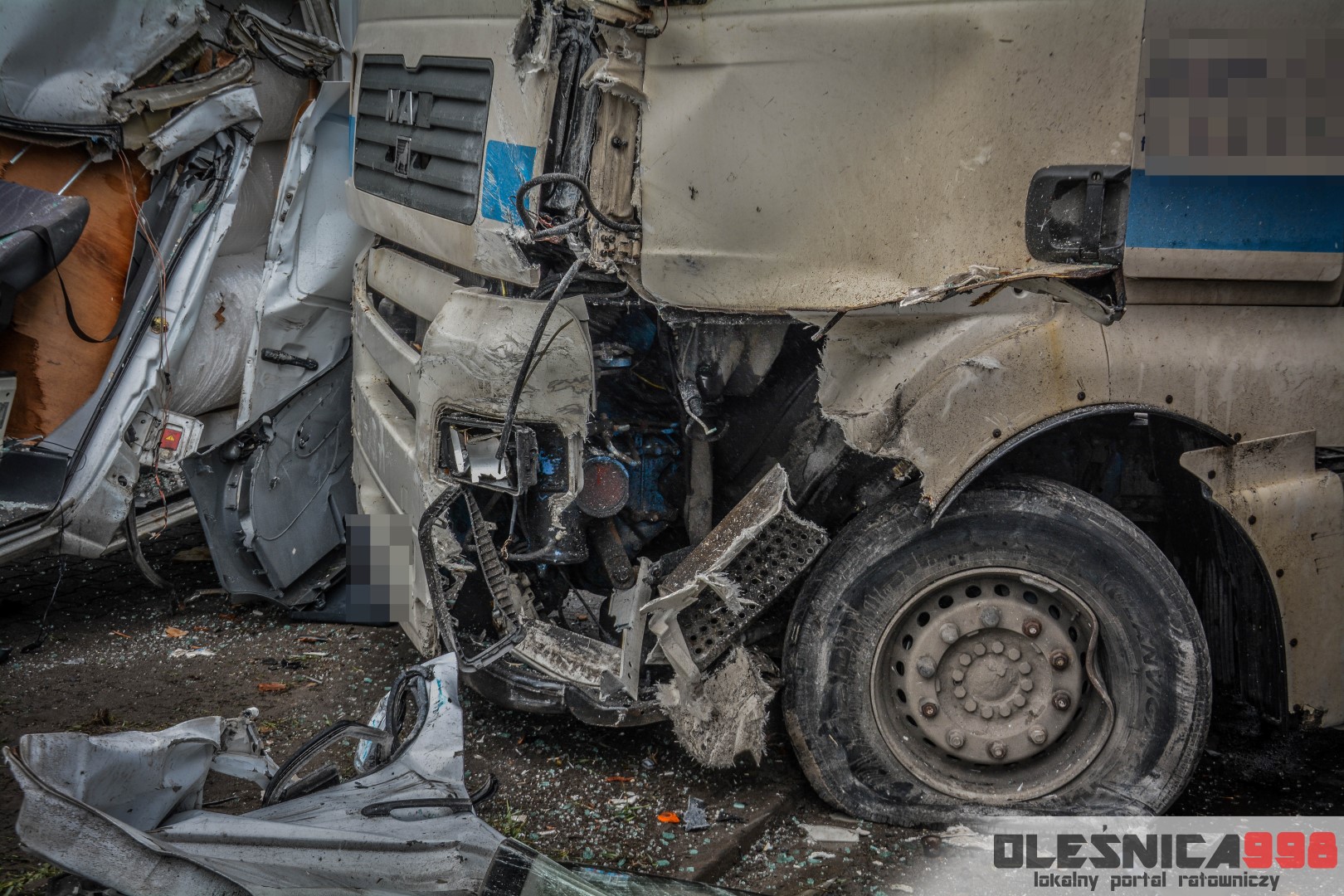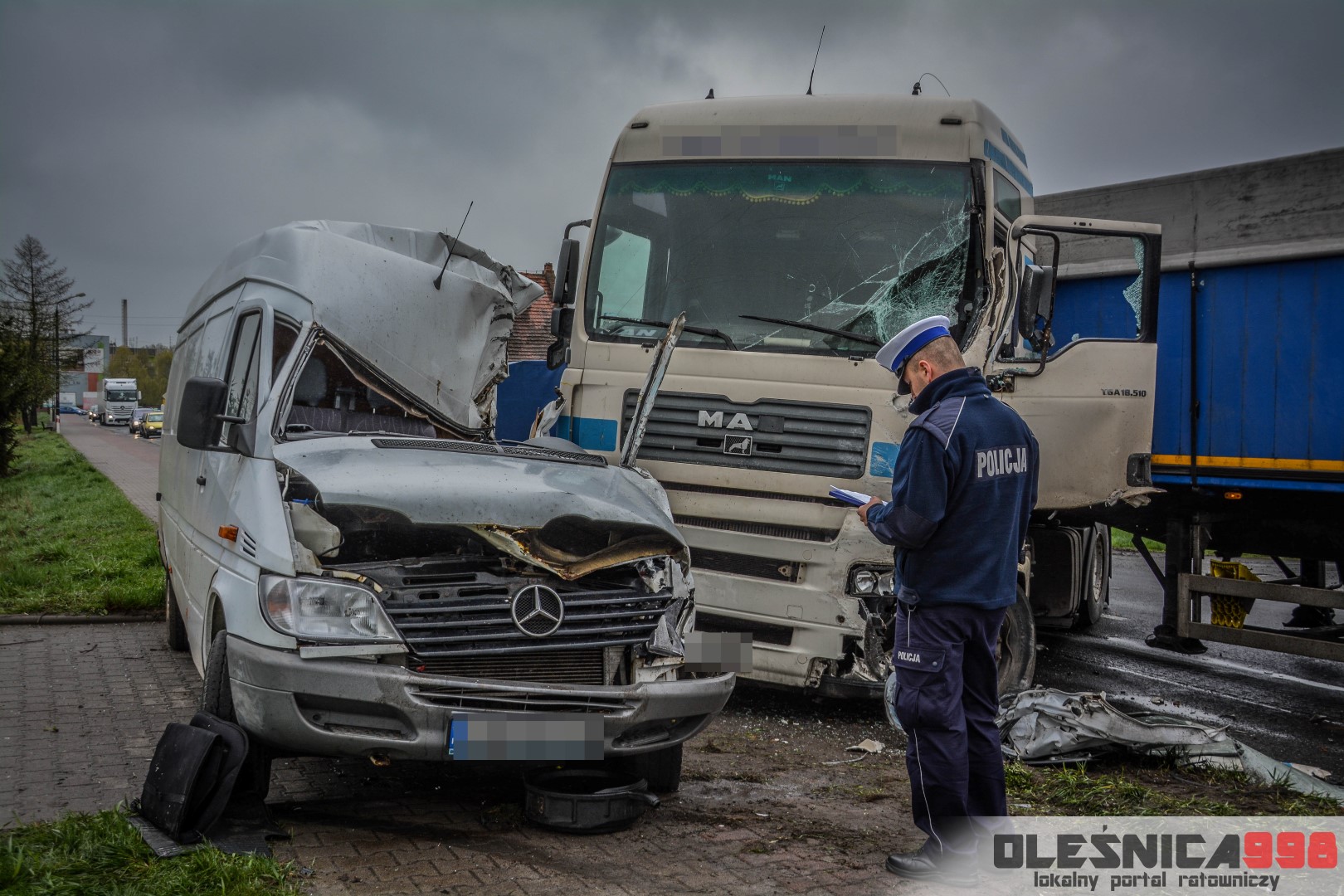 Groźny wypadek przed Bierutowem. Ciężarówka zmiażdżyła busa – FOTO, WIDEO