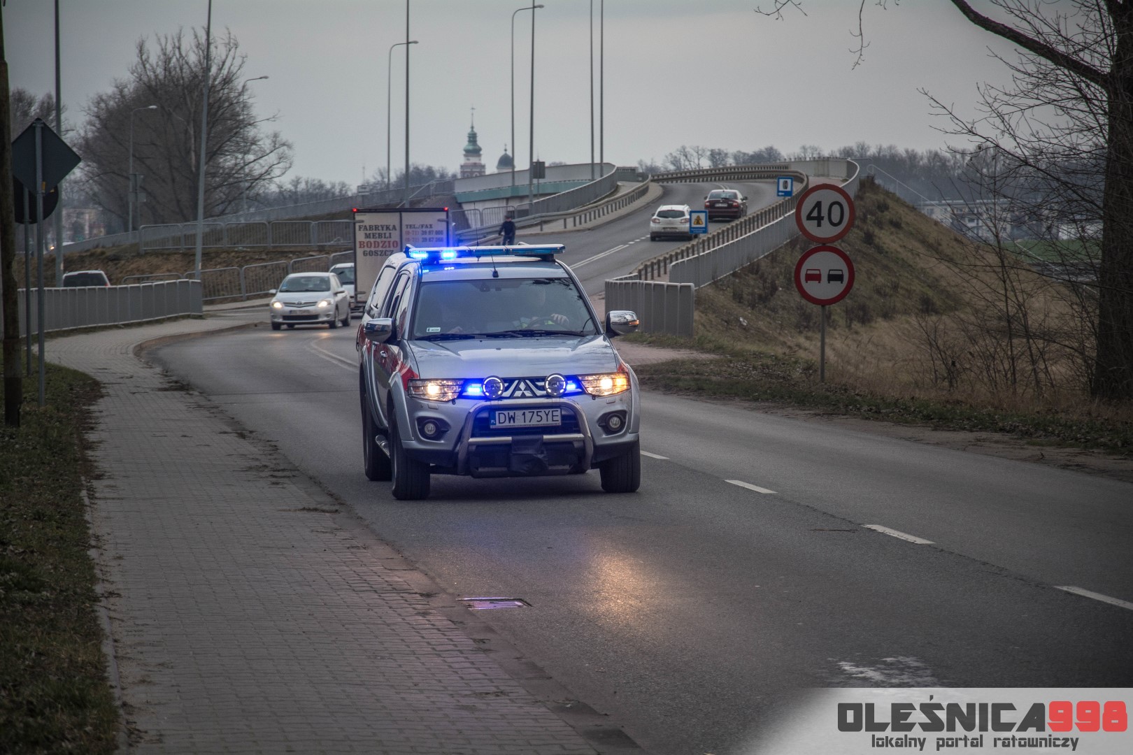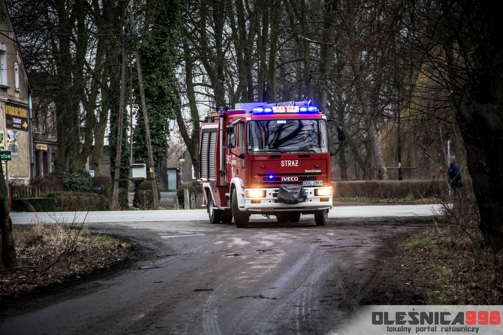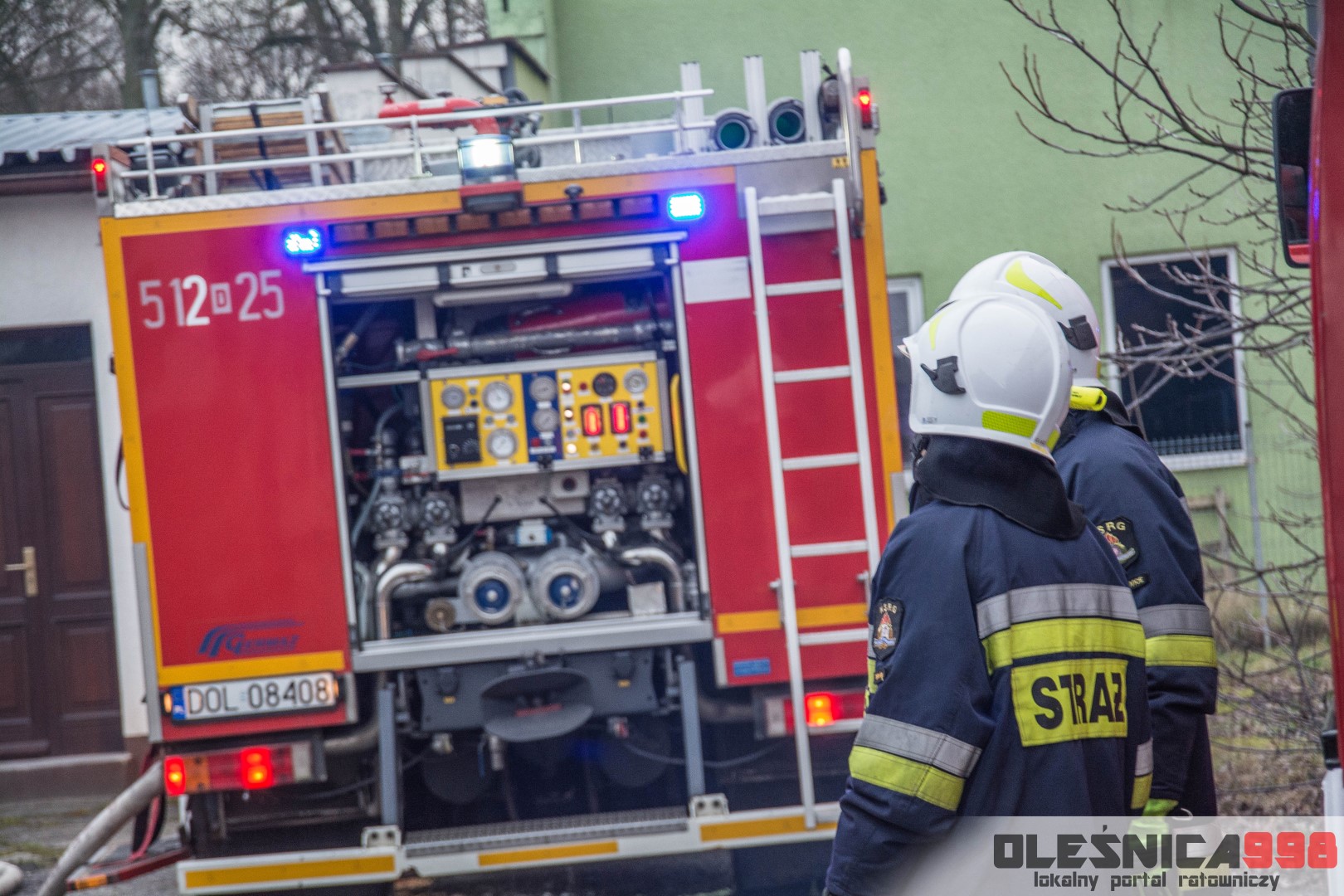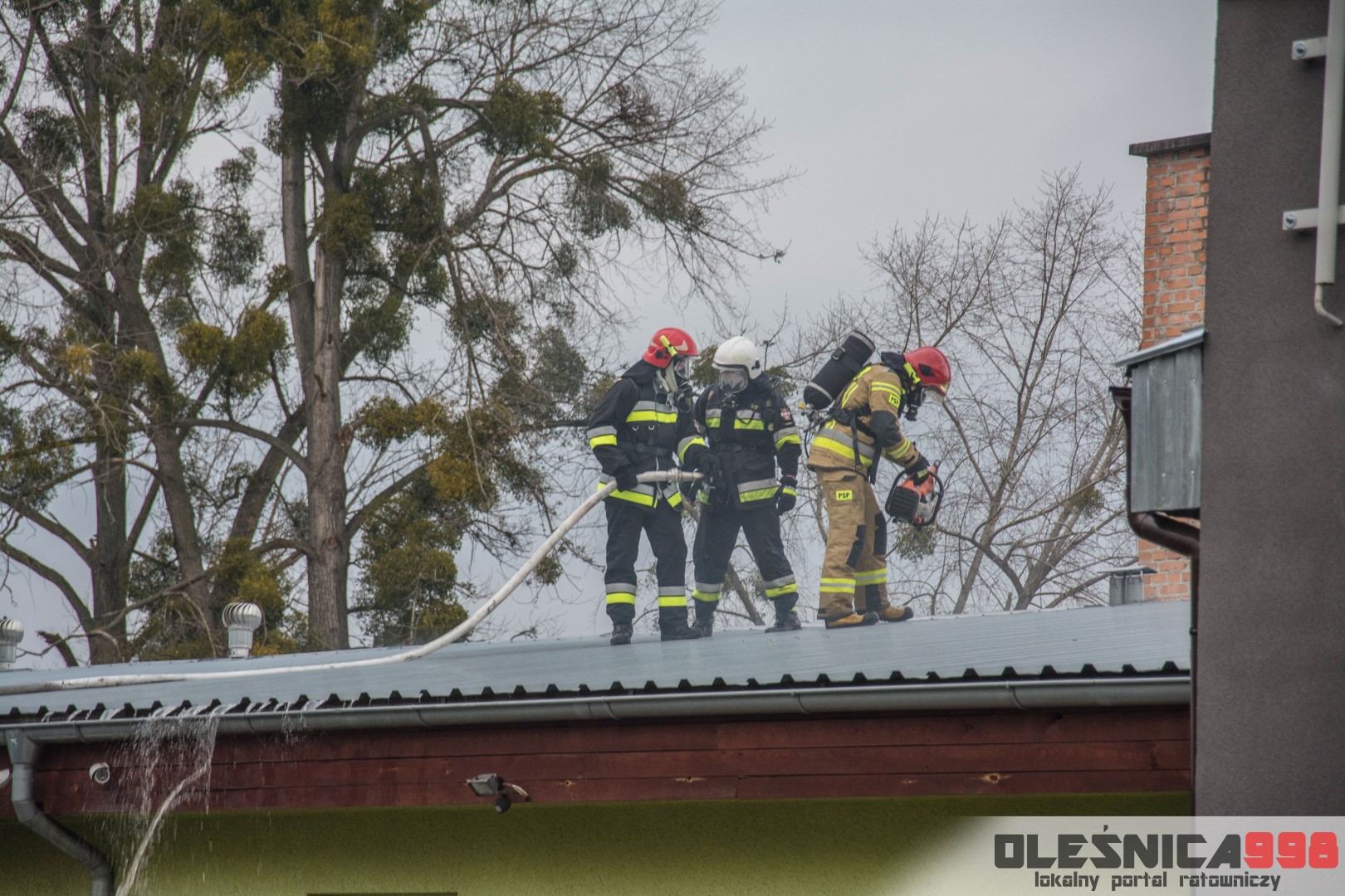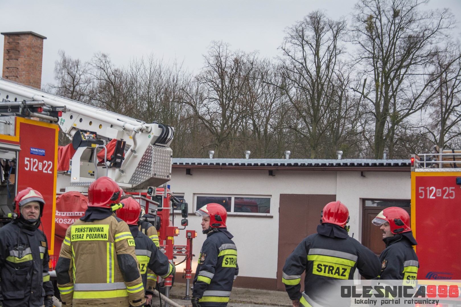 Na miejsce zadysponowane zostały siły i środki z JRG Oleśnica, OSP KSRG Międzybórz, Drołtowice oraz Gołębice, a także z OSP Syców i Stradomia Wierzchnia. W wyniku rozpoznania ustalono, że na dużej powierzchni dachu hali zajmującej się przetwórstwem wyrobów gumowych płonie papa oraz wełna w przestrzeni dachowej pod pokryciem wykonanym z blachy. Dodatkowo ogniem objęta została instalacja fotowoltaiczna.