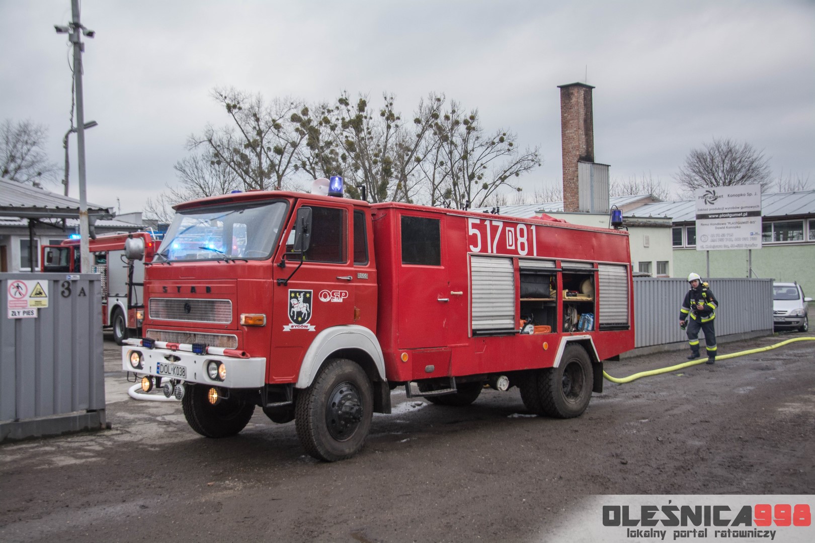 Dziś około godziny 14:30, Dyżurny Operacyjny SK KP PSP w Oleśnicy odebrał zgłoszenie mówiące o pożarze kotłowni w budynku produkcyjnym, na terenie jednego z zakładów, przy ulicy Kolejowej w Sycowie. W pierwszym rzucie na miejsce zostały zadysponowane trzy zastępy z JRG Syców, które po dotarciu stwierdziły, że ogniem objęty jest dach hali produkcyjnej. Na miejsce rozpoczęto dysponowanie dodatkowych sił i środków.