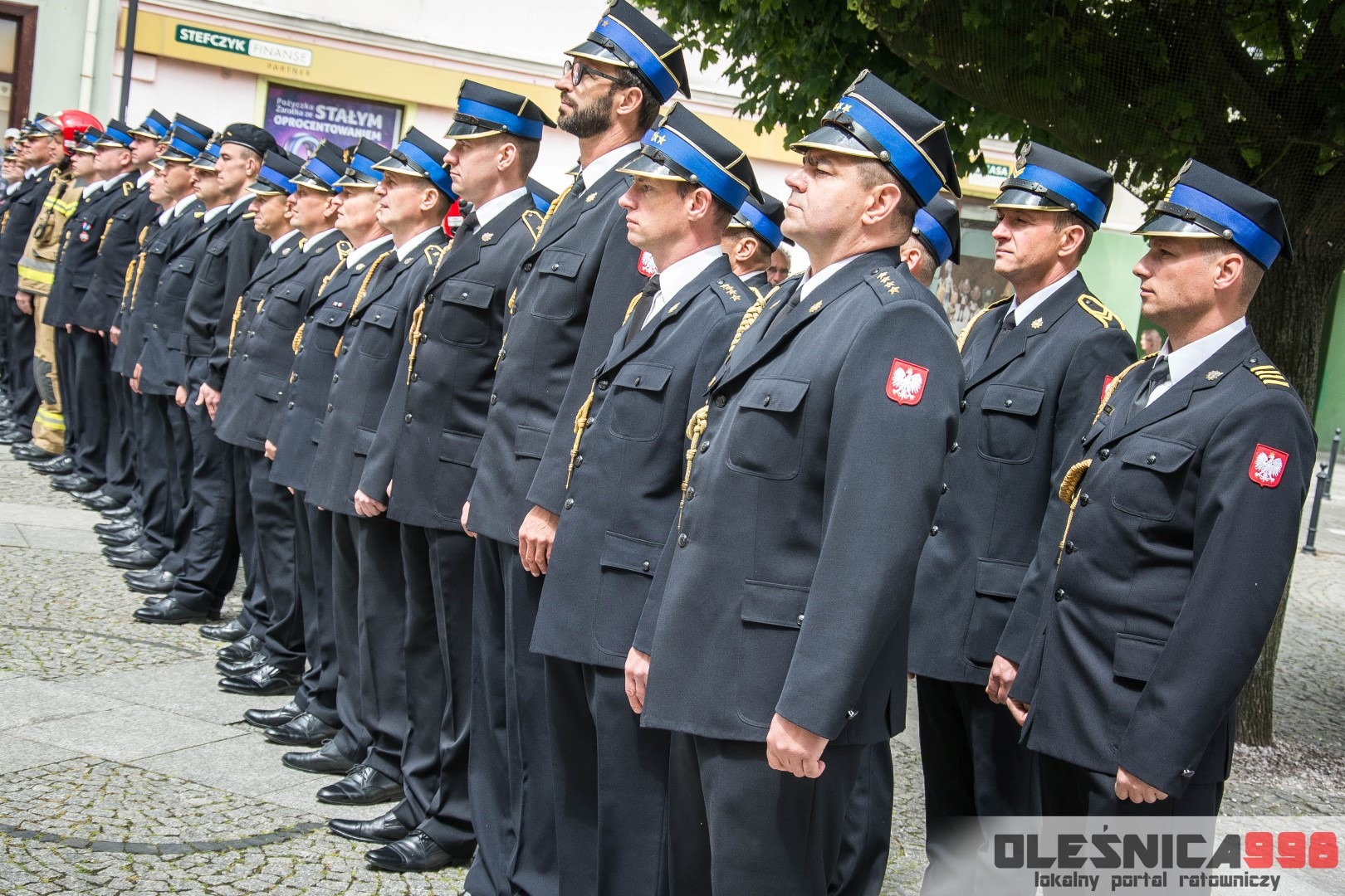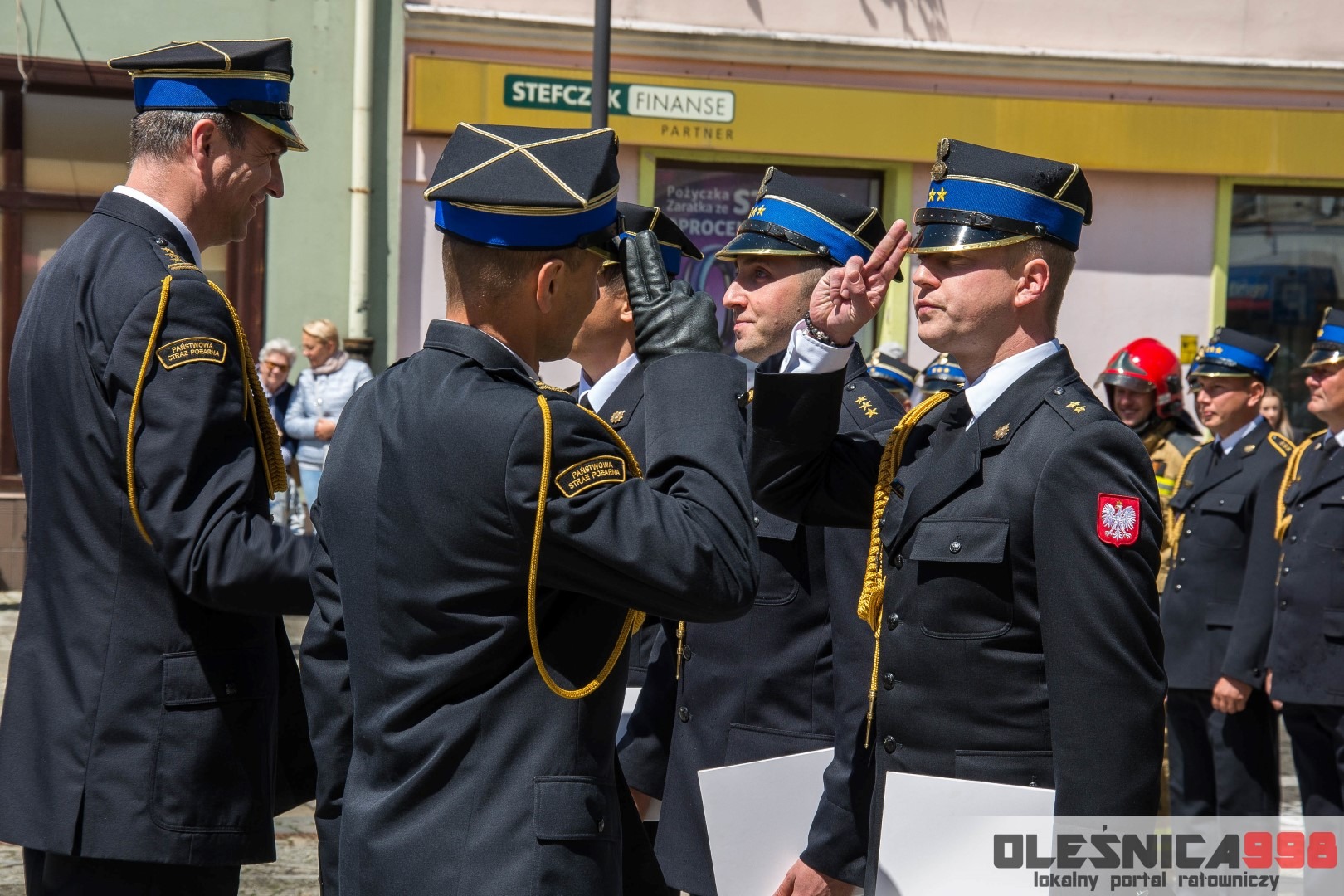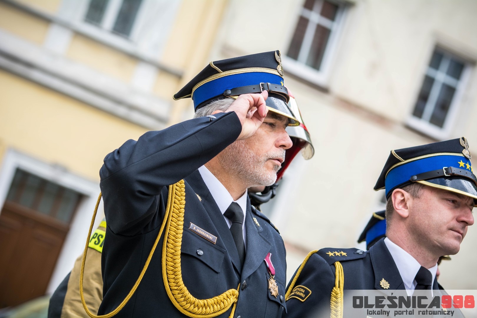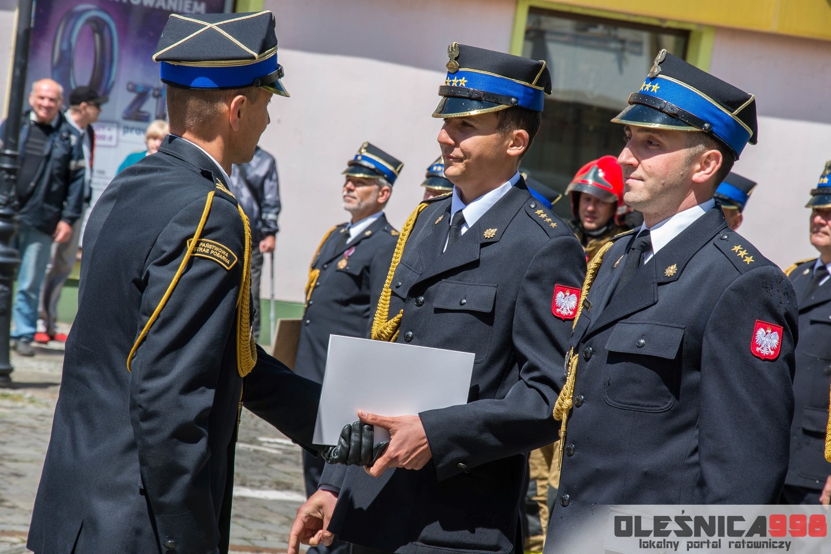 Całość rozpoczęła się od oficjalnego meldunku Dowódcy uroczystości – st. kpt. Piotra Ciemnego, złożonego Komendantowi Powiatowemu Straży Pożarnej w Oleśnicy – st. bryg. Andrzejowy Fischerowi. Następnie po odegraniu hymnu państwowego przystąpiono do uroczystego wręczania aktów nominacji na wyższe stopnie służbowe jak i również odznaczeń.