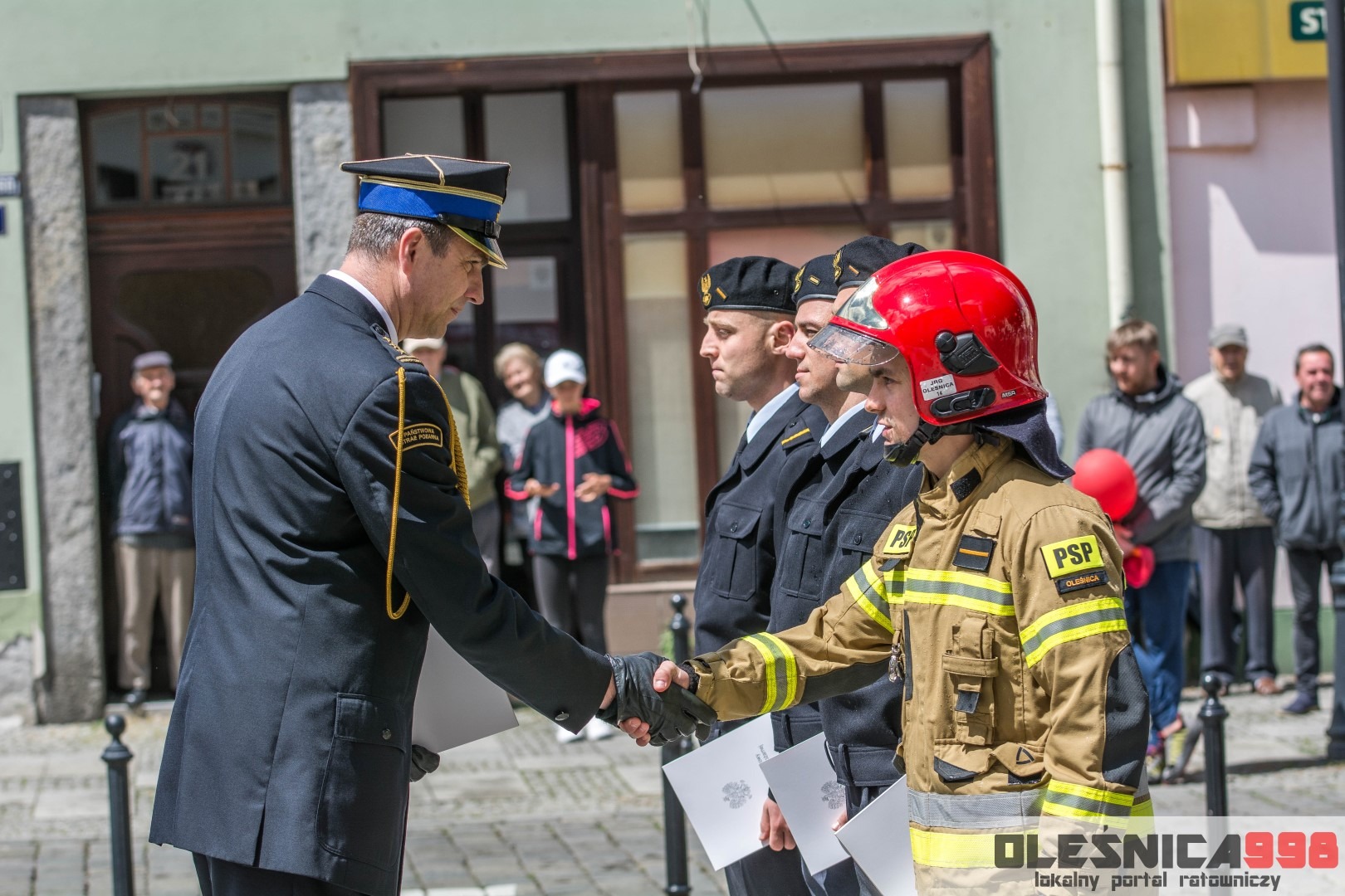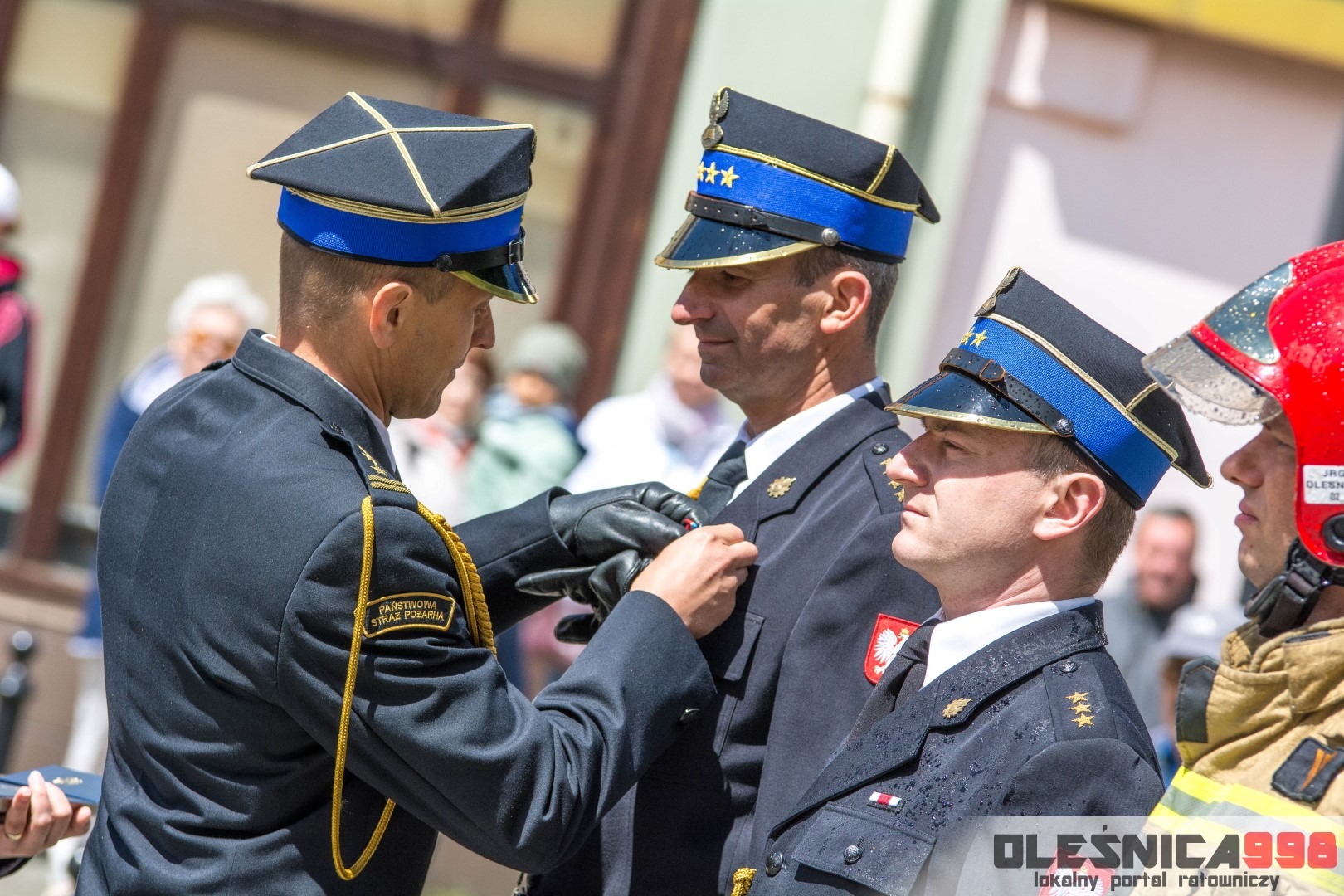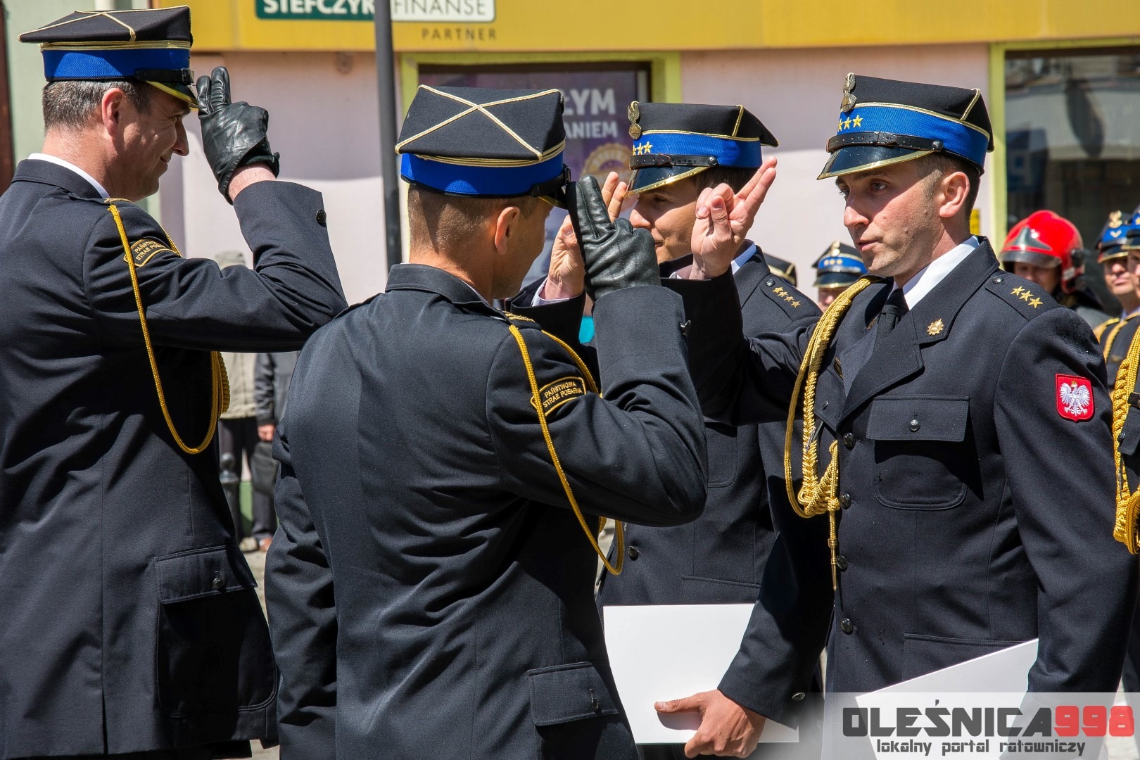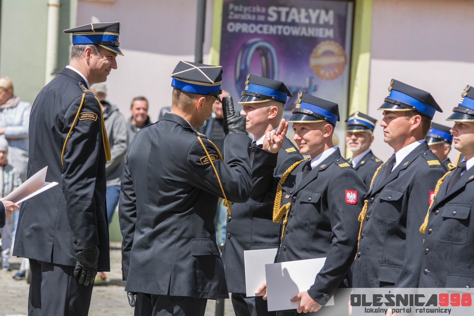 Całość rozpoczęła się od oficjalnego meldunku Dowódcy uroczystości – st. kpt. Piotra Ciemnego, złożonego Komendantowi Powiatowemu Straży Pożarnej w Oleśnicy – st. bryg. Andrzejowy Fischerowi. Następnie po odegraniu hymnu państwowego przystąpiono do uroczystego wręczania aktów nominacji na wyższe stopnie służbowe jak i również odznaczeń.