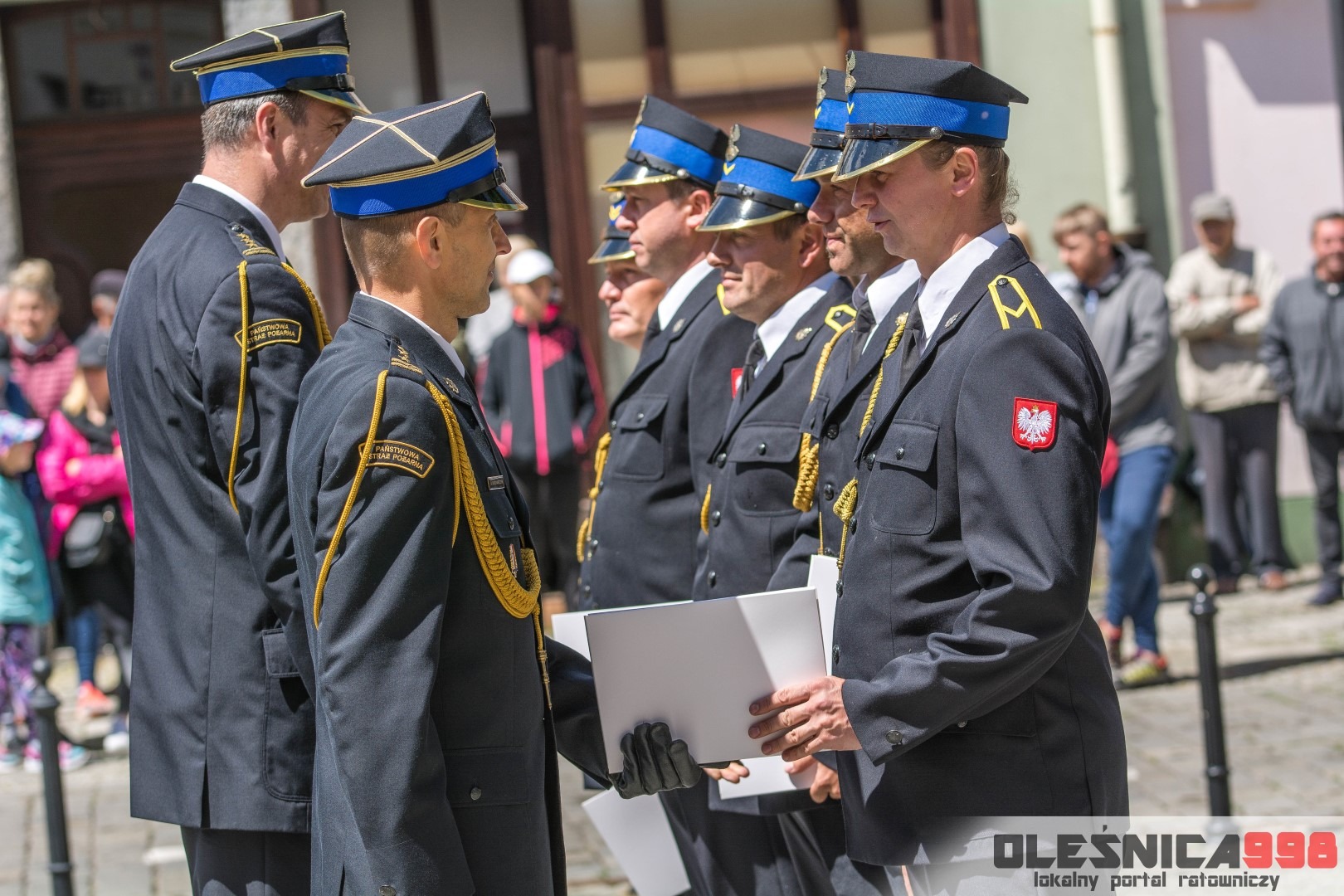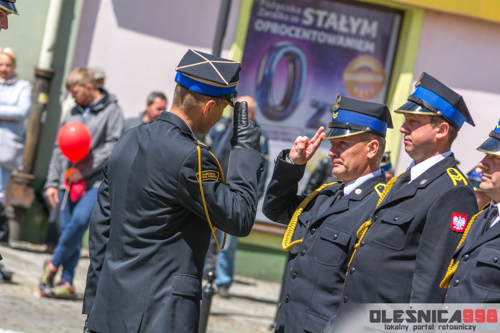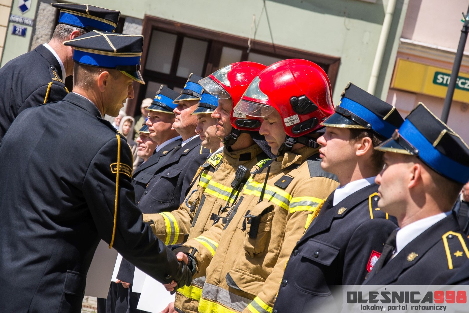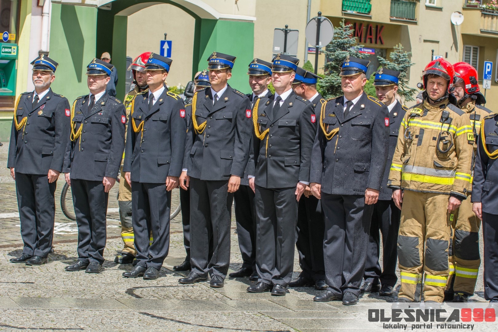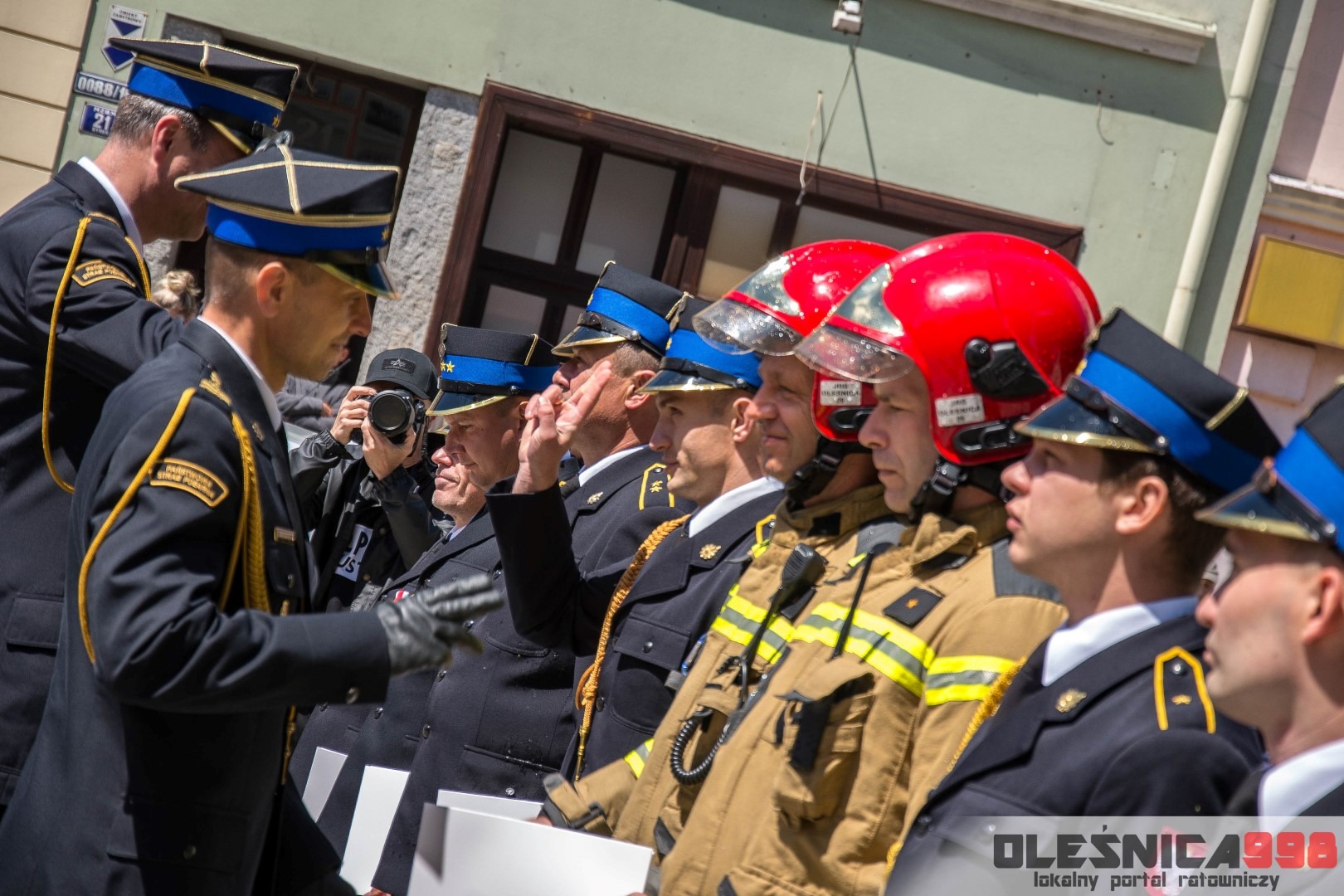 Całość rozpoczęła się od oficjalnego meldunku Dowódcy uroczystości – st. kpt. Piotra Ciemnego, złożonego Komendantowi Powiatowemu Straży Pożarnej w Oleśnicy – st. bryg. Andrzejowy Fischerowi. Następnie po odegraniu hymnu państwowego przystąpiono do uroczystego wręczania aktów nominacji na wyższe stopnie służbowe jak i również odznaczeń.