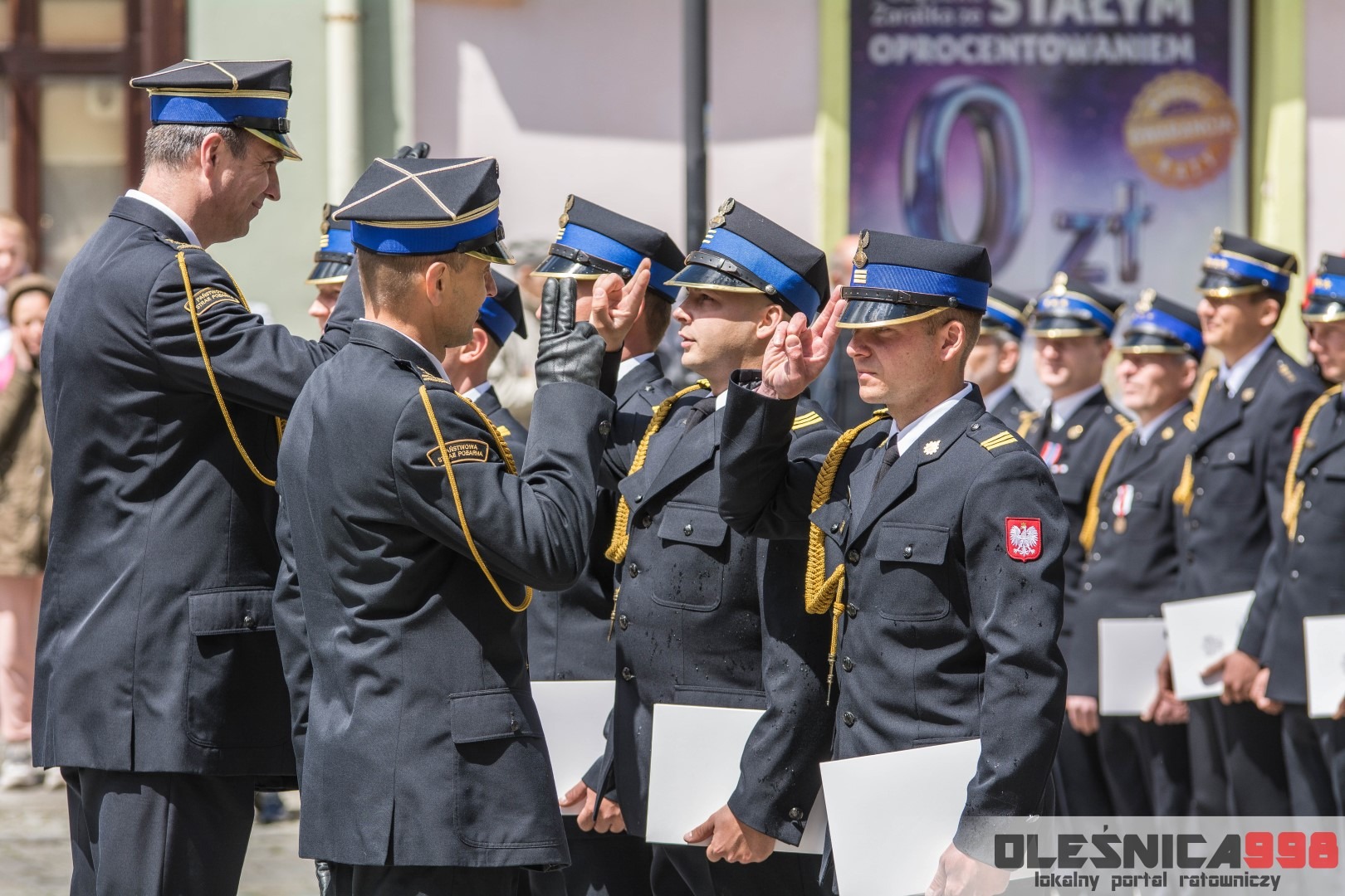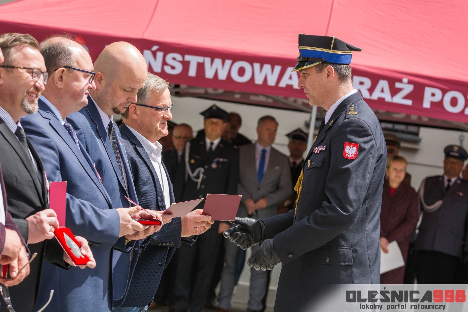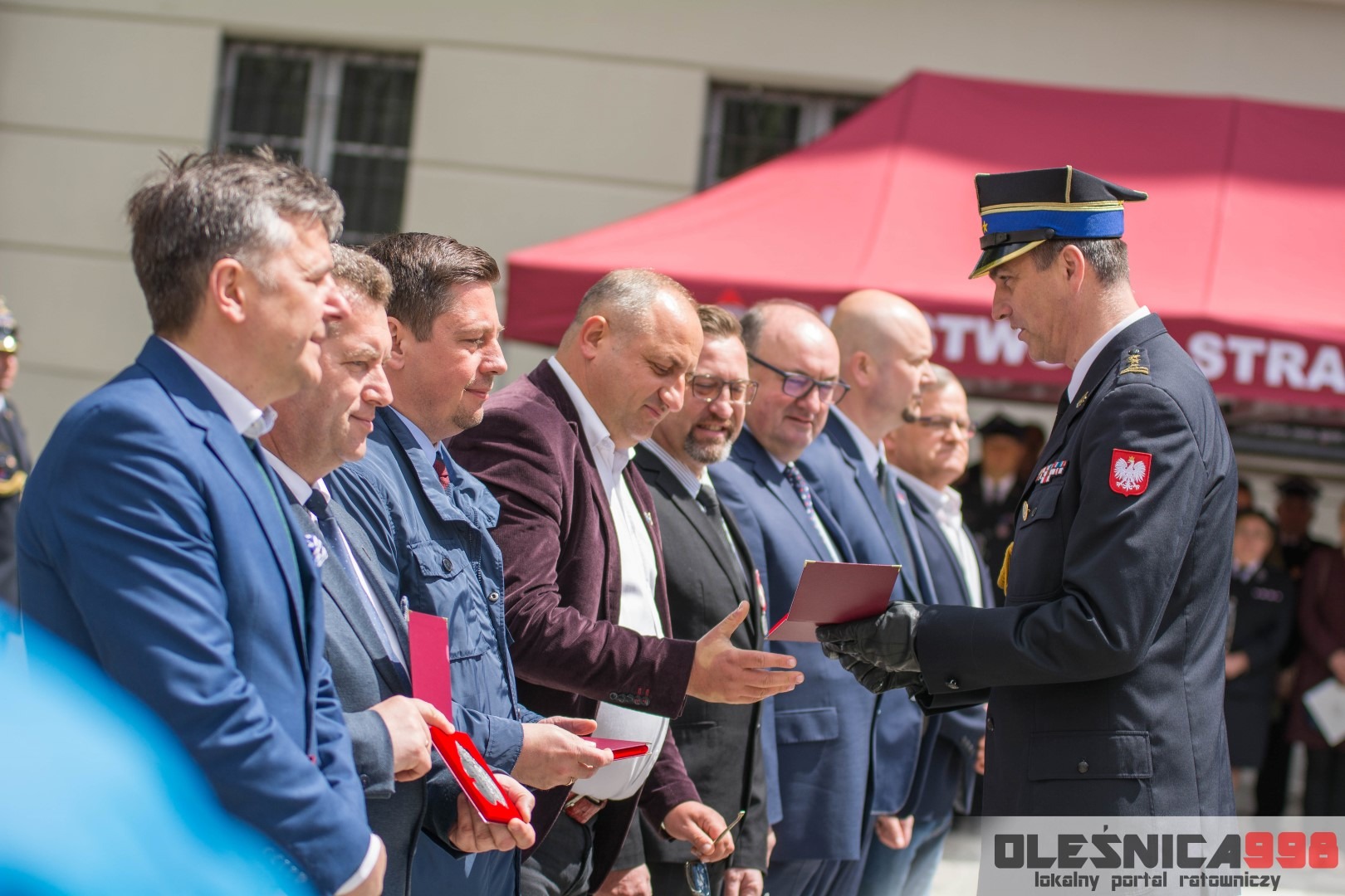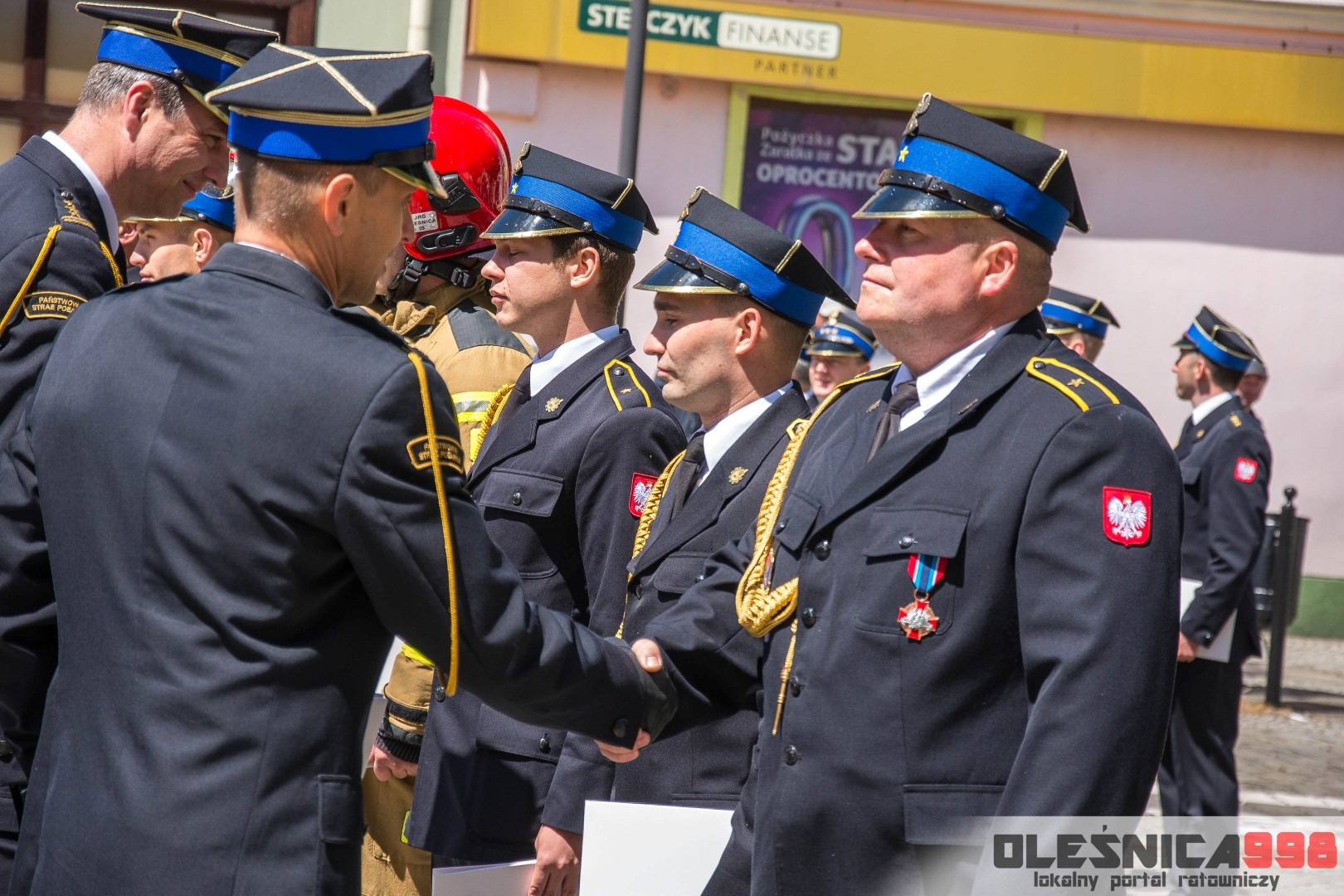 Całość rozpoczęła się od oficjalnego meldunku Dowódcy uroczystości – st. kpt. Piotra Ciemnego, złożonego Komendantowi Powiatowemu Straży Pożarnej w Oleśnicy – st. bryg. Andrzejowy Fischerowi. Następnie po odegraniu hymnu państwowego przystąpiono do uroczystego wręczania aktów nominacji na wyższe stopnie służbowe jak i również odznaczeń.