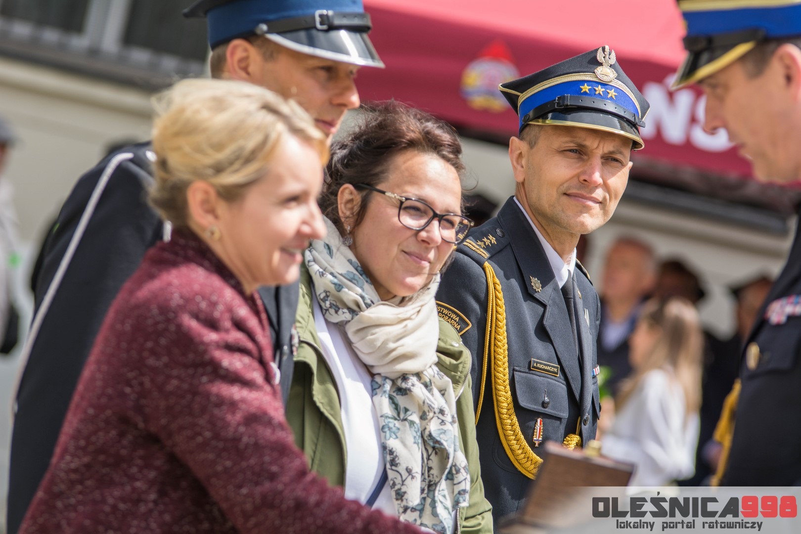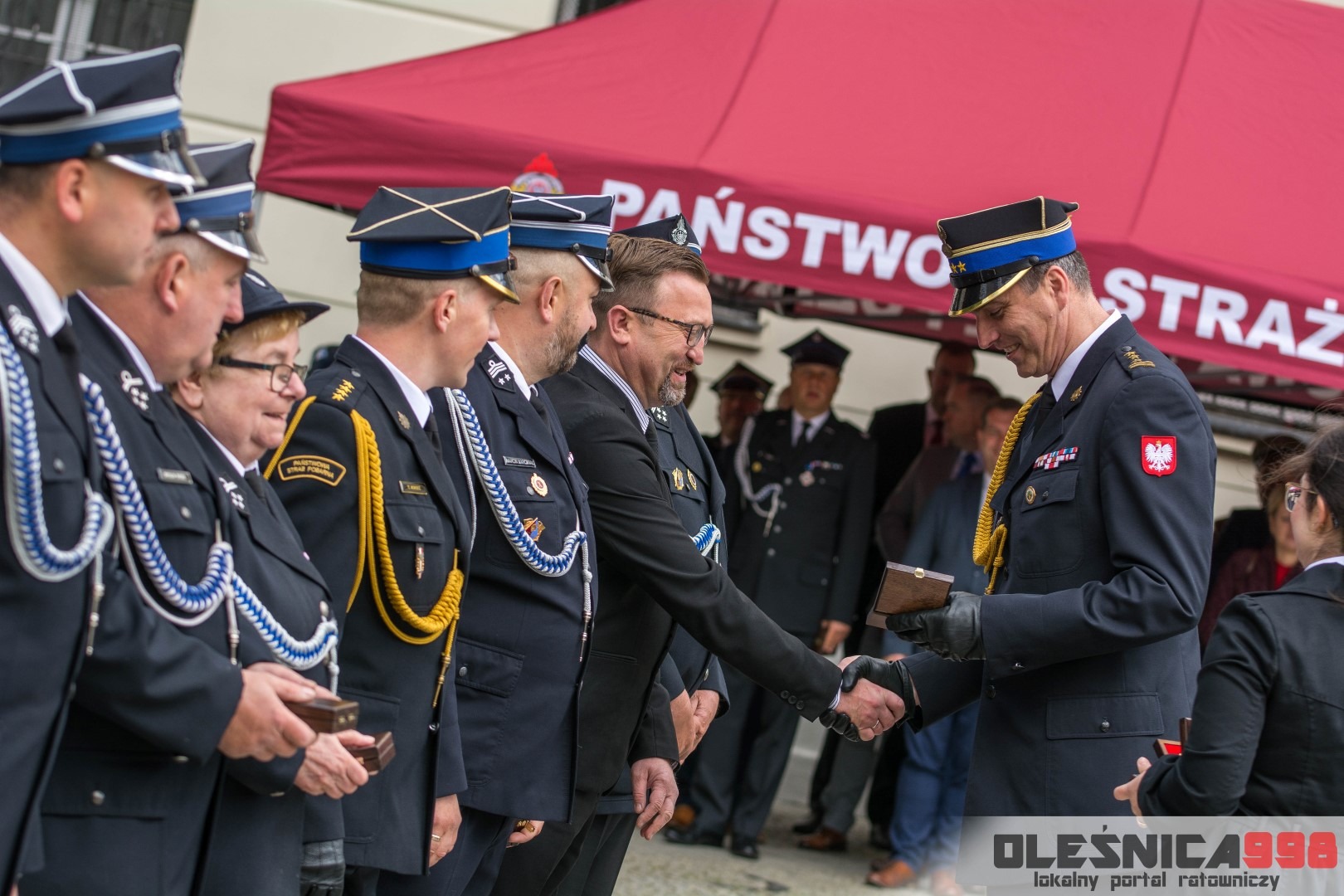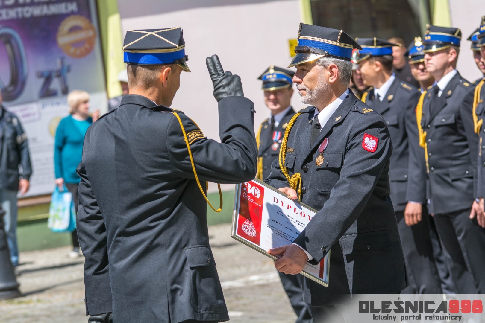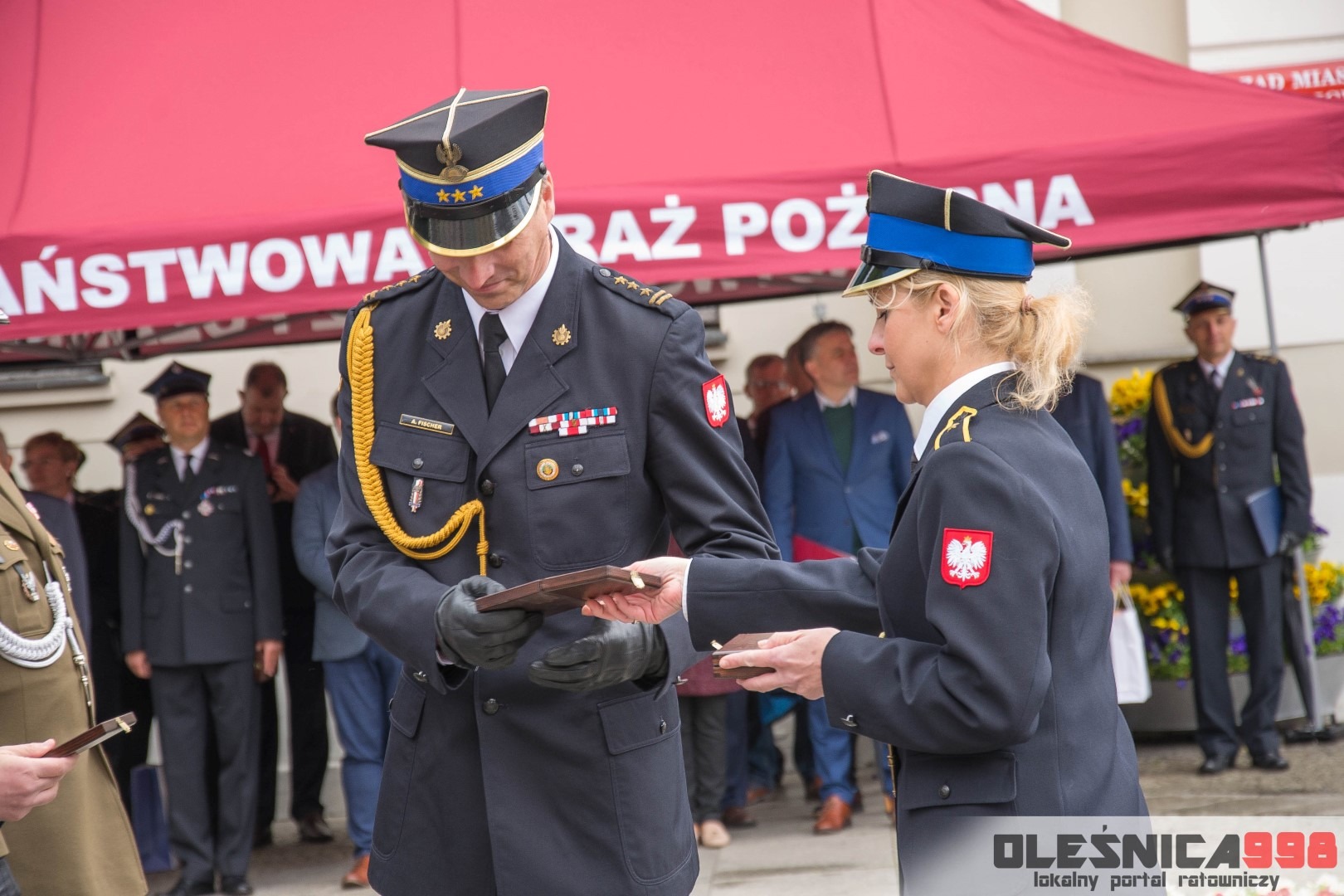 Dziś, punktualnie w południe, równo z rozbrzmiewającym hejnałem Oleśnicy, rozpoczęła się uroczystość Powiatowych Obchodów Dnia Strażaka. Wydarzenie było o tyle szczególne, że tego roku formacja Państwowej Straży Pożarnej obchodziła 30-lecie swojego istnienia. Uroczystość była okazją do wręczenia awansów na wyższe stopnie służbowe, wyróżnień oraz podziękowań za działalność na rzecz ochrony przeciwpożarowej.