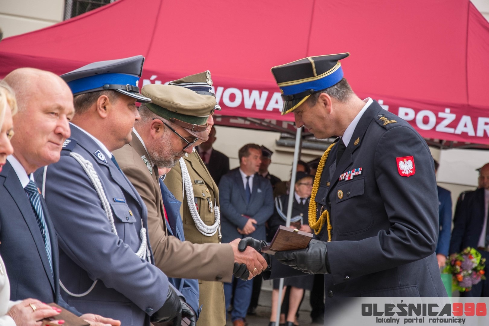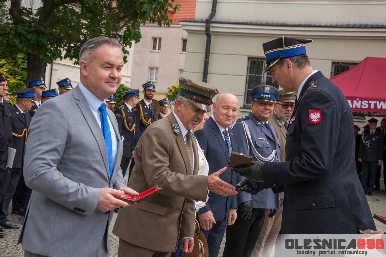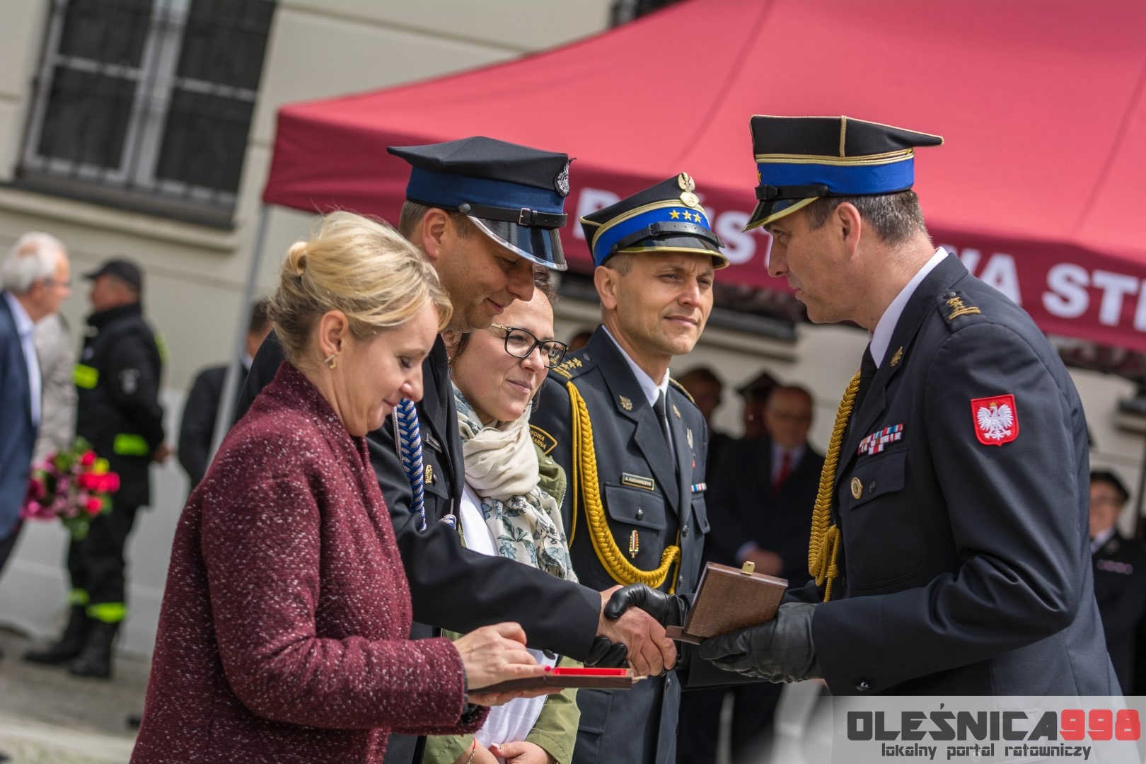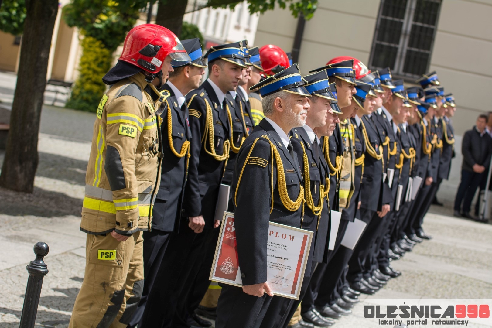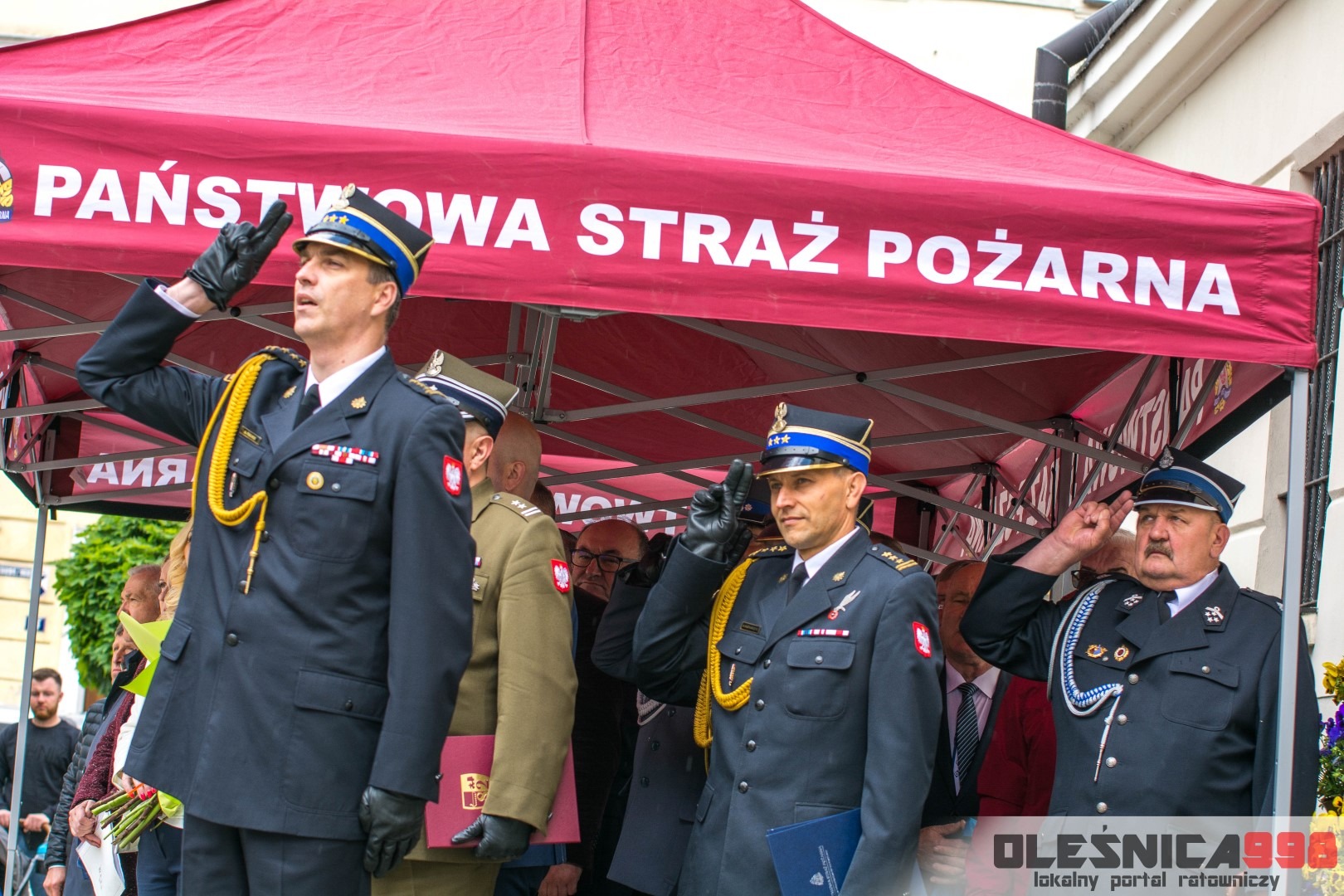 Dziś, punktualnie w południe, równo z rozbrzmiewającym hejnałem Oleśnicy, rozpoczęła się uroczystość Powiatowych Obchodów Dnia Strażaka. Wydarzenie było o tyle szczególne, że tego roku formacja Państwowej Straży Pożarnej obchodziła 30-lecie swojego istnienia. Uroczystość była okazją do wręczenia awansów na wyższe stopnie służbowe, wyróżnień oraz podziękowań za działalność na rzecz ochrony przeciwpożarowej.