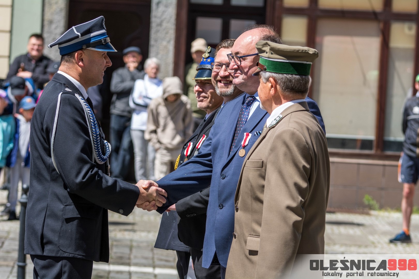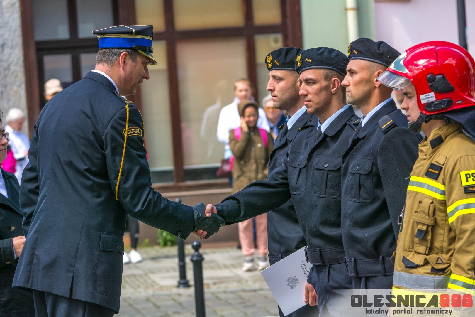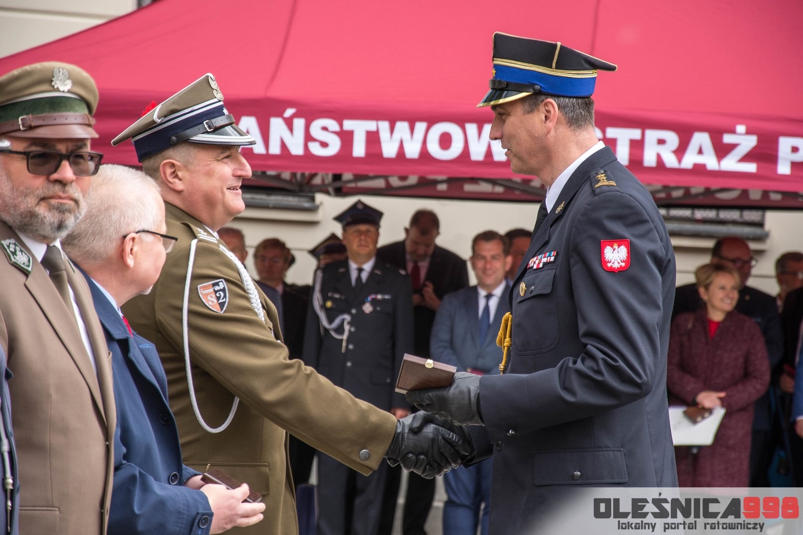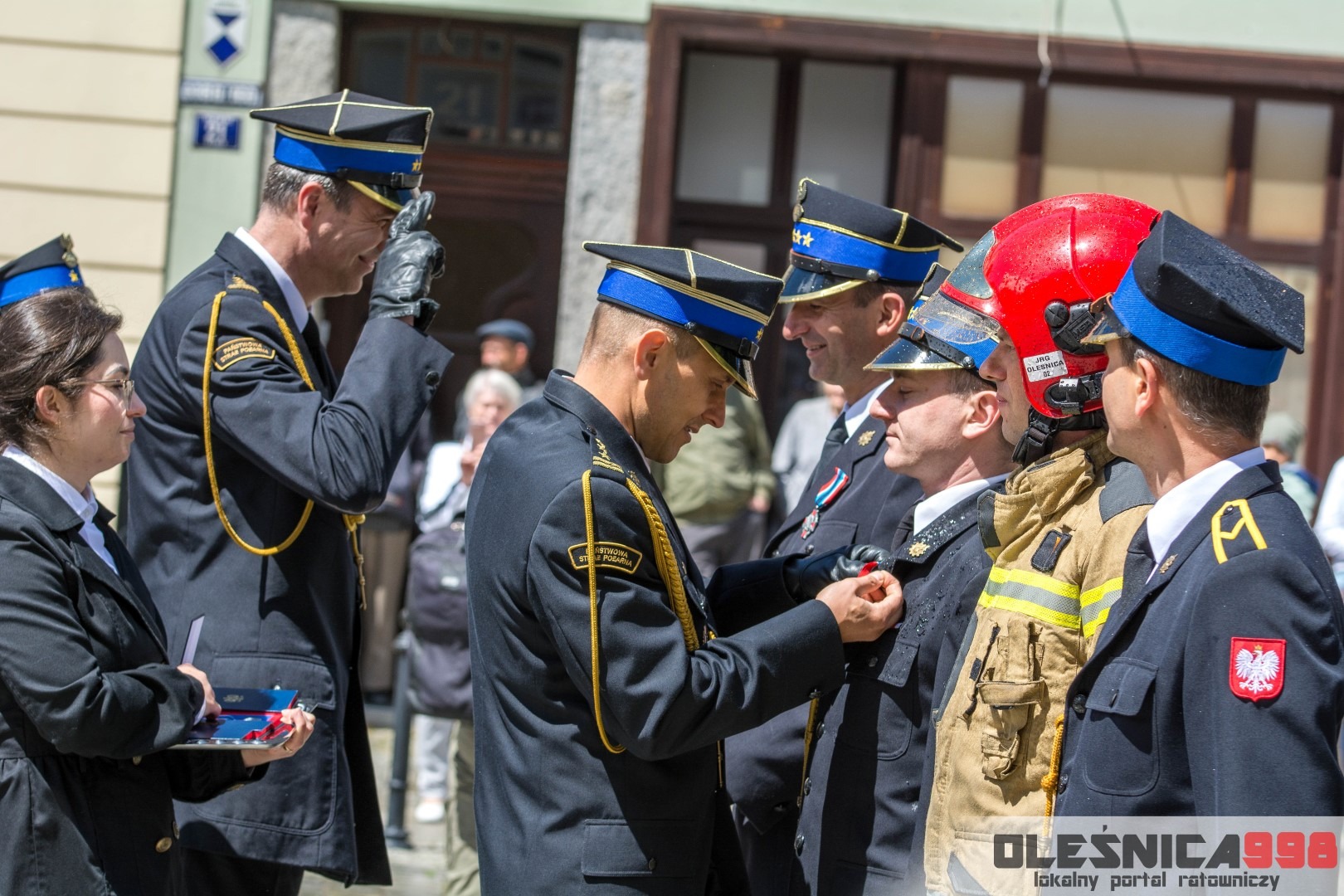 Dziś, punktualnie w południe, równo z rozbrzmiewającym hejnałem Oleśnicy, rozpoczęła się uroczystość Powiatowych Obchodów Dnia Strażaka. Wydarzenie było o tyle szczególne, że tego roku formacja Państwowej Straży Pożarnej obchodziła 30-lecie swojego istnienia. Uroczystość była okazją do wręczenia awansów na wyższe stopnie służbowe, wyróżnień oraz podziękowań za działalność na rzecz ochrony przeciwpożarowej.