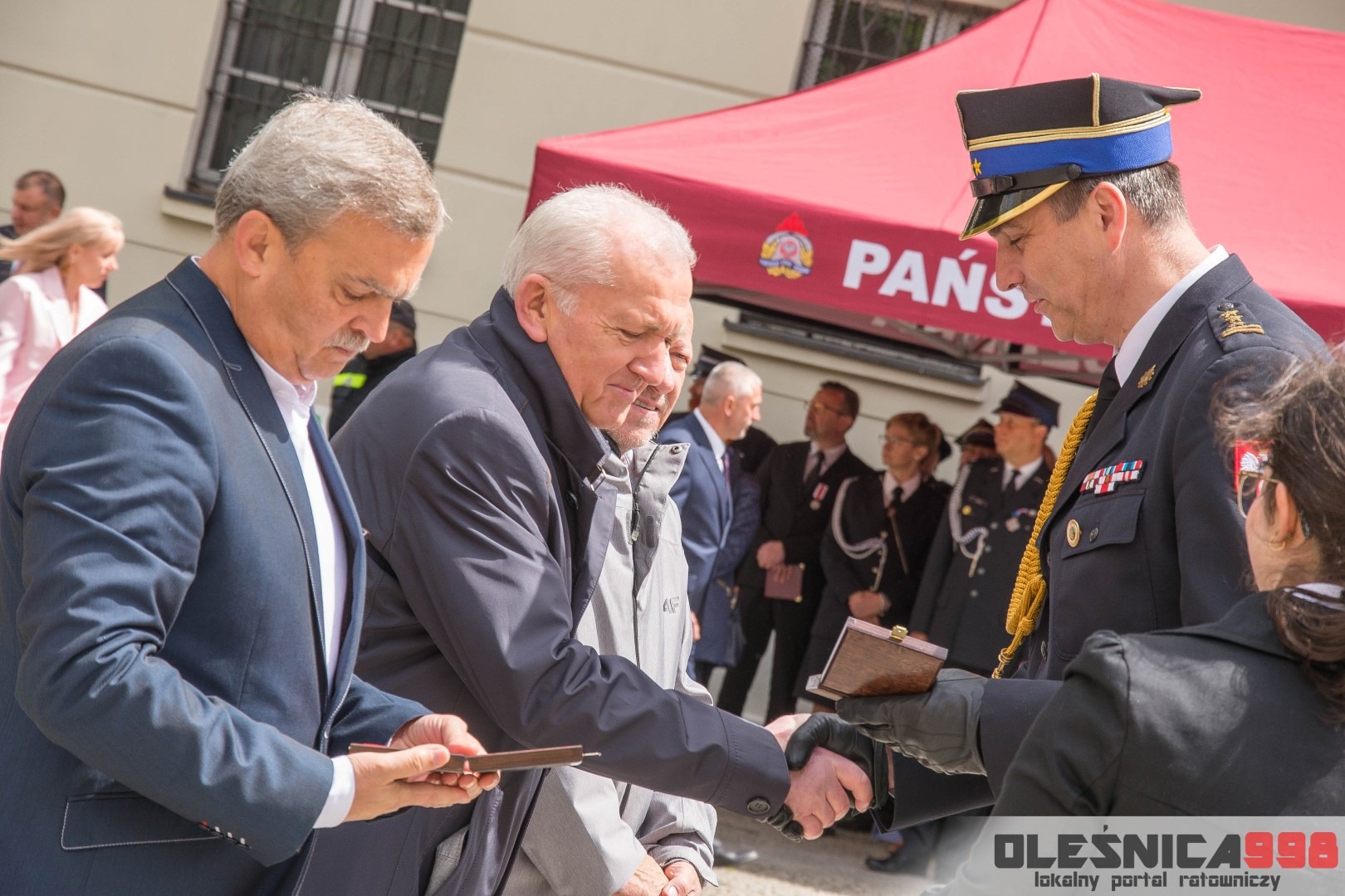 Z okazji jubileuszu 30-lecia Państwowej Straży Pożarnej, Komendant Główny Państwowej Straży Pożarnej uhonorował strażaków, którzy co najmniej 30 lat pełnią służbę w PSP. W oleśnickie Komendzie pamiątkowym dyplomem oraz medalem wyróżniony został mł. bryg. Dariusz Jagodziński.