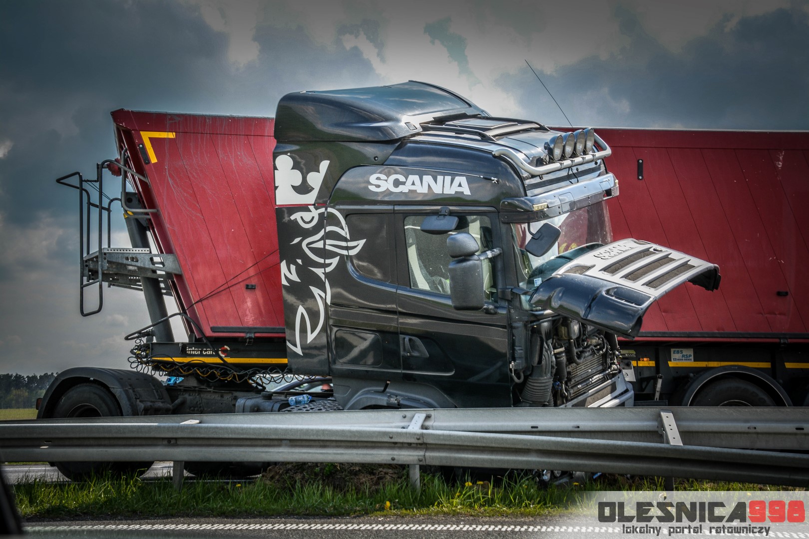 Jak udało nam się ustalić, do zdarzenia doszło najprawdopodobniej przez blokadę mostu, do której doszło w naczepie ciągniętej przez ciężarową Scanię. Na skutek tego zestaw wpadł w poślizg a następnie „złamał się”, przeciął lewy pas ruchu a finalnie wylądował na barierach energochłonnych. W pojeździe uszkodzony został zbiornik paliwa, doszło do niewielkiego wycieku oleju napędowego.