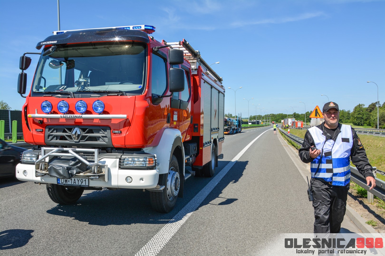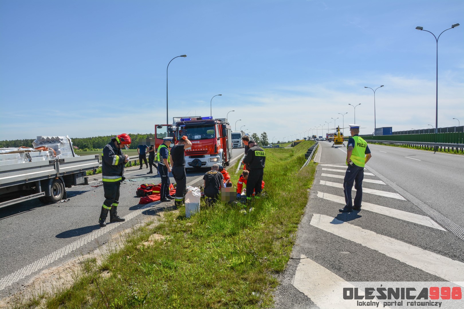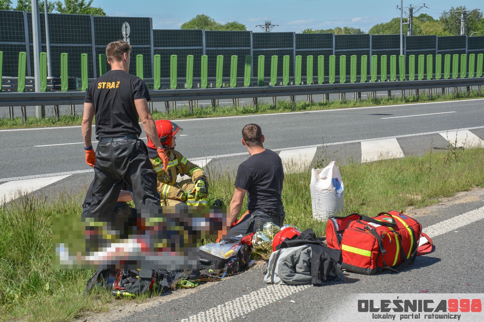W uszkodzonym dostawczaku doszło do wycieku płynów eksploatacyjnych, których rozlewisko zostało zabezpieczone przy użyciu sorbentu. Strażacy odłączyli także akumulator w uszkodzonym pojeździe oraz zabezpieczyli go przed poruszaniem się. Mundurowi w późniejszej fazie działań zablokowali ruch na pasie jezdni celem przyjęcia śmigłowca Lotniczego Pogotowia Ratunkowego oraz zabezpieczyli dla niego lądowisko.