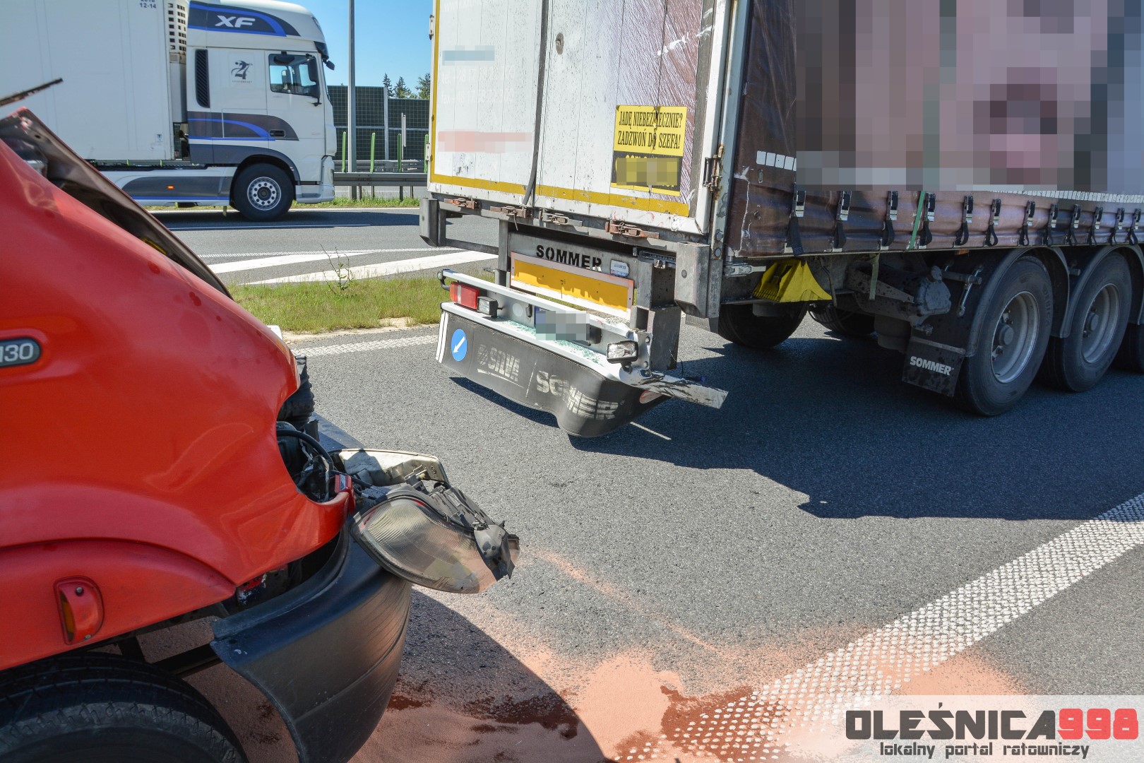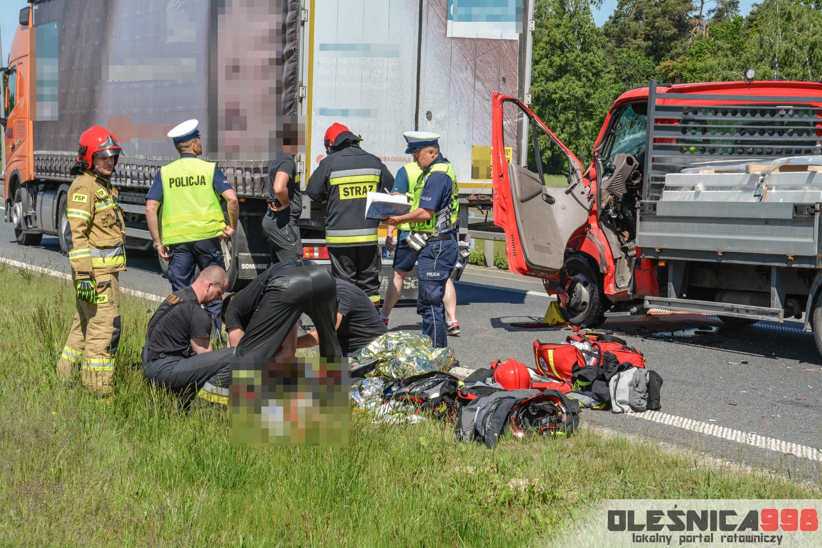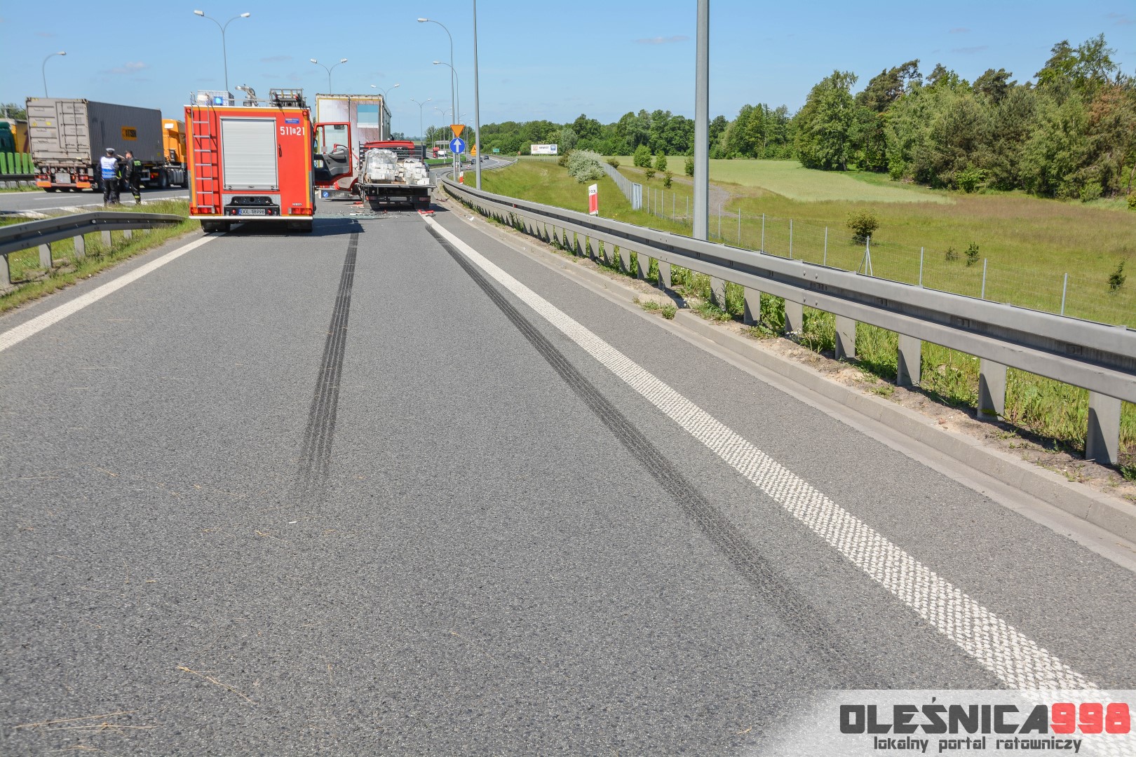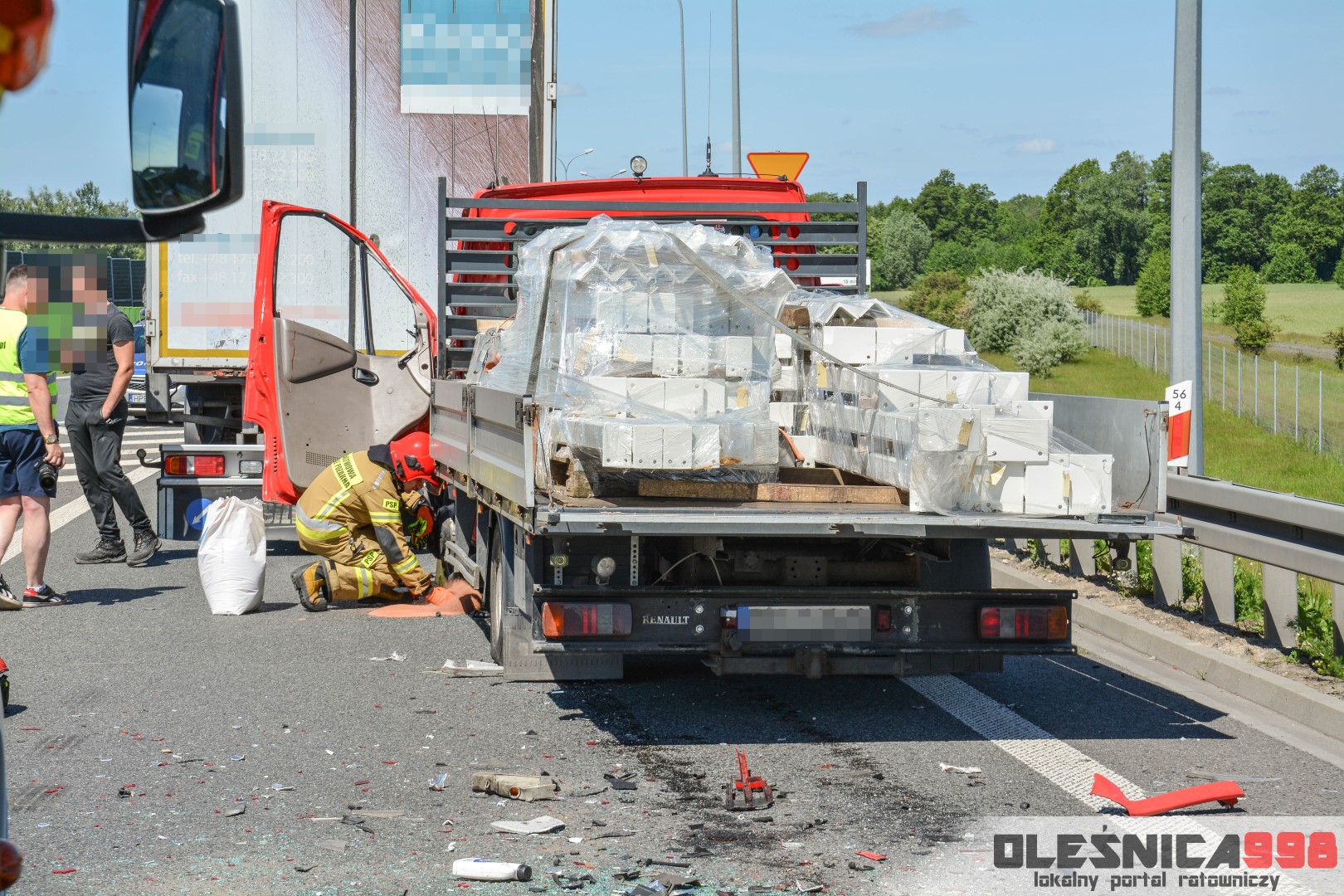 Po godzinie 10:30 na trasie S8 doszło do kolejnego poważnego w skutkach zdarzenia drogowego. Tym razem na samym węźle Oleśnica Północ zderzyły się ciężarowe Volvo oraz dostawcze Renault, którego kierowca został ciężko ranny. Po otrzymaniu informacji o zdarzeniu, Dyżurny Stanowiska Kierowania przedysponował na miejsce dwa zastępy JRG Oleśnica działające przy poprzednim zdarzeniu, do którego doszło kilometr dalej a także ponownie zadysponował samochód ratownictwa technicznego z JRG Syców. Informację o konieczności interwencji przekazano również do wrocławskiej filii Lotniczego Pogotowia Ratunkowego. Na miejsce skierowano także patrol Policjantów Wydziału Ruchu Drogowego.
