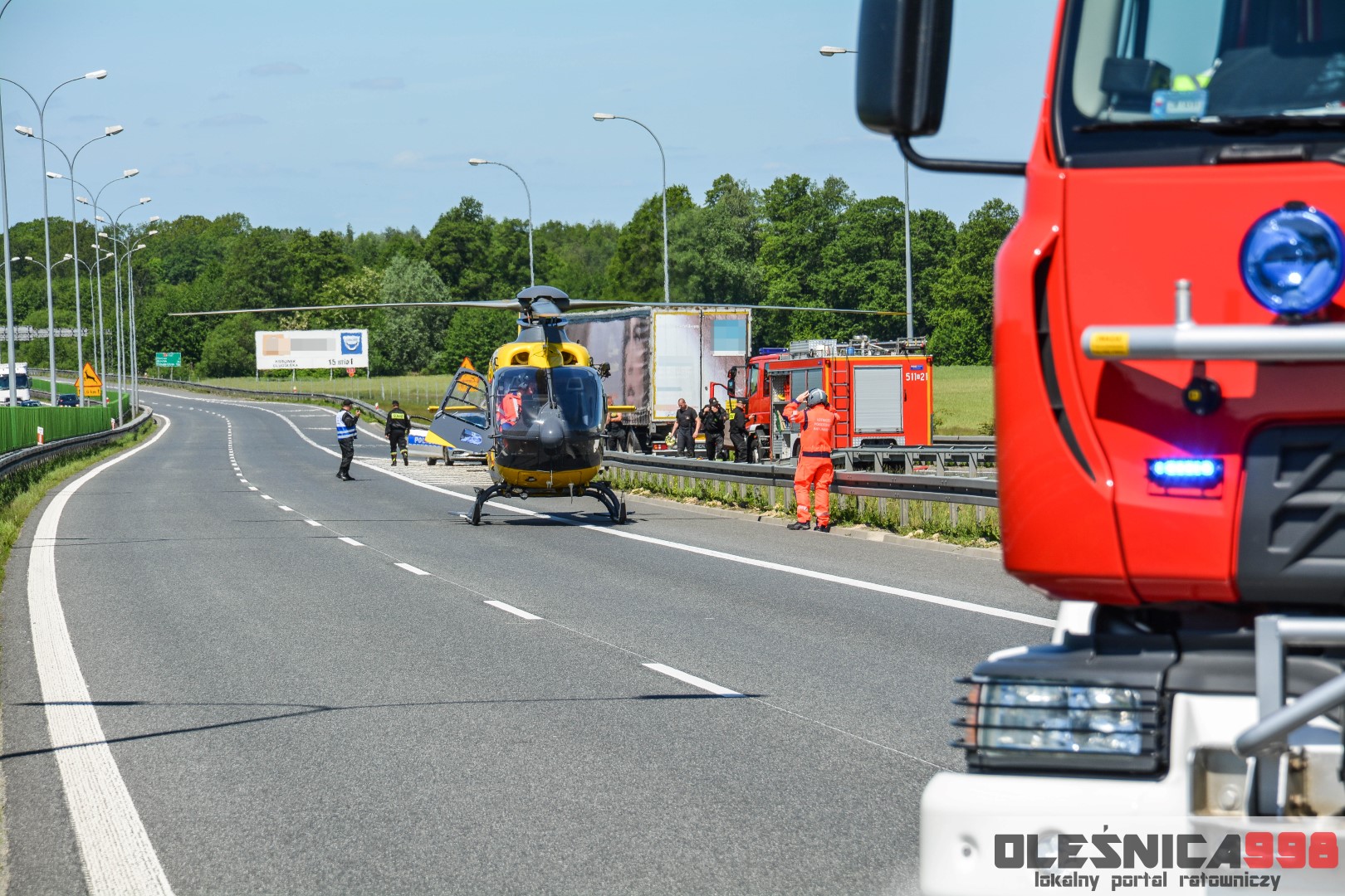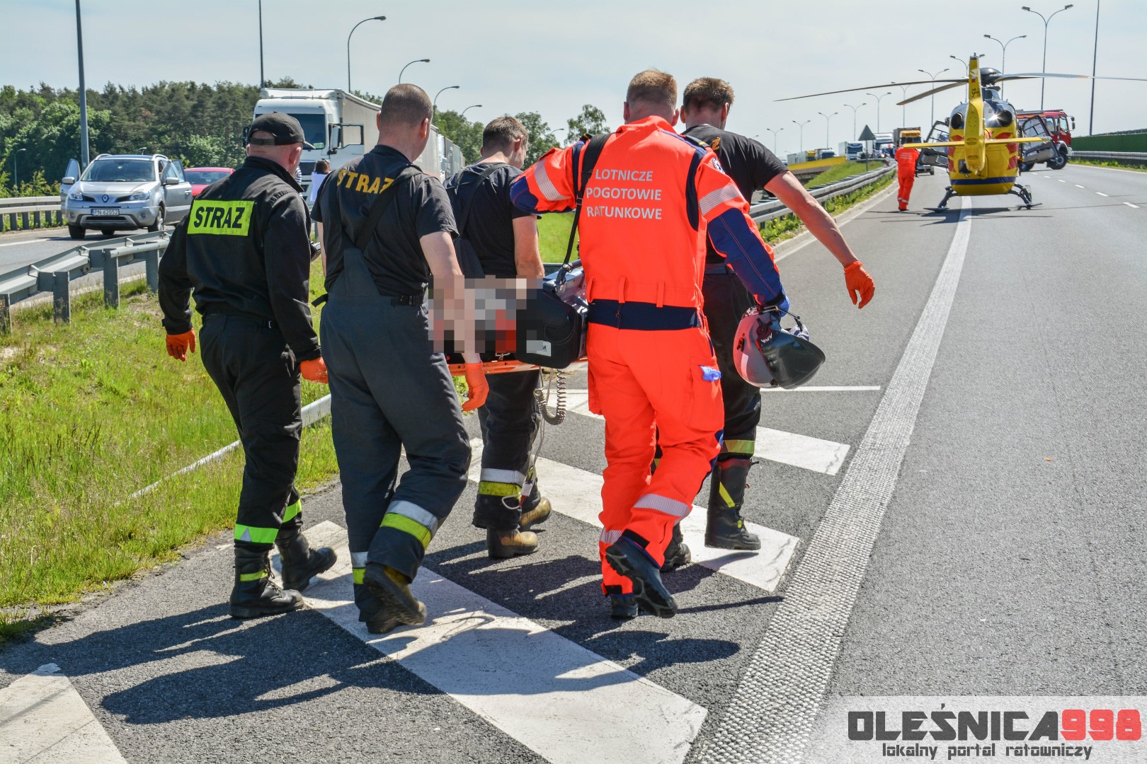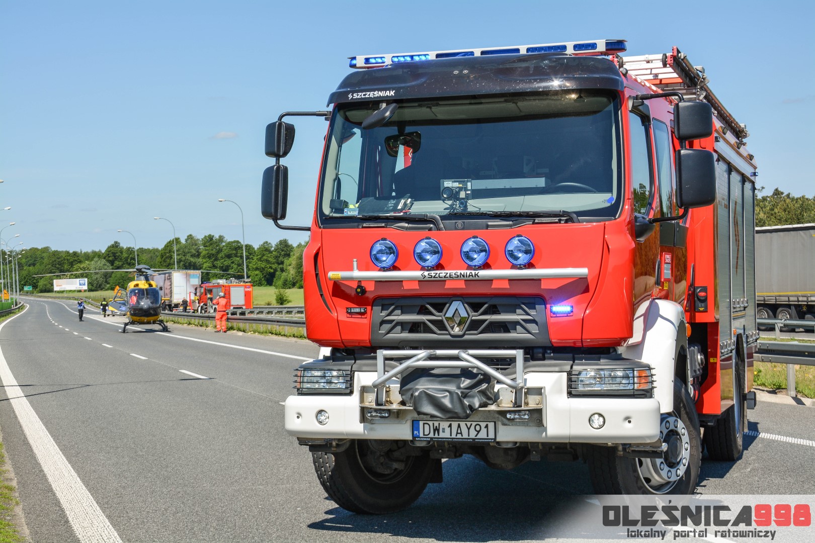 Poszkodowany kierowca został przetransportowany przez Strażaków do śmigłowca, a następnie pod opieką jego załogi trafił do jednego z wrocławskich szpitali. Na miejscu pojawiła się grupa dochodzeniowo – śledcza, która rozpoczęła wykonywanie oględzin. Mundurowi wstępnie ustalili, że rozpędzone Renault wskutek niezachowania należytego odstępu oraz uwagi przez jego kierowcę, z impetem najechało na tył naczepy ciągniętej przez ciągnik marki Volvo. Wjazd na trasę S8 w kierunku Wrocławia jest całkowicie zablokowany. Na miejscu nadal trwają czynności. Działania ratownicze zastępów zostały już zakończone, jednakże Strażacy wciąż zabezpieczają miejsce wypadku.