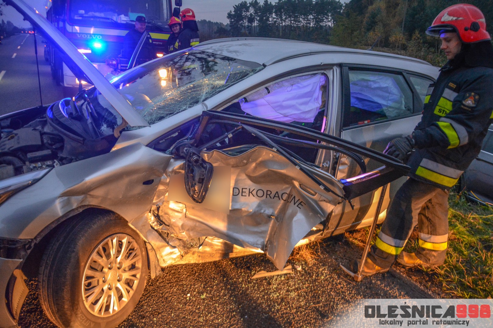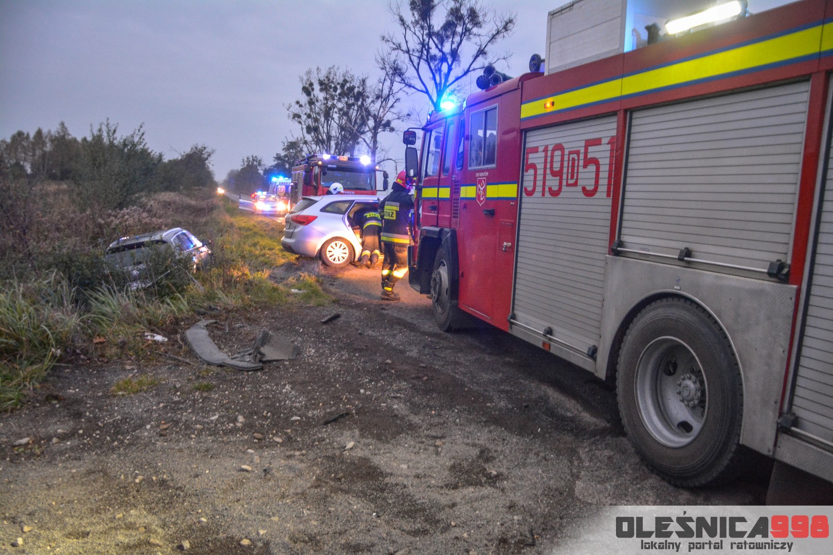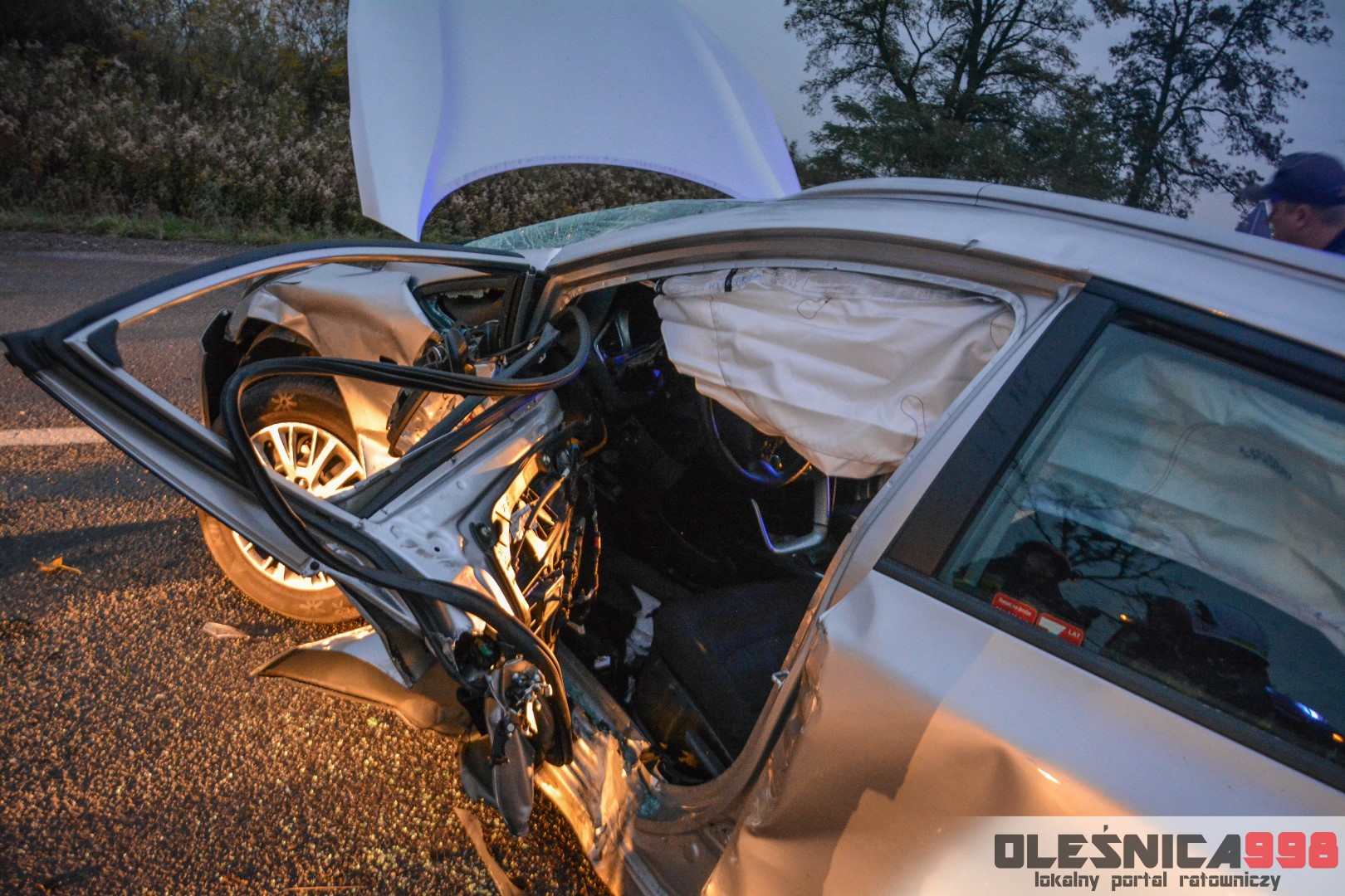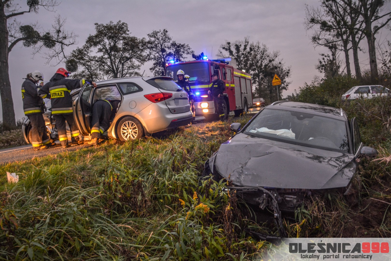 Dzisiejszego popołudnia, tuż po godzinie 17:00 do SK KP PSP w Oleśnicy wpłynęła informacja, od Wojewódzkiego Centrum Powiadamiania Ratunkowego, o wypadku dwóch samochodów na drodze pomiędzy Solnikami Wielkimi a Bierutowem. Na miejsce zostały zadysponowane dwa zastępy PSP z JRG Oleśnica, zastęp z OSP KSRG Bierutów a także patrol Policji i zespół Ratownictwa Medycznego.