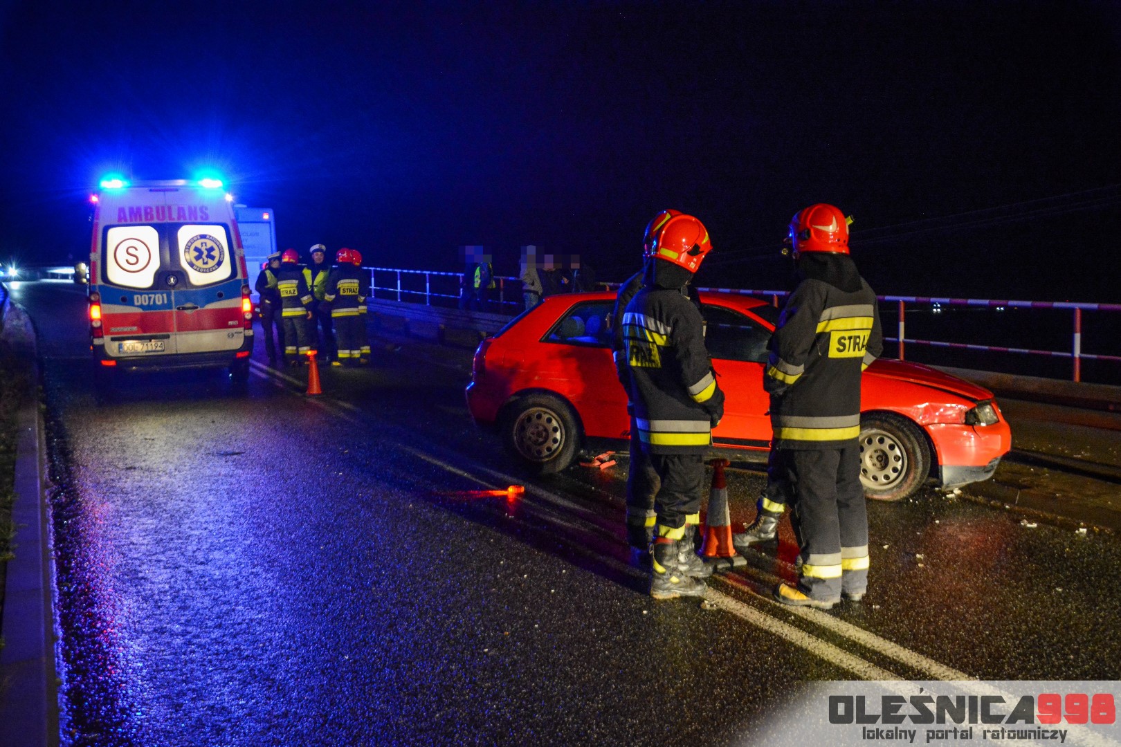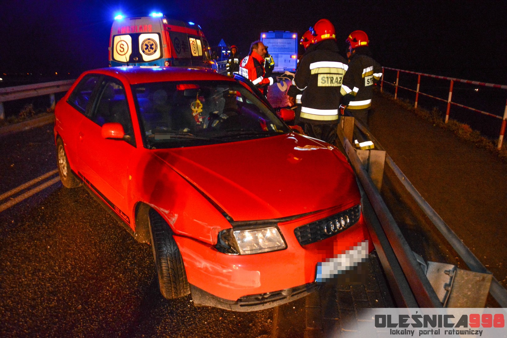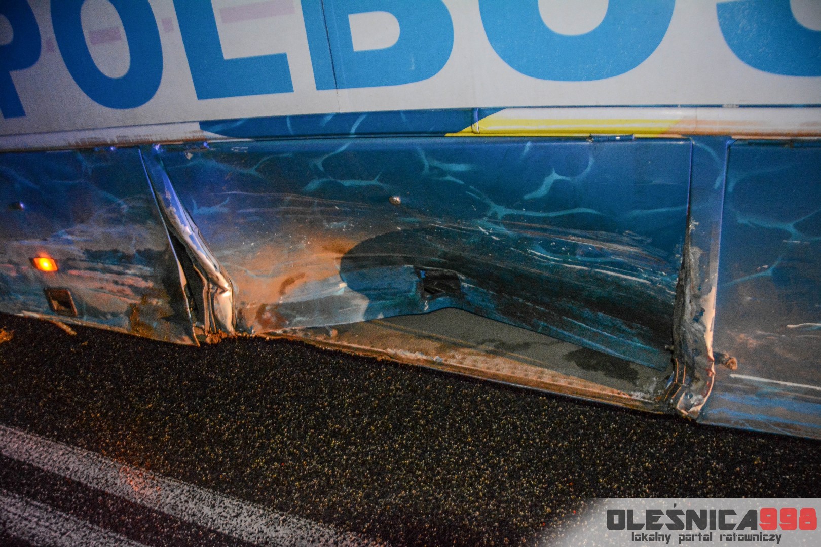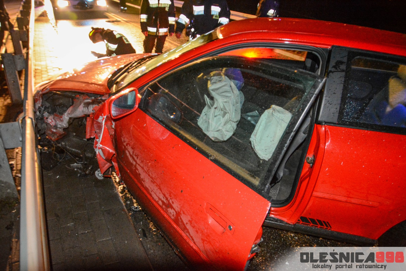 Pracujący na miejscu Mundurowi wstępnie ustalili, iż około 35-letni mężczyzna poruszając się pojazdem marki Audi A3 w kierunku Oleśnicy, na łuku wiaduktu najprawdopodobniej stracił panowanie nad pojazdem a następnie uderzył w bok jadącego z naprzeciwka autobusu. Jak wynika z naszych informacji, sprawca zdarzenia- kierujący osobówką, był nietrzeźwy a także nie posiadał uprawnień do prowadzenia pojazdów mechanicznych. Po udzieleniu pomocy przez ekipę Pogotowia trafił do oleśnickiego szpitala.