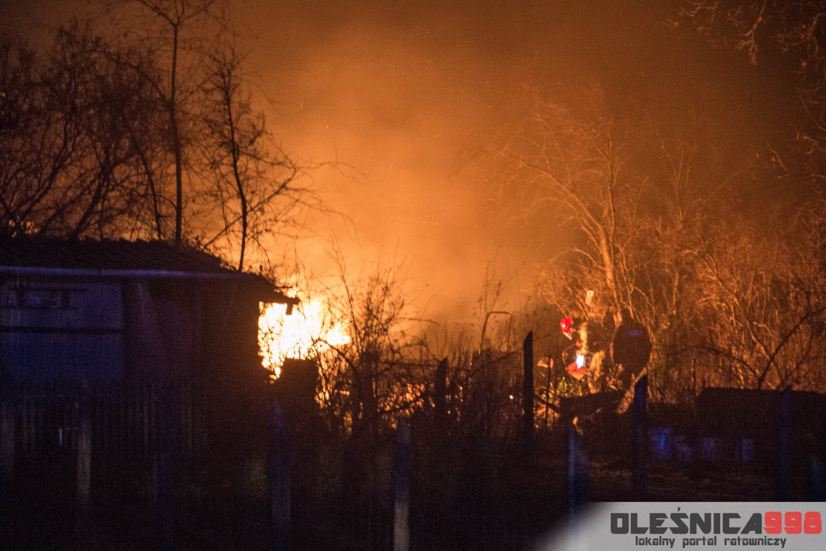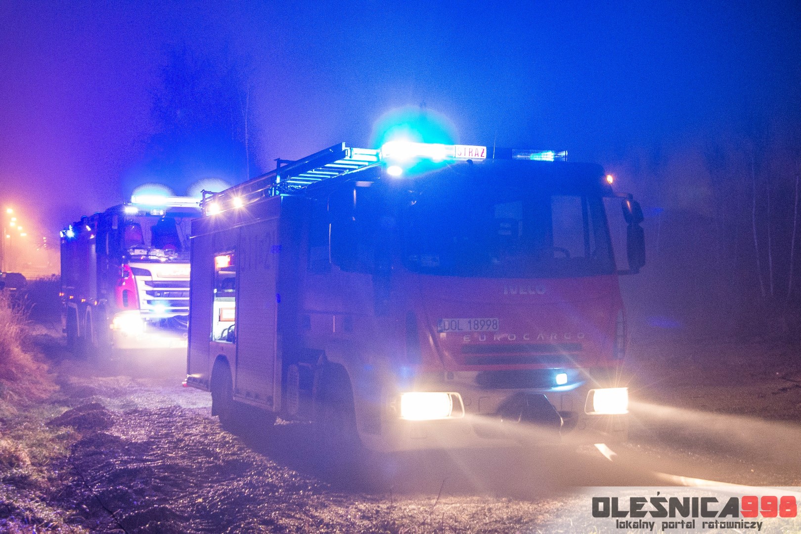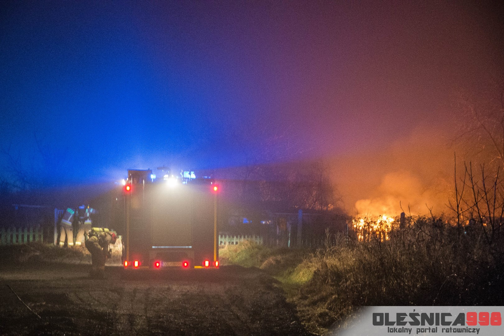 Dzisiejszej nocy, około godziny 1:10, Dyżurny Operacyjny Stanowiska Kierowania Komendanta Powiatowego Państwowej Straży Pożarnej w Oleśnicy, odebrał zgłoszenie mówiące o słupie ognia widocznym z ulicy Krzywoustego w stronę pobliskich Zakładów Naprawczych Taboru Kolejowego. Wskazany przez osobę zgłaszającą obszar obejmował głównie zlokalizowane w pobliżu drogi ogródki działkowe. Na miejsce niezwłocznie została zadysponowana sekcja gaśnicza z oleśnickiej Jednostki Ratowniczo – Gaśniczej. O zdarzeniu poinformowana została również Policja, a tuż przed Strażakami na miejsce dotarł patrol Mundurowych.