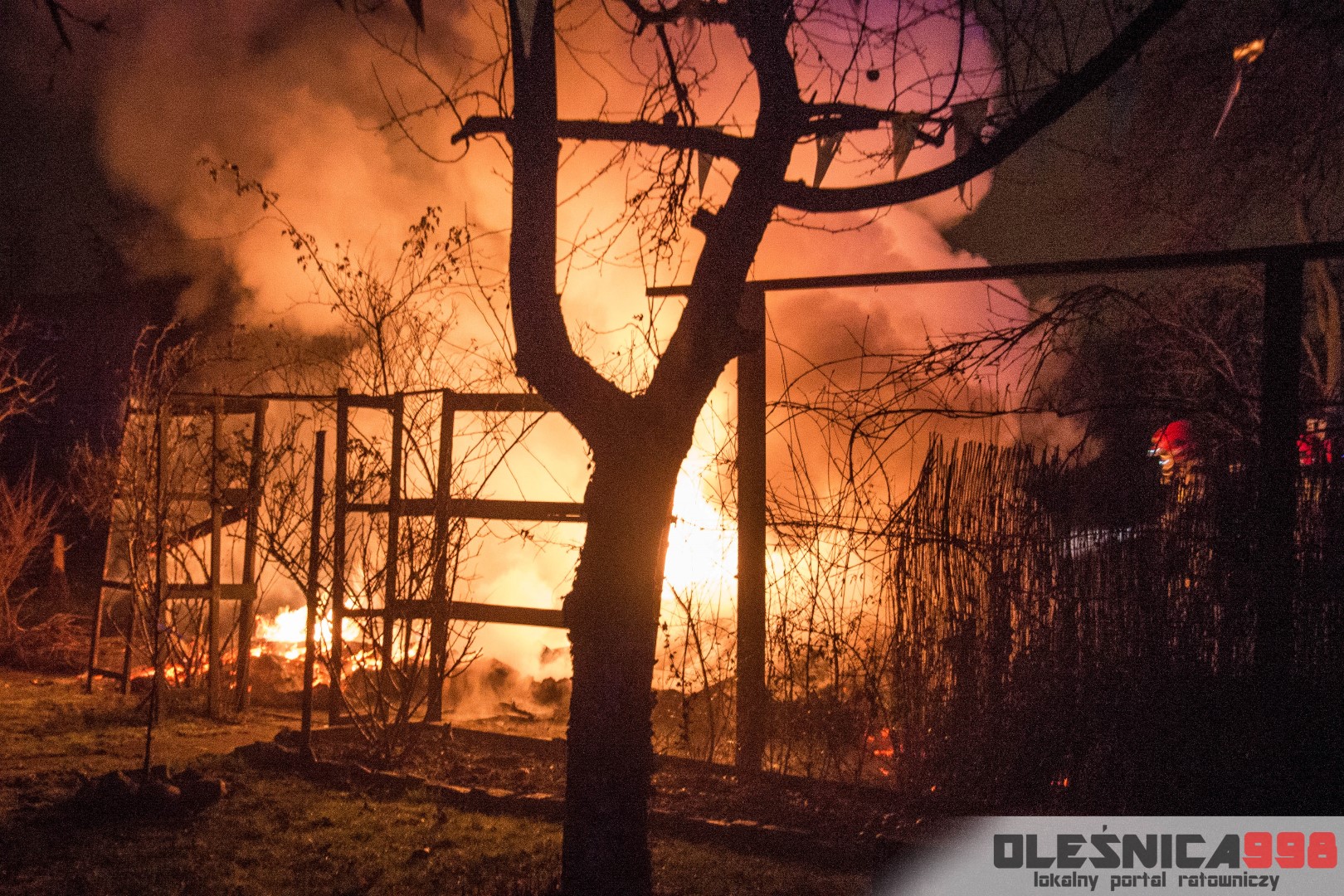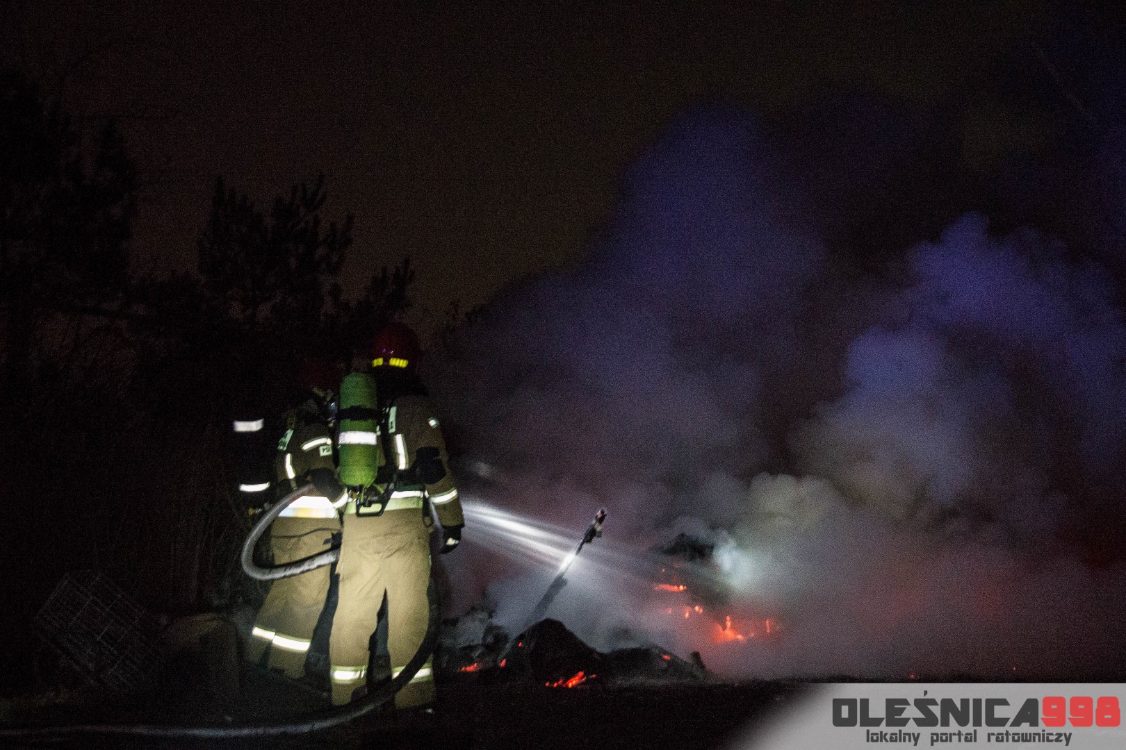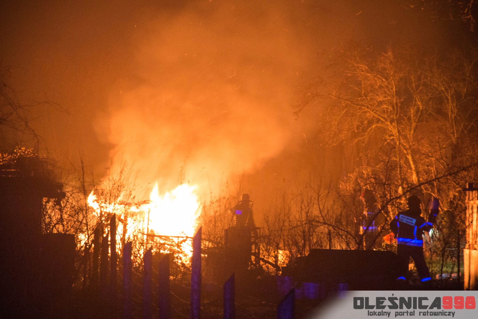 Dzisiejszej nocy, około godziny 1:10, Dyżurny Operacyjny Stanowiska Kierowania Komendanta Powiatowego Państwowej Straży Pożarnej w Oleśnicy, odebrał zgłoszenie mówiące o słupie ognia widocznym z ulicy Krzywoustego w stronę pobliskich Zakładów Naprawczych Taboru Kolejowego. Wskazany przez osobę zgłaszającą obszar obejmował głównie zlokalizowane w pobliżu drogi ogródki działkowe. Na miejsce niezwłocznie została zadysponowana sekcja gaśnicza z oleśnickiej Jednostki Ratowniczo – Gaśniczej. O zdarzeniu poinformowana została również Policja, a tuż przed Strażakami na miejsce dotarł patrol Mundurowych.