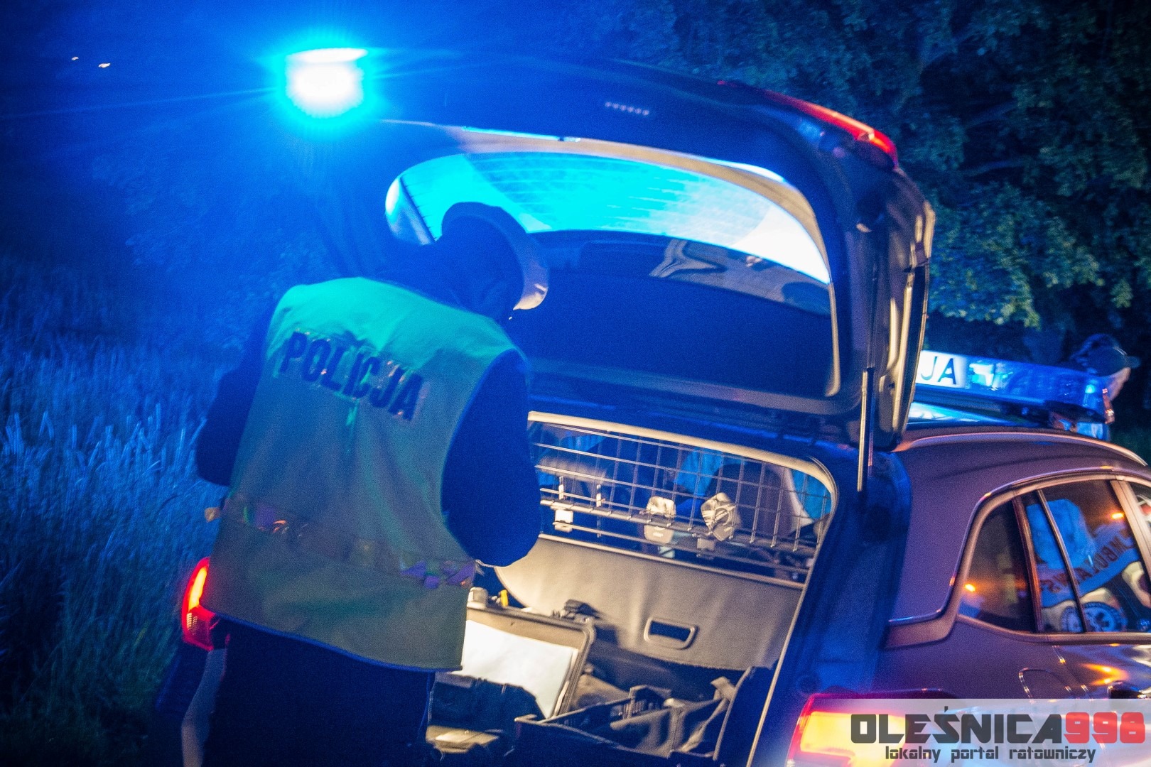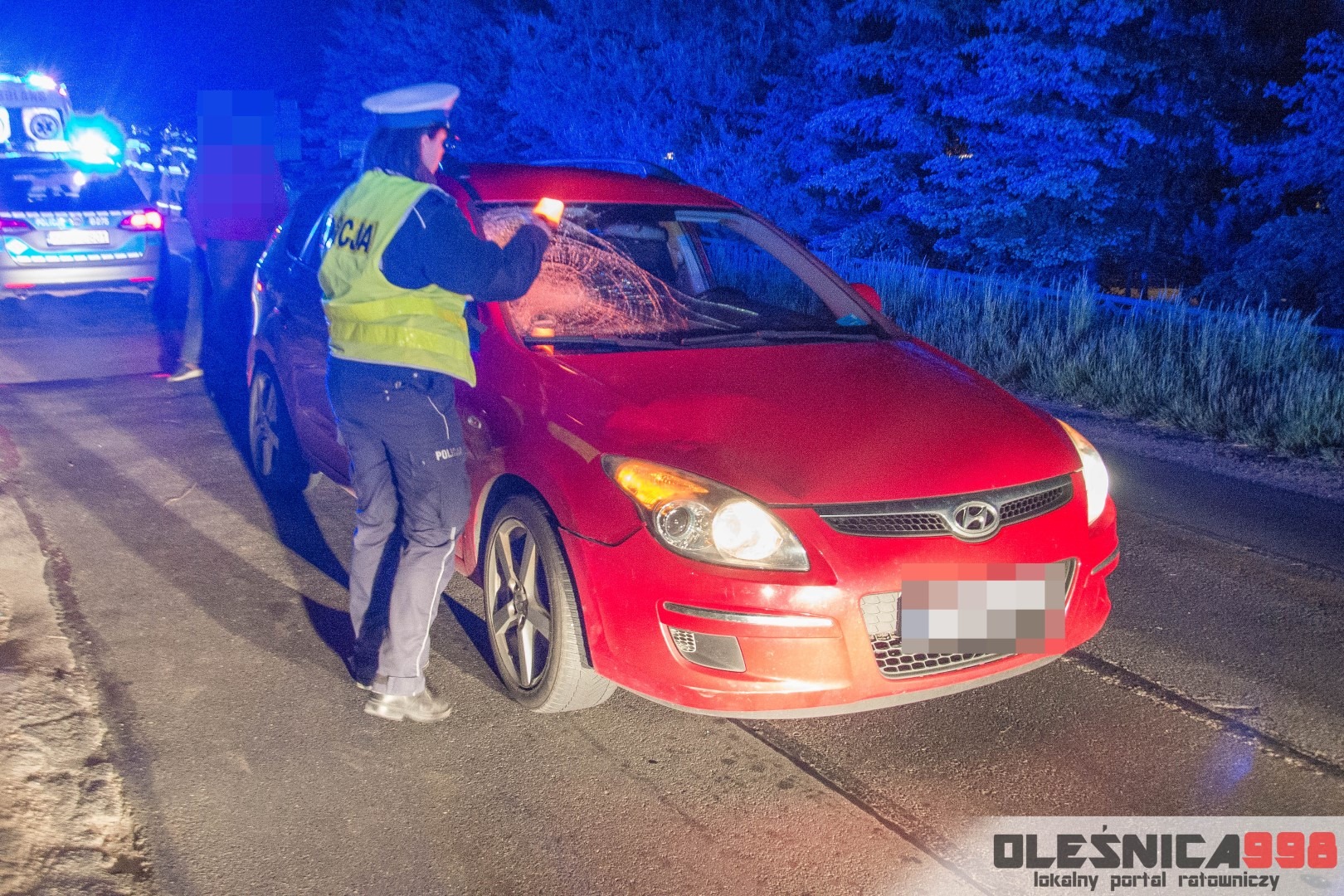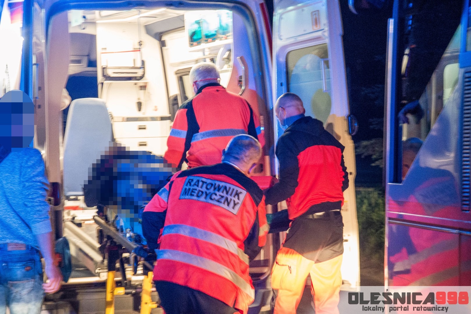 Jako pierwsi na miejscu pojawili się oleśniccy Mundurowi, którzy potwierdzili informację o zdarzeniu z udziałem samochodu osobowego i pieszego. Ranny mężczyzna znajdował się pod opieką osób postronnych. Po chwili na miejsce dotarł zespół Ratownictwa Medycznego, który przejął poszkodowanego. Po wstępnej ocenie stanu rannego, kierownik zespołu podjął decyzję o wezwaniu na miejsce śmigłowca Lotniczego Pogotowia Ratunkowego. Stan mężczyzny był bardzo ciężki – doznał on między innymi urazu głowy oraz złamania kończyny dolnej i przez cały czas pozostawał nieprzytomny.