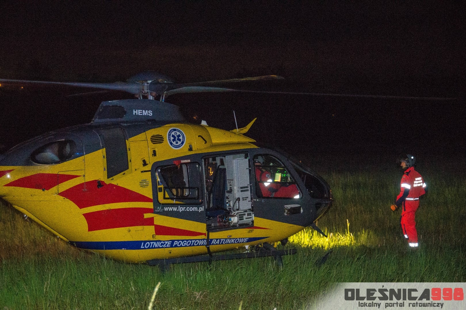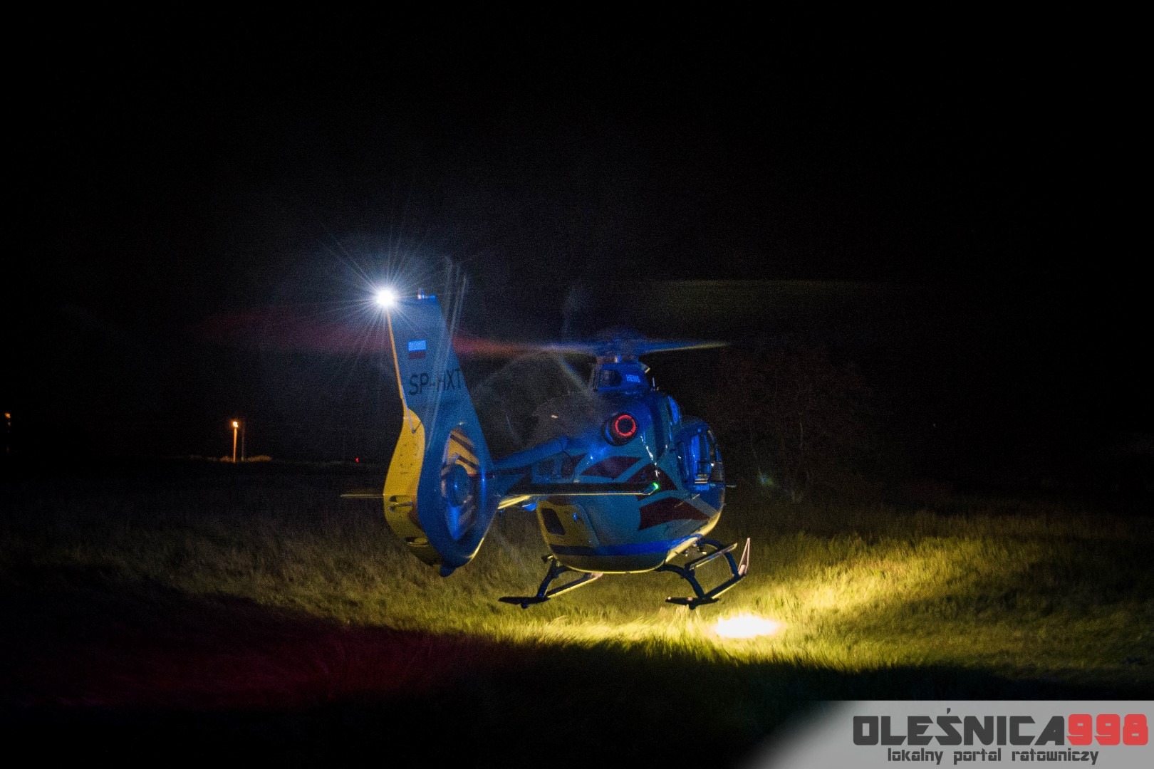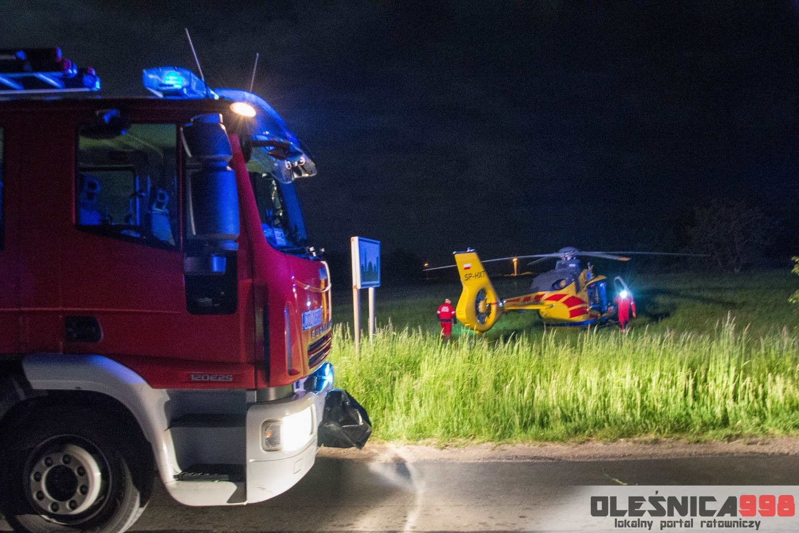 W związku z wezwaniem na miejsce śmigłowca Lotniczego Pogotowia Ratunkowego, o zdarzeniu zostali poinformowani oleśniccy Strażacy, których zadaniem było przygotowanie dogodnego miejsca do lądowania dla maszyny. Do zdarzenia zadysponowane zostały dwa zastępy z JRG Oleśnica, które przybyły na miejsce niemalże równo ze śmigłowcem, którego Pilot, po wstępnym rozpoznaniu terenu, podjął próbę lądowania na pobliskim polu. Ta zakończyła się sukcesem, a załoga maszyny udała się do ambulansu, gdzie wstępnie zaopatrzony został już poszkodowany.