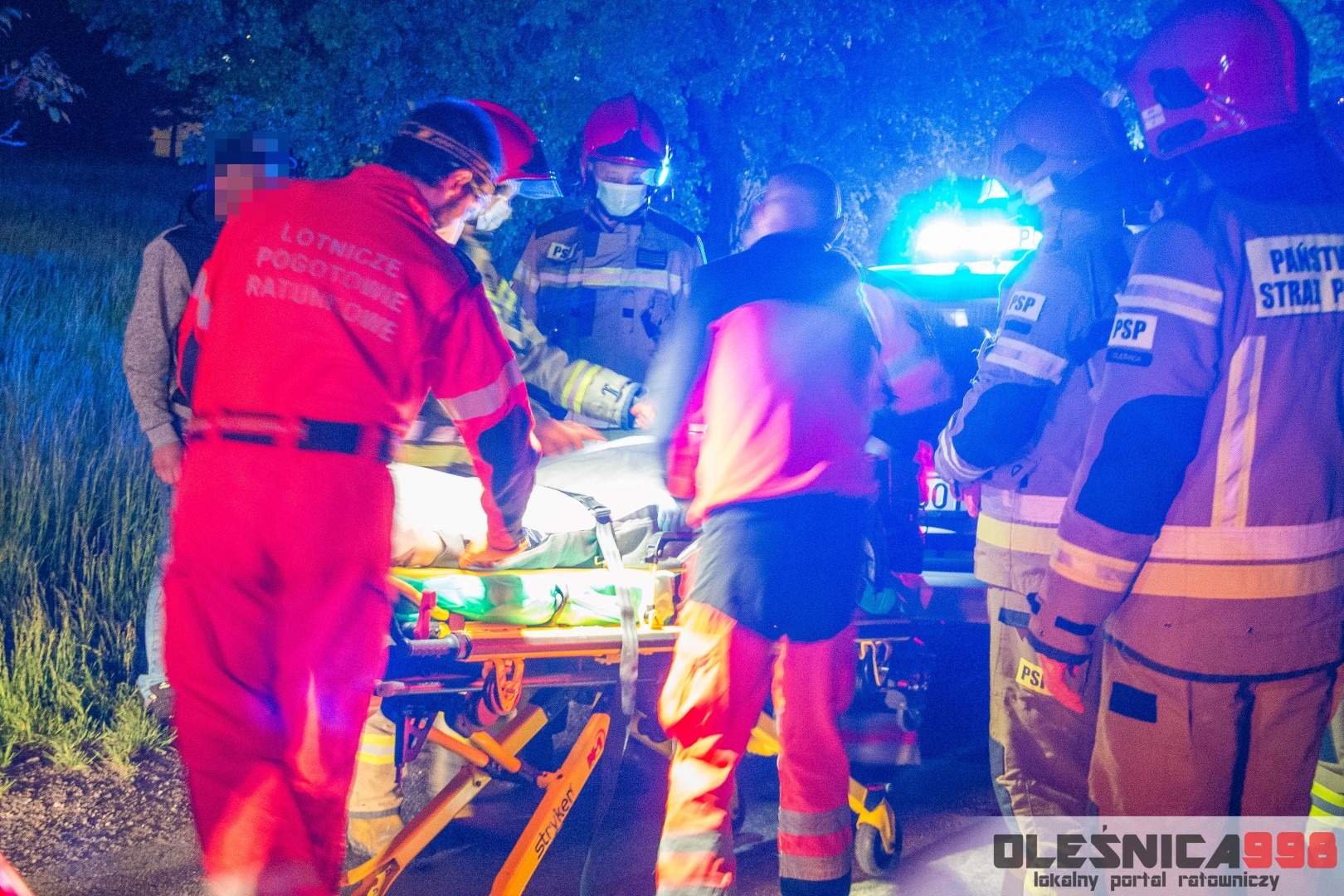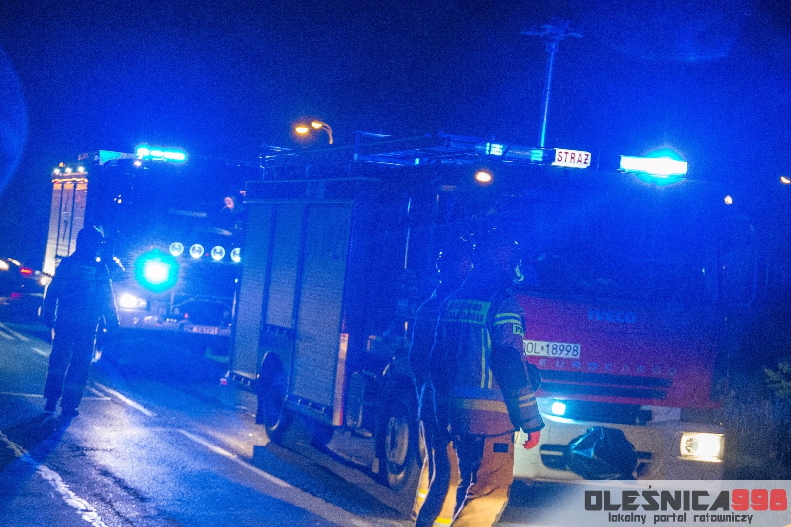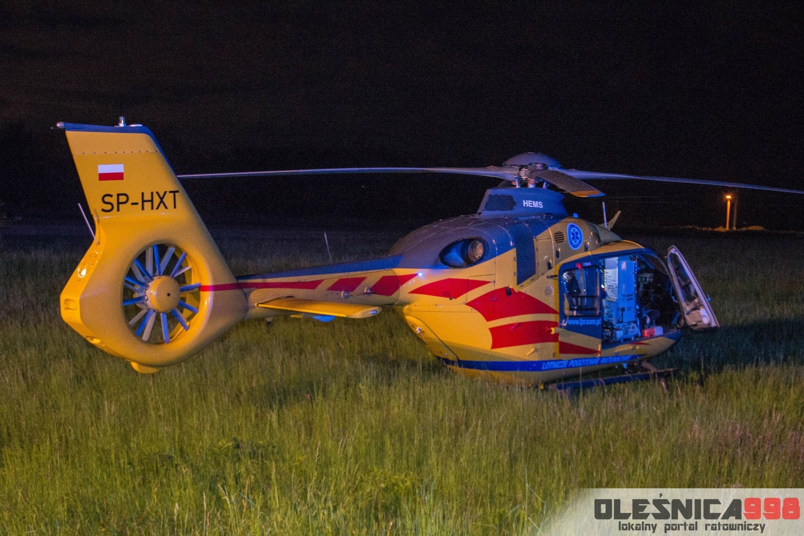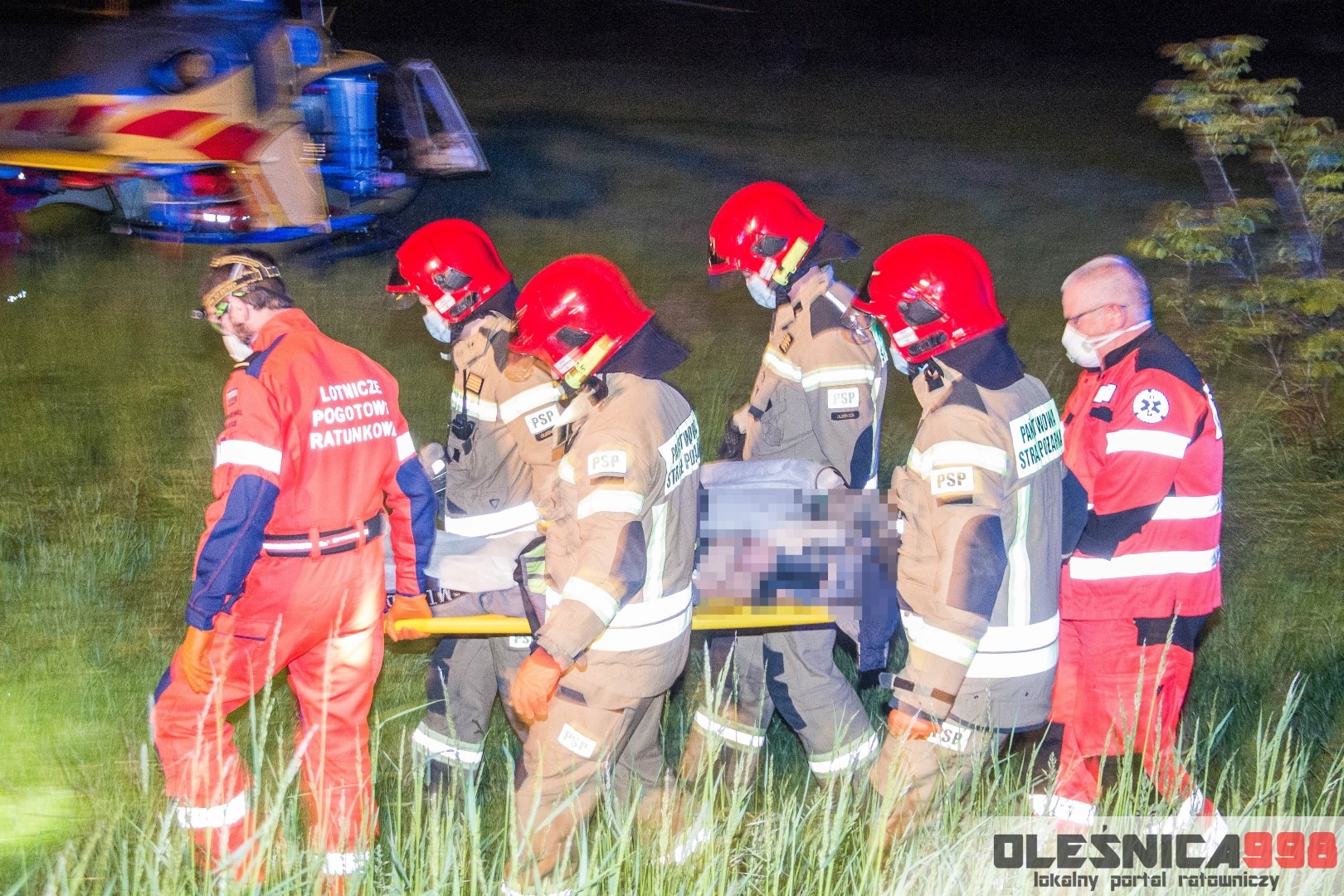 W związku z wezwaniem na miejsce śmigłowca Lotniczego Pogotowia Ratunkowego, o zdarzeniu zostali poinformowani oleśniccy Strażacy, których zadaniem było przygotowanie dogodnego miejsca do lądowania dla maszyny. Do zdarzenia zadysponowane zostały dwa zastępy z JRG Oleśnica, które przybyły na miejsce niemalże równo ze śmigłowcem, którego Pilot, po wstępnym rozpoznaniu terenu, podjął próbę lądowania na pobliskim polu. Ta zakończyła się sukcesem, a załoga maszyny udała się do ambulansu, gdzie wstępnie zaopatrzony został już poszkodowany.