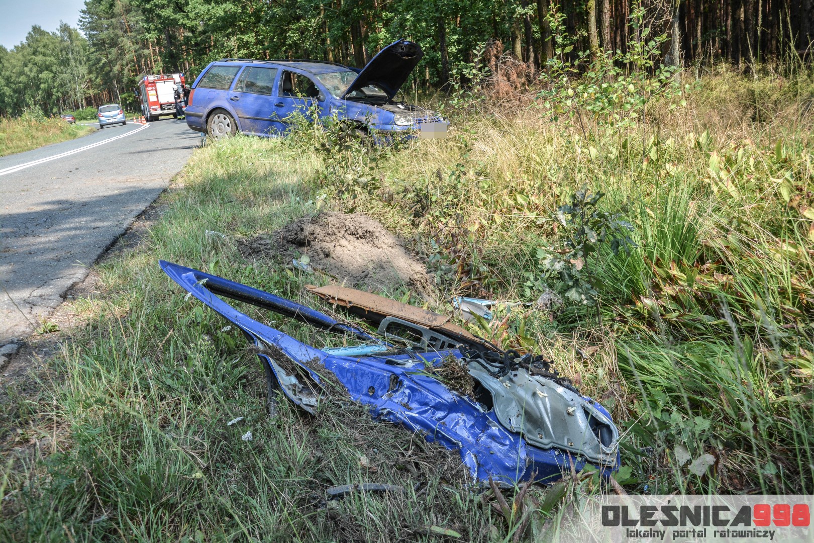Około godziny 13:00 do oleśnickich służb ratunkowych wpłynęły zgłoszenia o wypadku drogowym z udziałem dwóch samochodów pomiędzy Miodarami a Sosnówką. Z przekazanych informacji wynikało iż przynajmniej jedna osoba została poszkodowana. Na miejsce Dyżurna Operacyjna SK KP zadysponowała dwa zastępy PSP z JRG Oleśnica oraz zastęp z OSP KSRG Dobroszyce. Oprócz Strażaków interweniowali również Policjanci „drogówki” a także zespół Ratownictwa Medycznego.