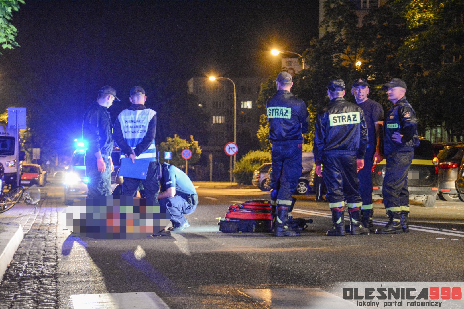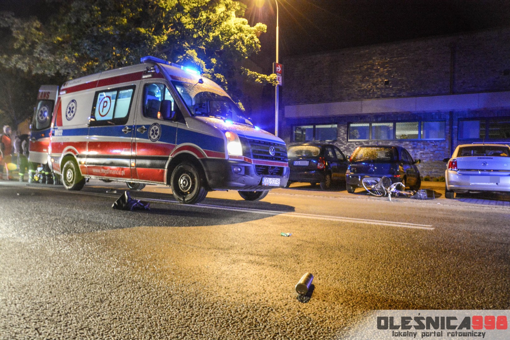 Dziś w nocy, około godziny 00:30 oleśnickie służby otrzymały zgłoszenie o zderzeniu samochodu osobowego z rowerzystą, do jakiego miało dojść na przejściu dla pieszych na ulicy M. Skłodowskiej – Curie w Oleśnicy. Do zdarzenia niezwłocznie zadysponowane zostały dwa zastępy z lokalnej Jednostki Ratowniczo – Gaśniczej, zespół Ratownictwa Medycznego z Sycowa oraz patrol Policjantów.