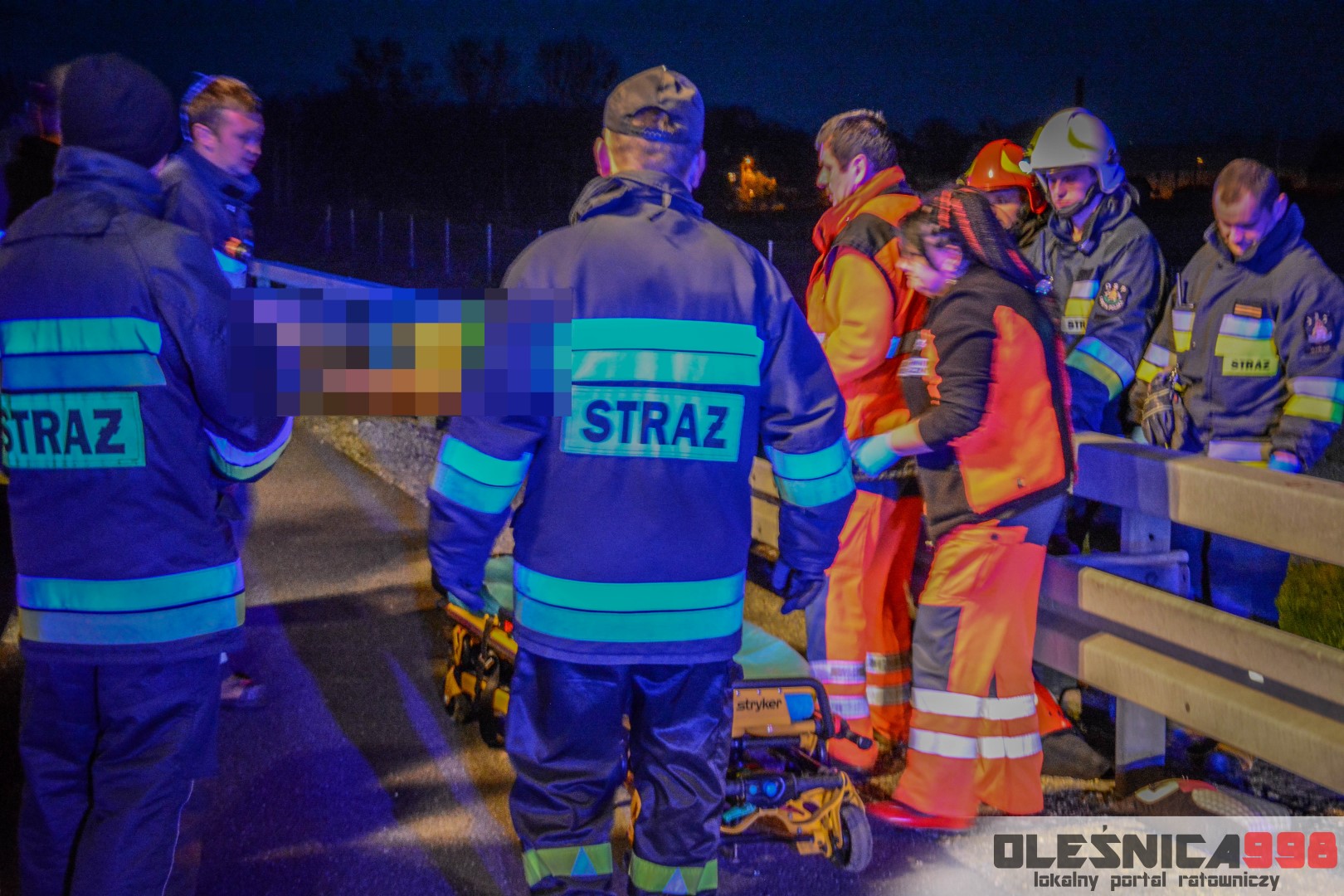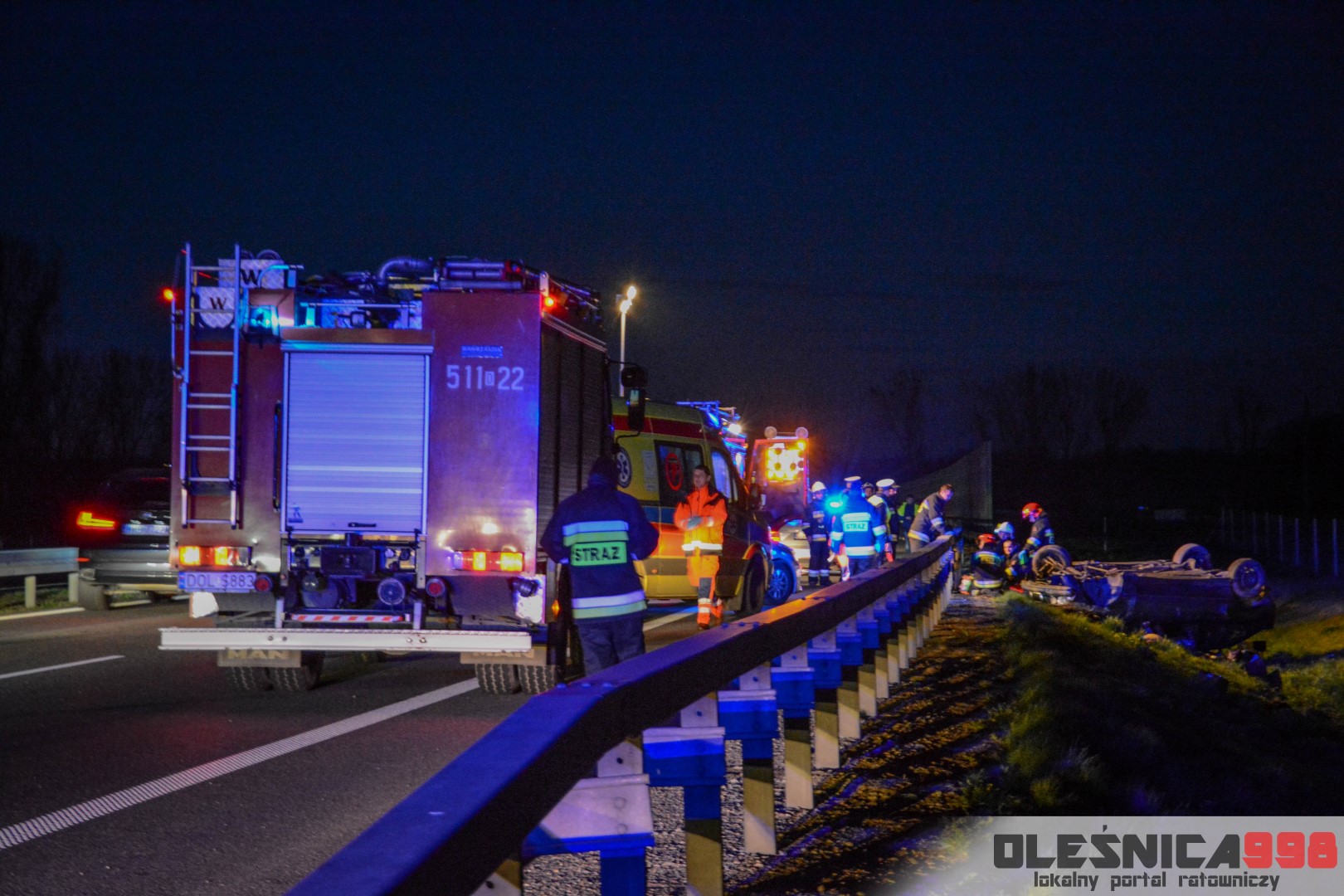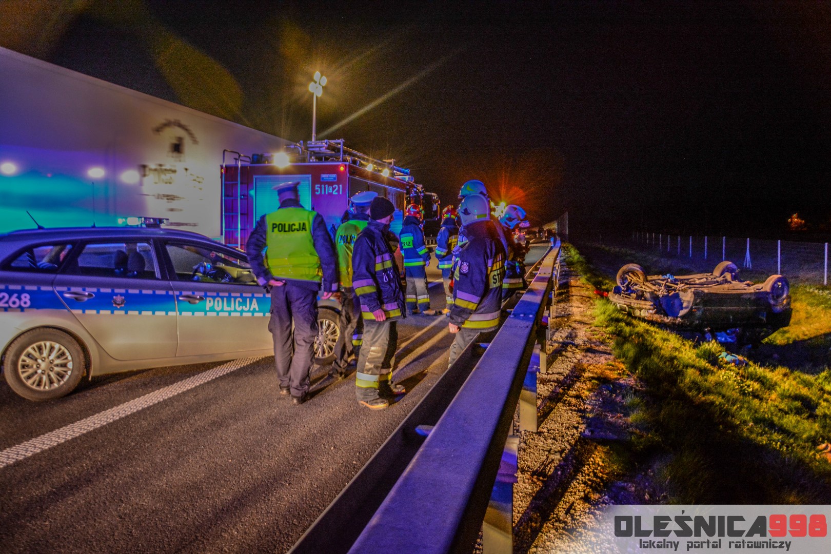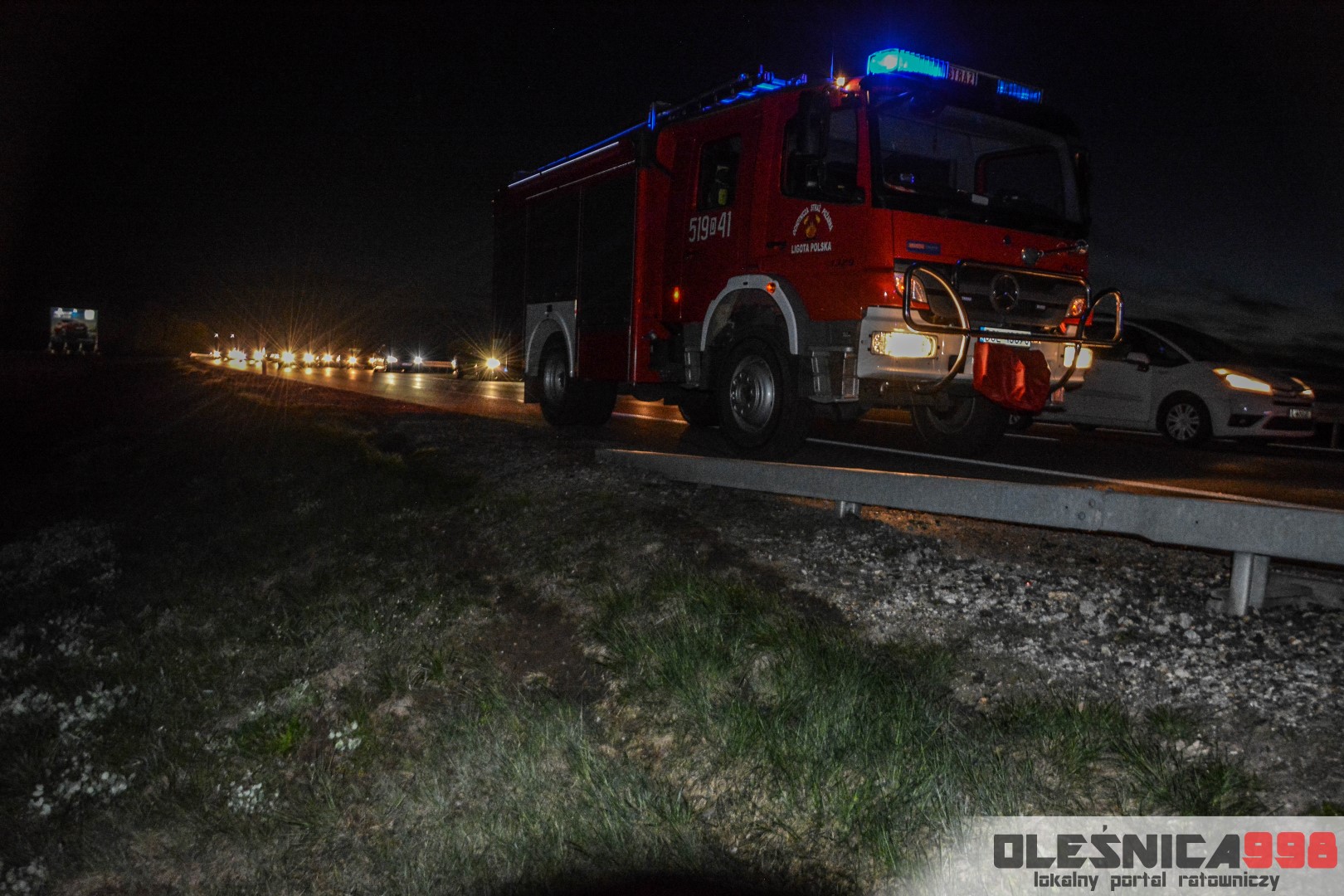 Około godziny 20:00 do SK KP PSP w Oleśnicy wpłynęło zgłoszenie o wypadku drogowym z udziałem 4 pojazdów, na 64-kilometrze trasy S8, w kierunku Warszawy. Z uzyskanych informacji wynikało iż jeden z samochodów dachował a jego kierowca jest zakleszczony a pojeździe. Na miejsce niezwłocznie zadysponowane zostały 2 zastępy z JRG Oleśnica, dwa patrole Policji a także zespół Ratownictwa Medycznego z Twardogóry. Dodatkowo zaalarmowana została jednostka OSP KSRG Ligota Polska, która wyjechała do zdarzenia w sile jednego zastępu.
