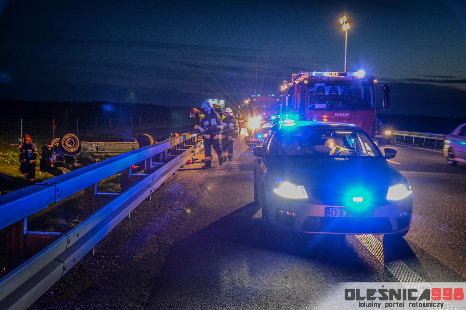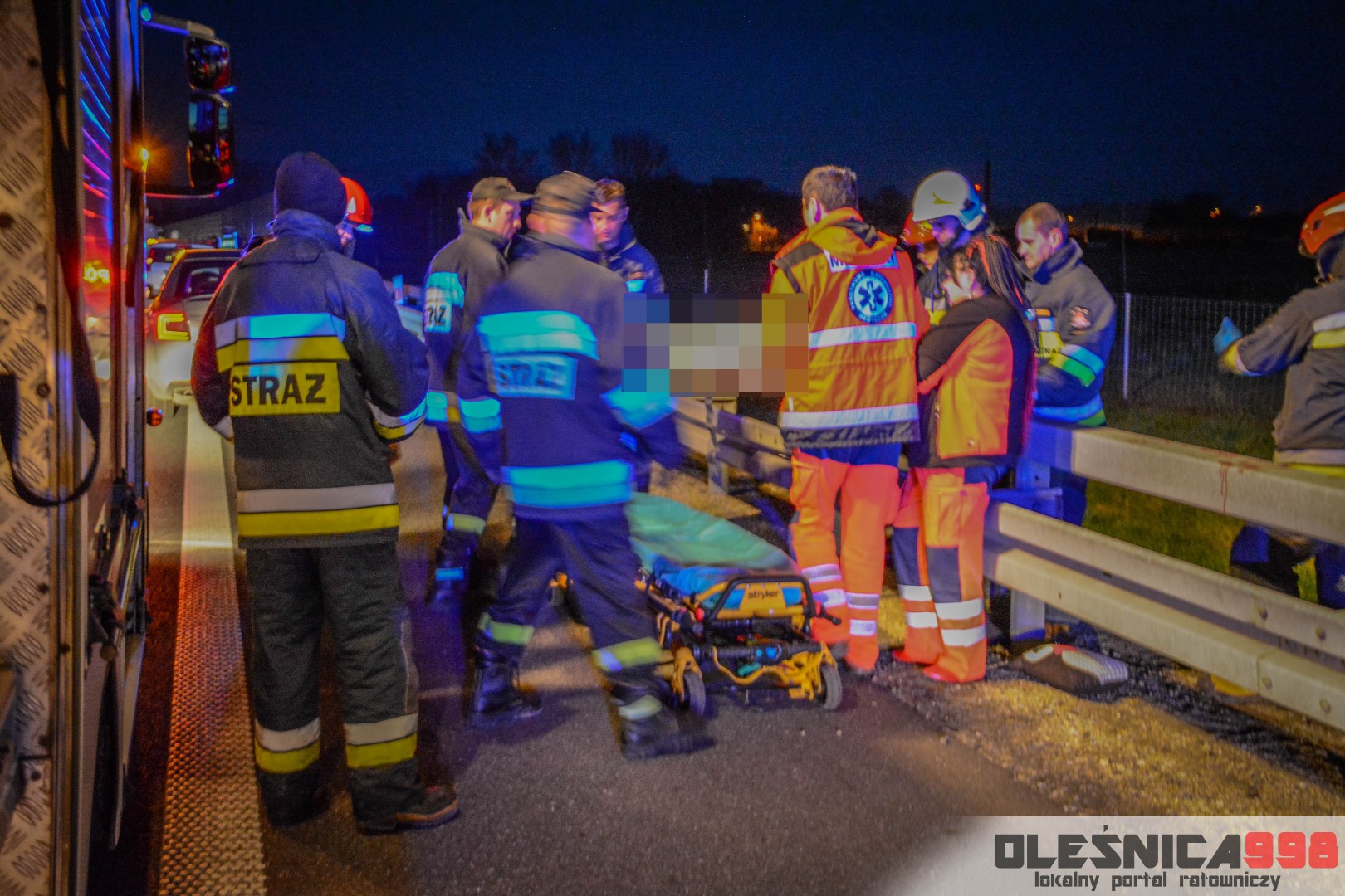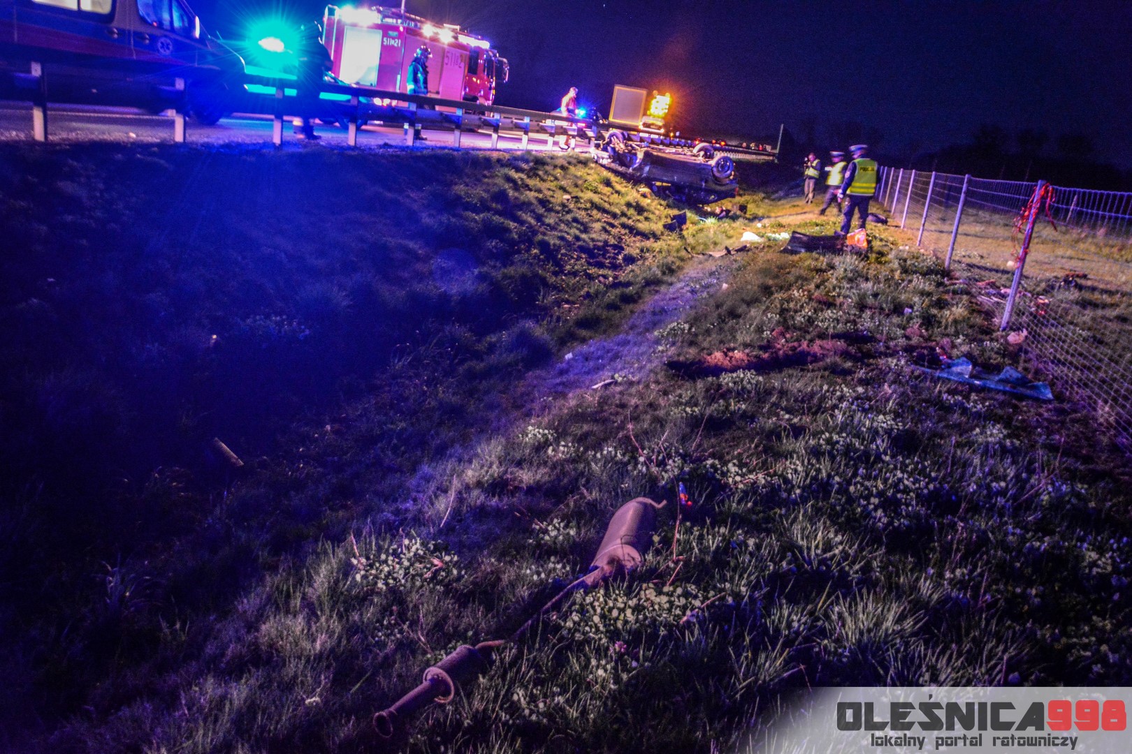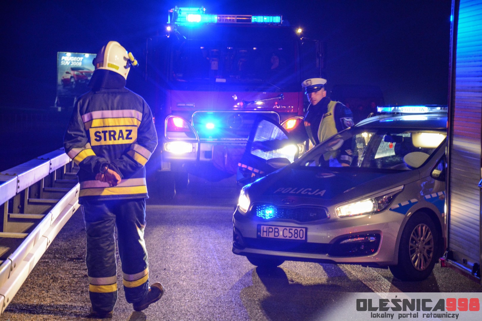 Około godziny 20:00 do SK KP PSP w Oleśnicy wpłynęło zgłoszenie o wypadku drogowym z udziałem 4 pojazdów, na 64-kilometrze trasy S8, w kierunku Warszawy. Z uzyskanych informacji wynikało iż jeden z samochodów dachował a jego kierowca jest zakleszczony a pojeździe. Na miejsce niezwłocznie zadysponowane zostały 2 zastępy z JRG Oleśnica, dwa patrole Policji a także zespół Ratownictwa Medycznego z Twardogóry. Dodatkowo zaalarmowana została jednostka OSP KSRG Ligota Polska, która wyjechała do zdarzenia w sile jednego zastępu.