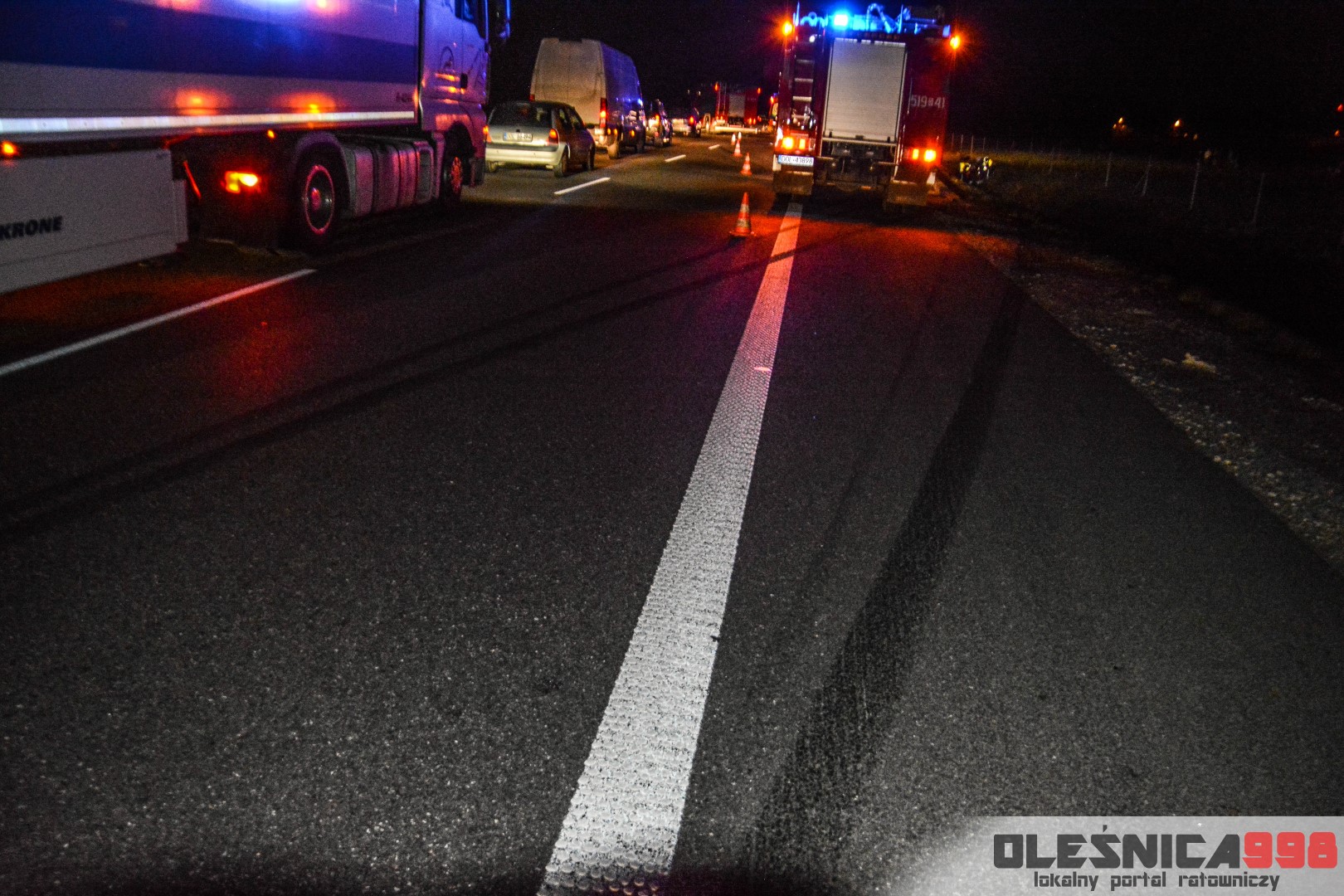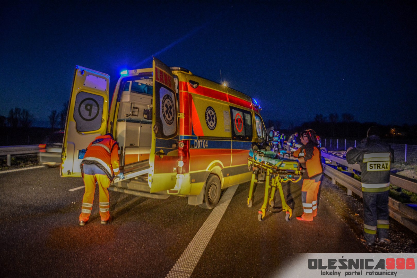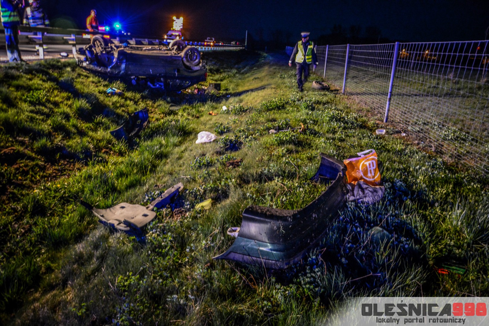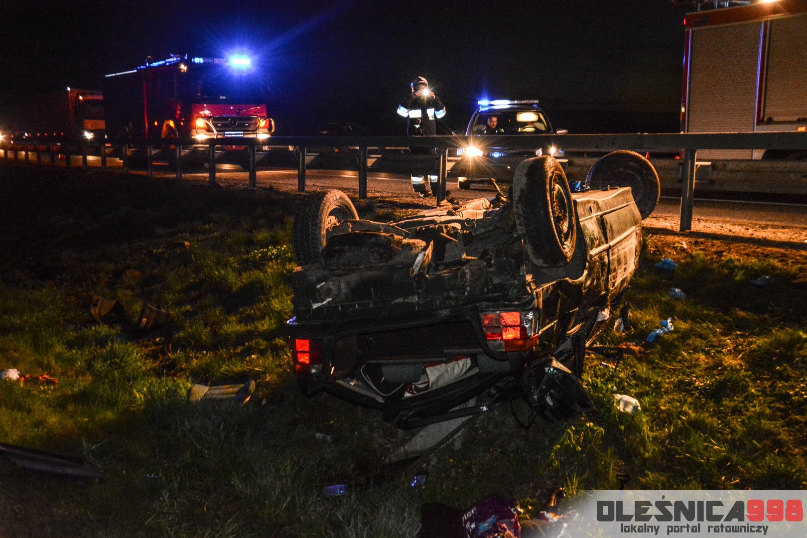 Około godziny 20:00 do SK KP PSP w Oleśnicy wpłynęło zgłoszenie o wypadku drogowym z udziałem 4 pojazdów, na 64-kilometrze trasy S8, w kierunku Warszawy. Z uzyskanych informacji wynikało iż jeden z samochodów dachował a jego kierowca jest zakleszczony a pojeździe. Na miejsce niezwłocznie zadysponowane zostały 2 zastępy z JRG Oleśnica, dwa patrole Policji a także zespół Ratownictwa Medycznego z Twardogóry. Dodatkowo zaalarmowana została jednostka OSP KSRG Ligota Polska, która wyjechała do zdarzenia w sile jednego zastępu.